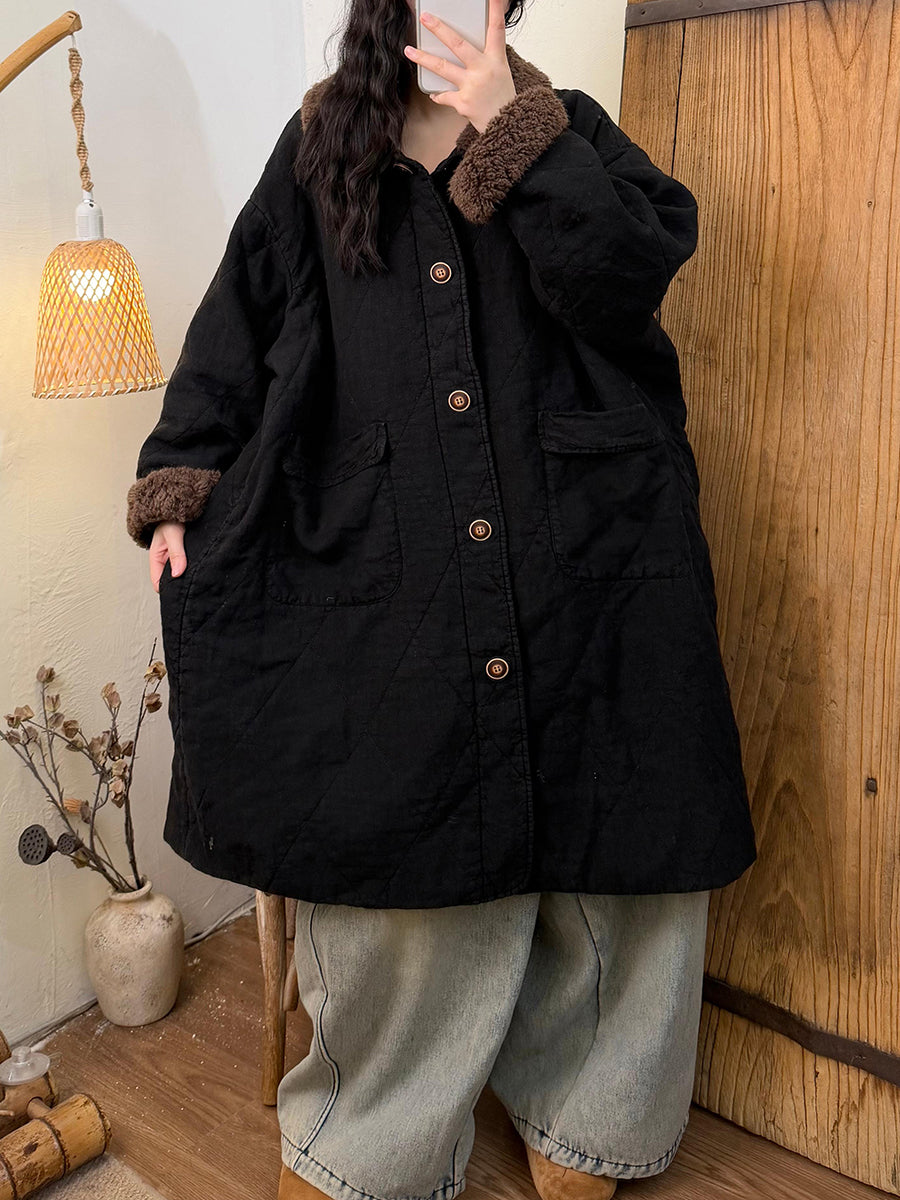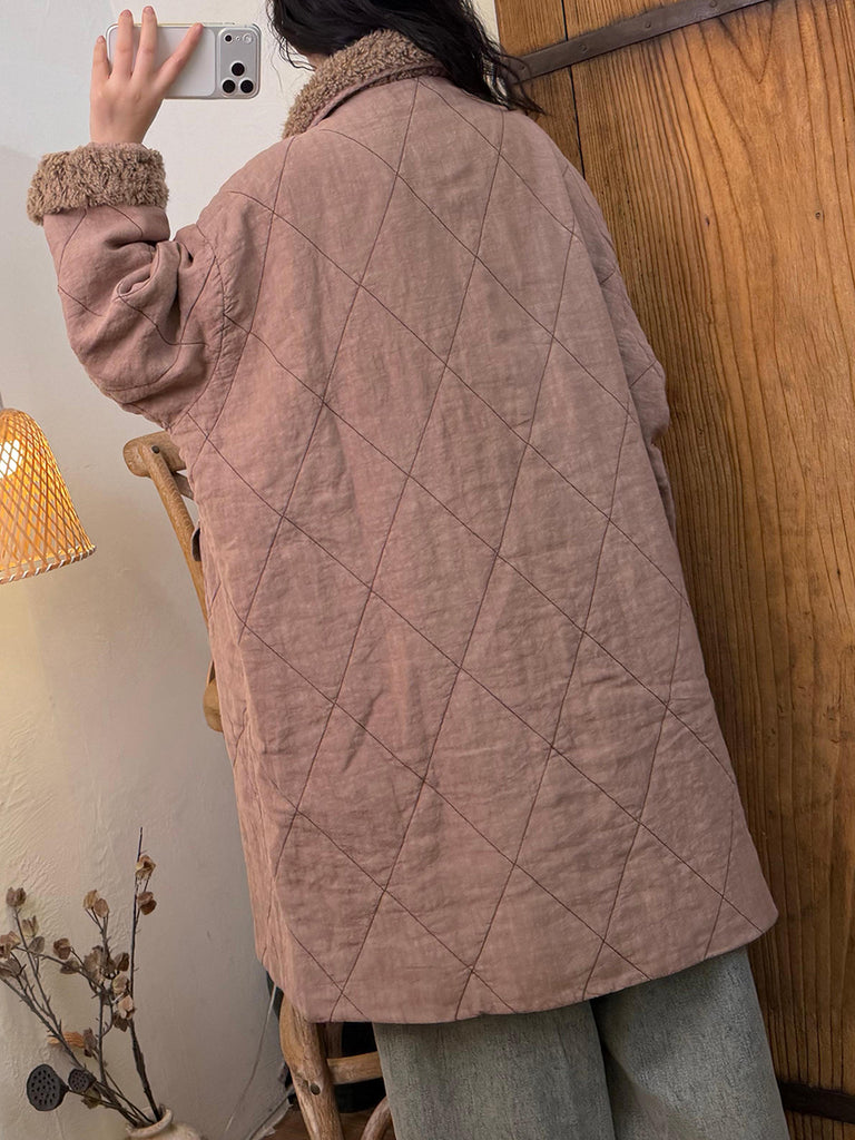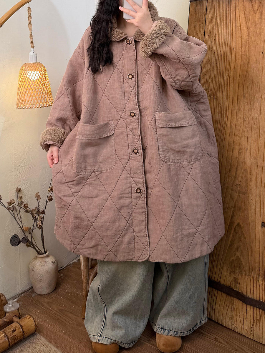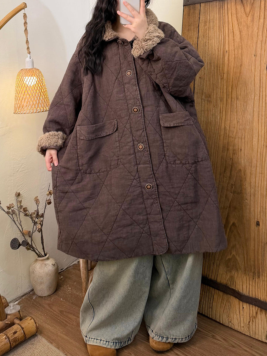 Dámský zimní kostkovaný fleecový kabát s odkládacím límcem