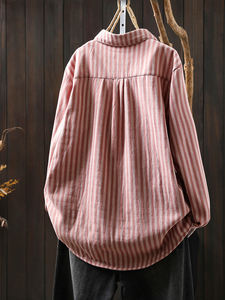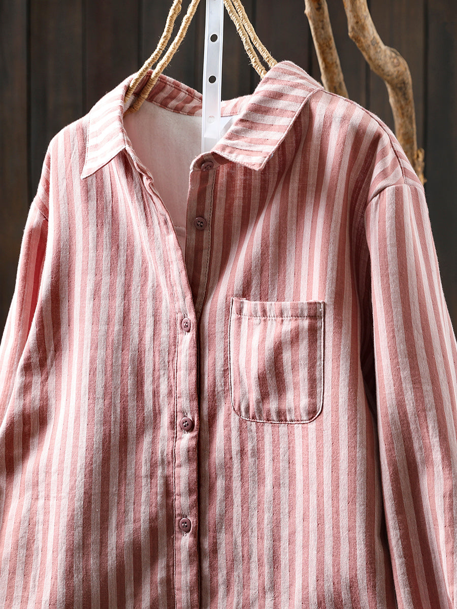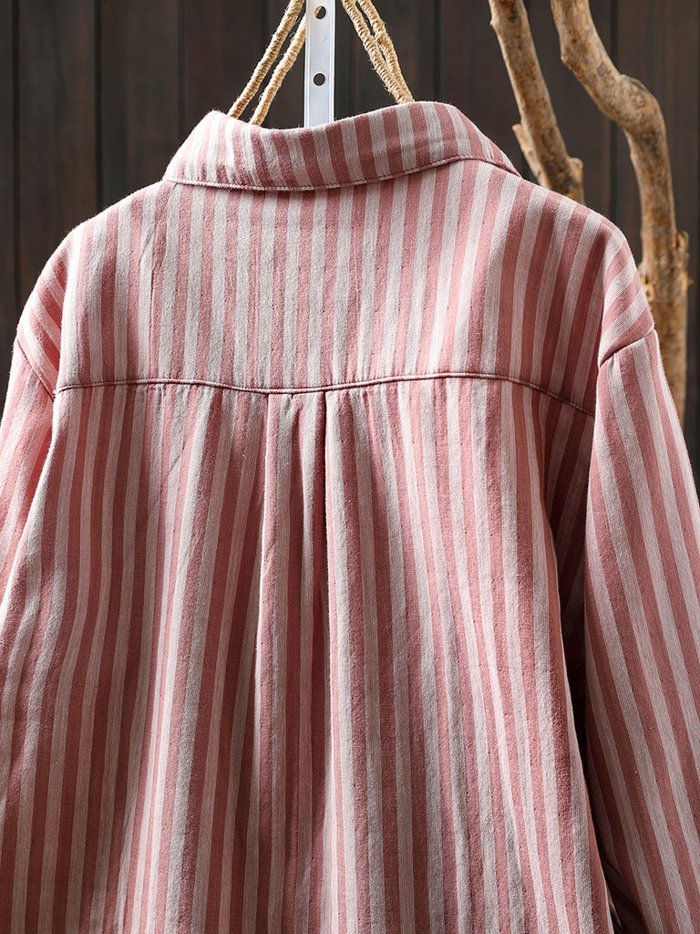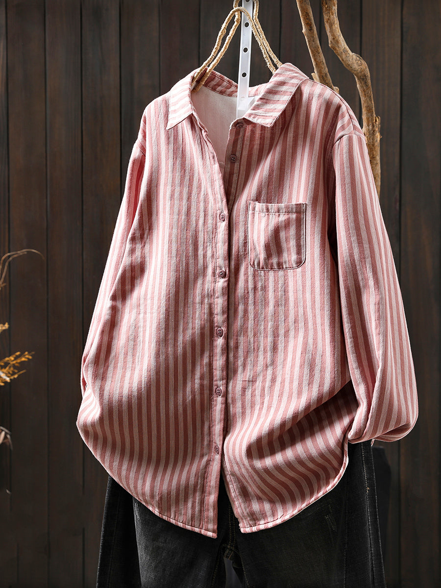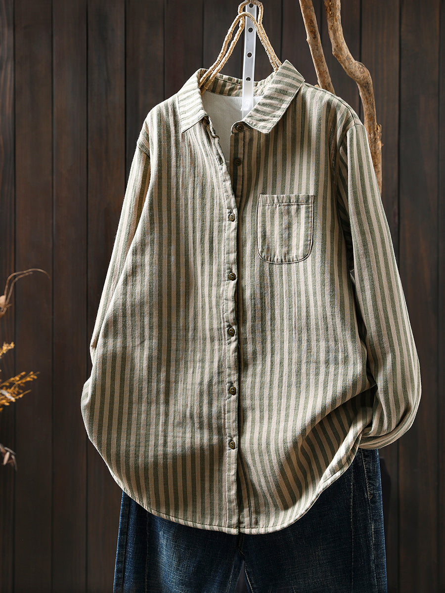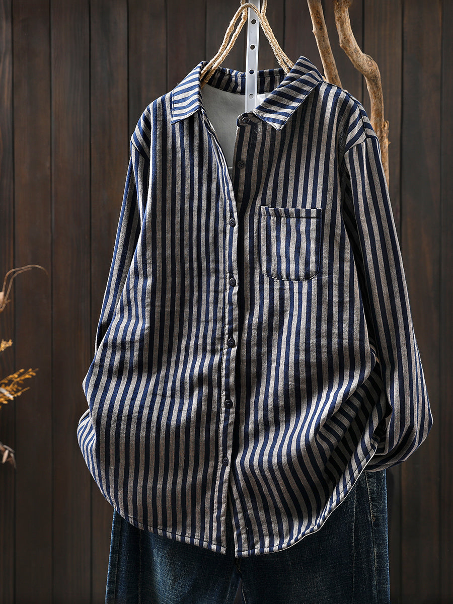 Dámská zimní halenka s pruhovaným odkládacím límcem, 100% bavlna