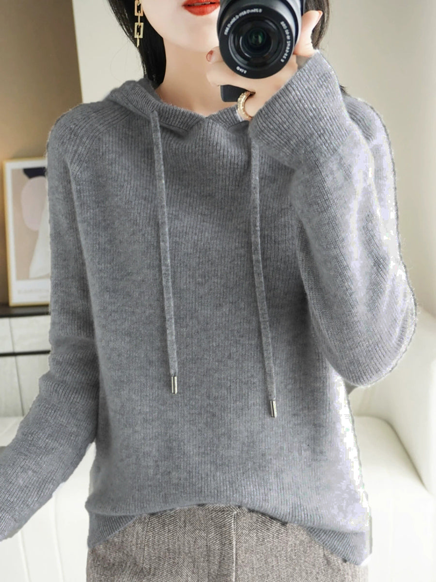 Dámský podzimní ležérní čistě barevný svetr s kapucí