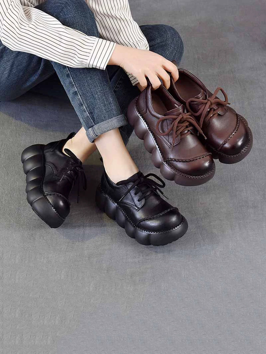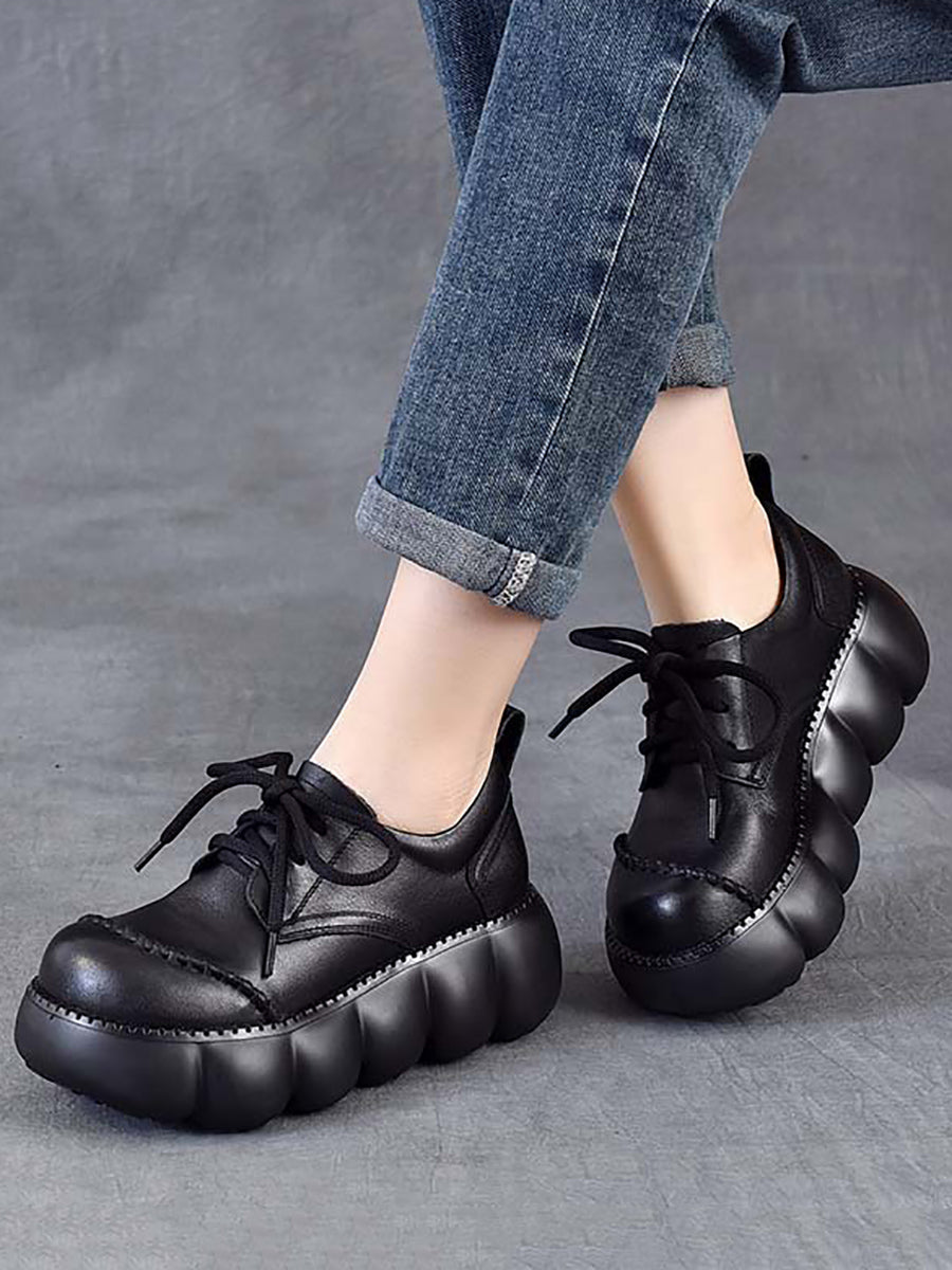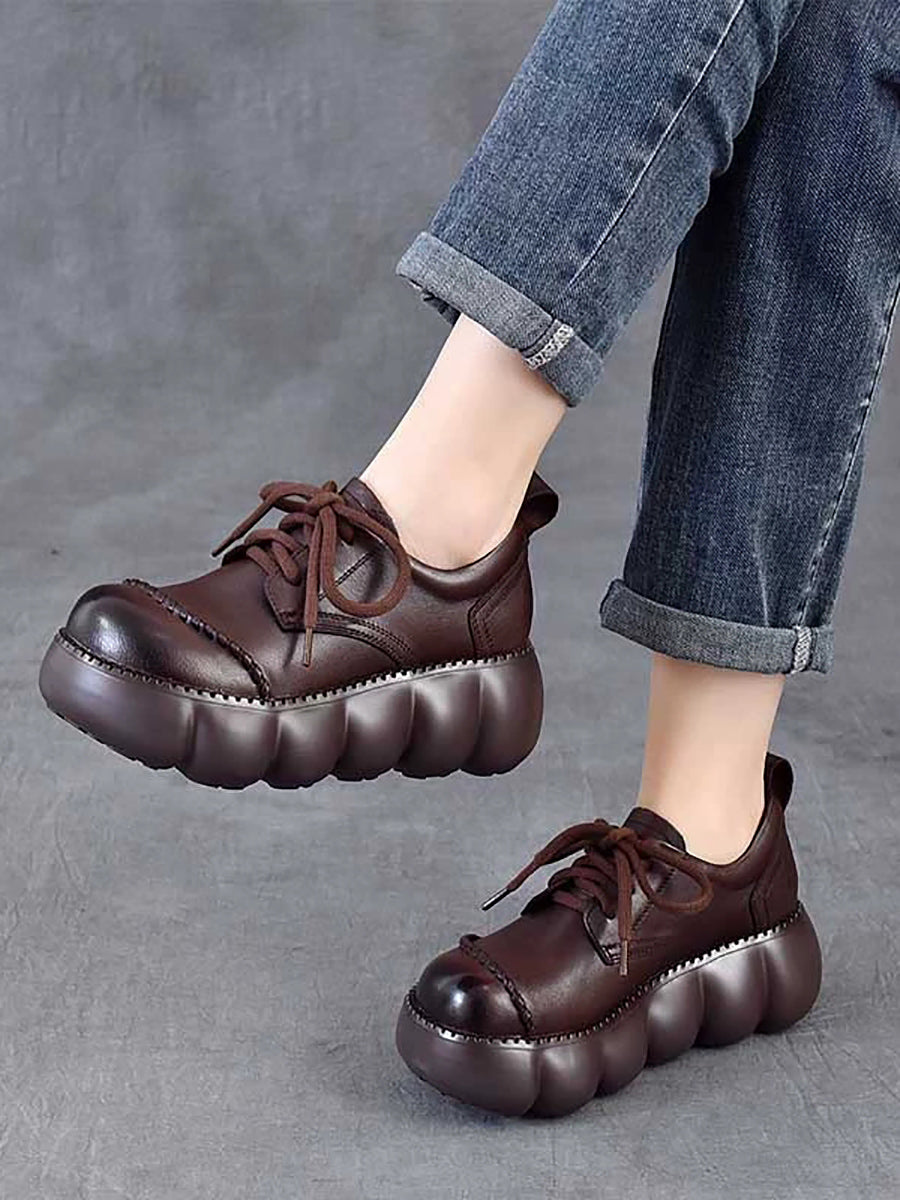 Dámské jarní retro boty z pravé kůže na platformě