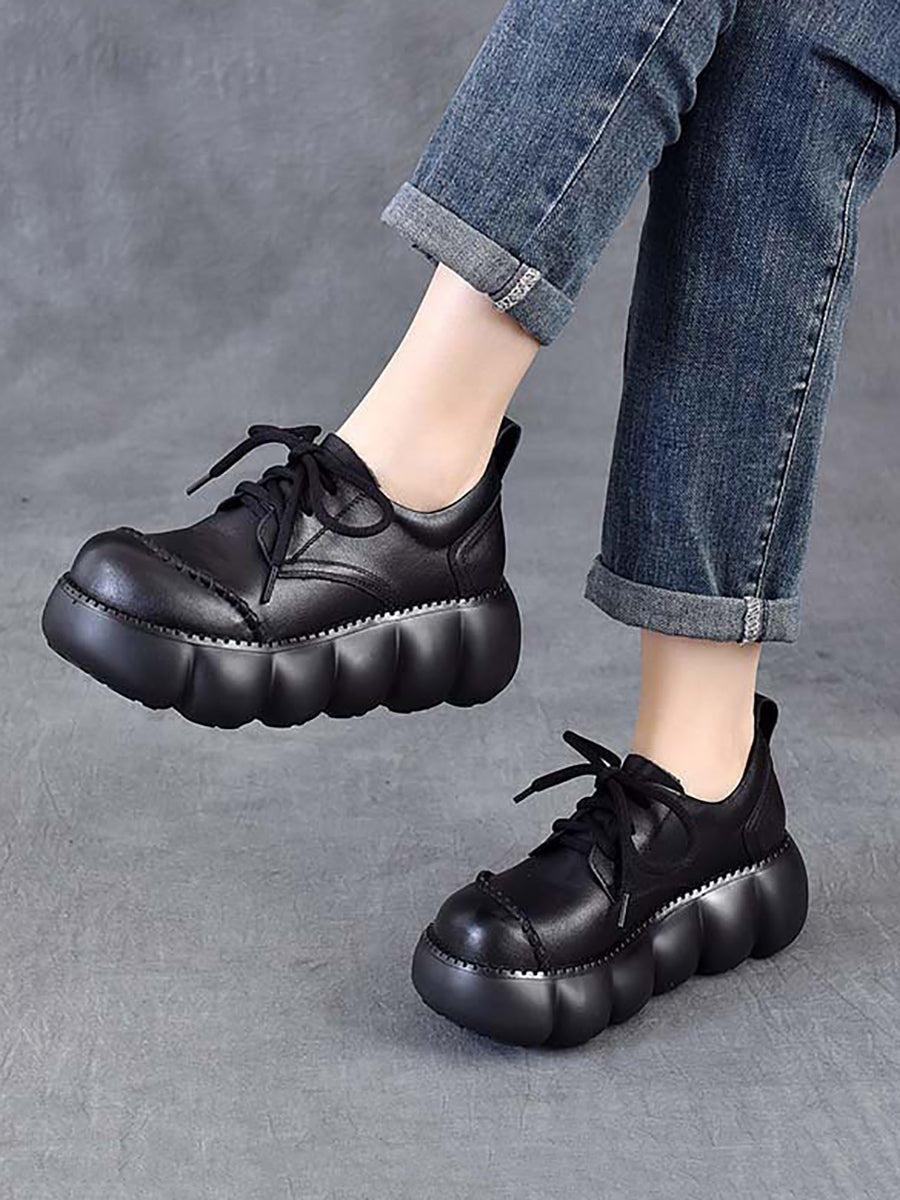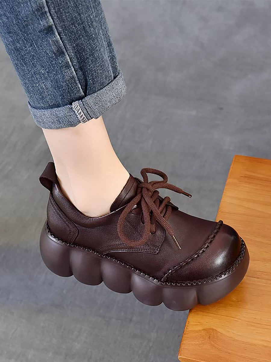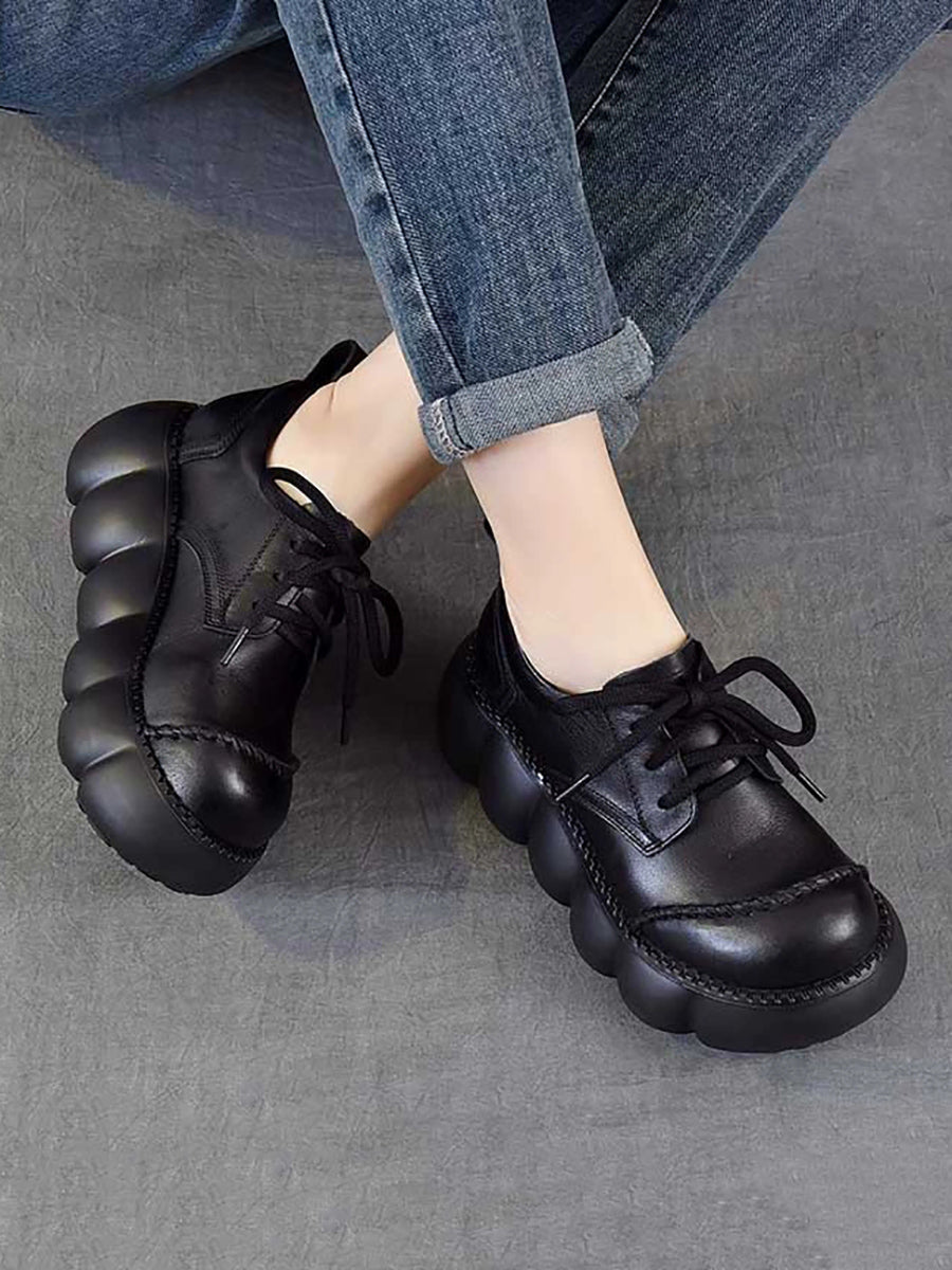 Dámské jarní retro boty z pravé kůže na platformě