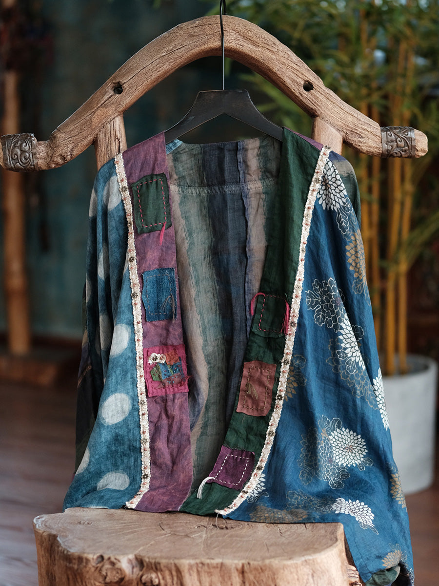 Dámské letní retro květinové patchworkové tričko s ramie vzorem