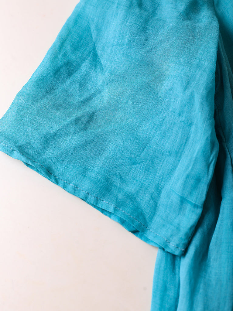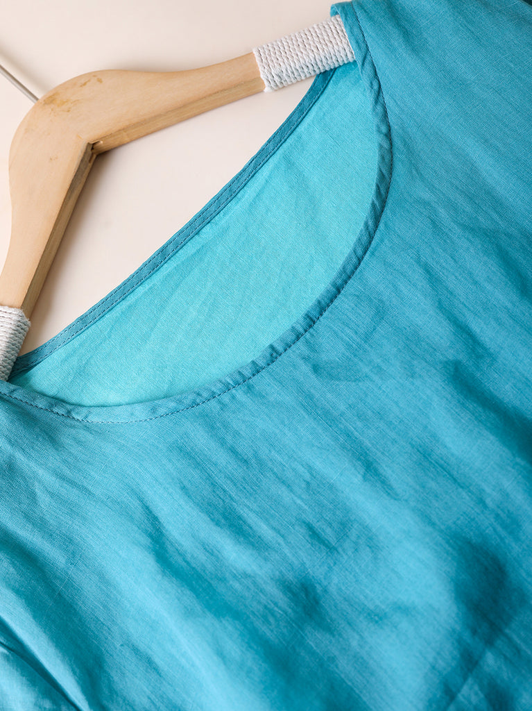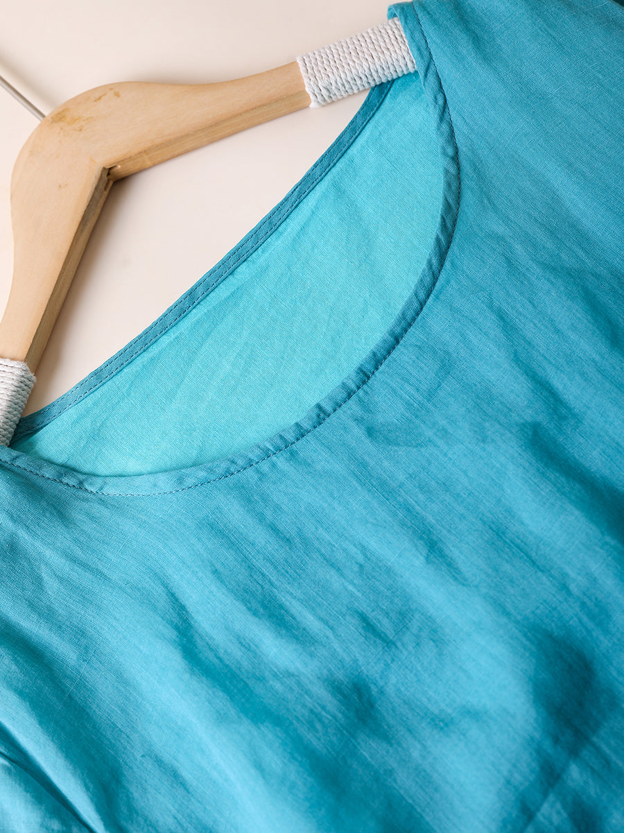 Dámské letní umělecké šaty s čistě barevným výstřihem do O-neck, 100% ramie