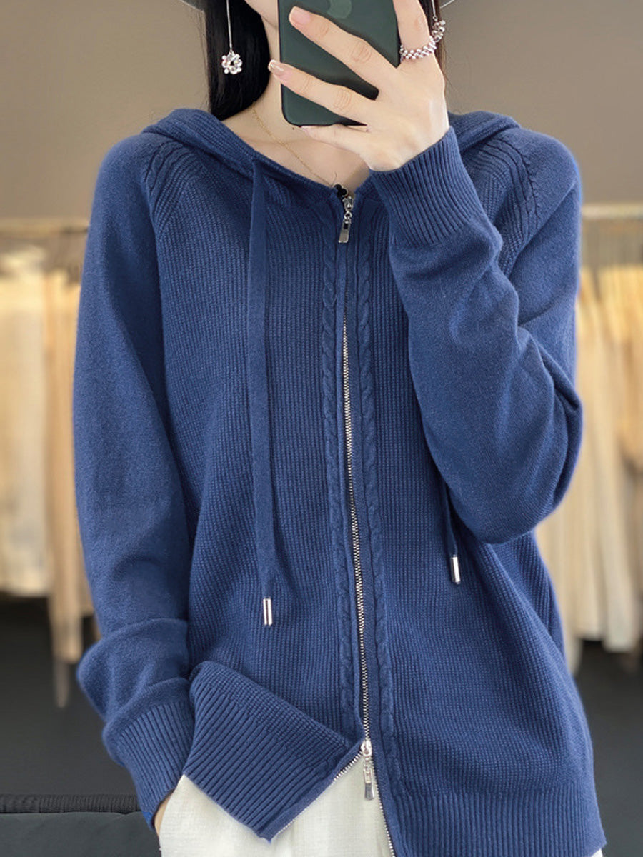 Dámský podzimní ležérní čistě barevný svetr s kapucí