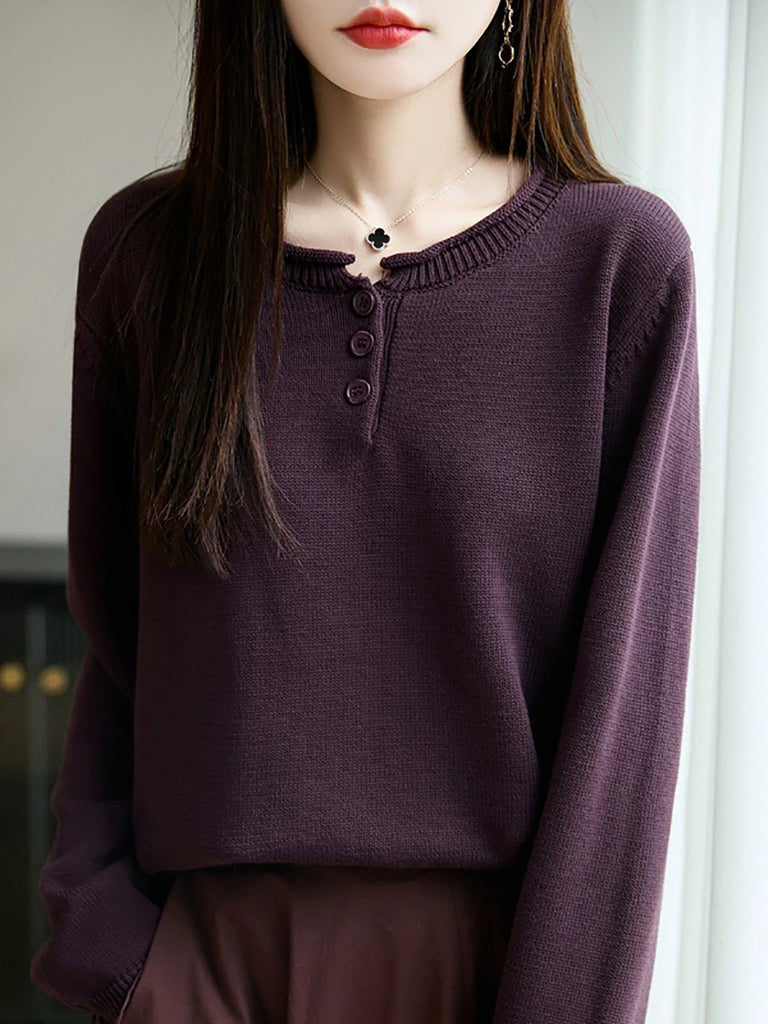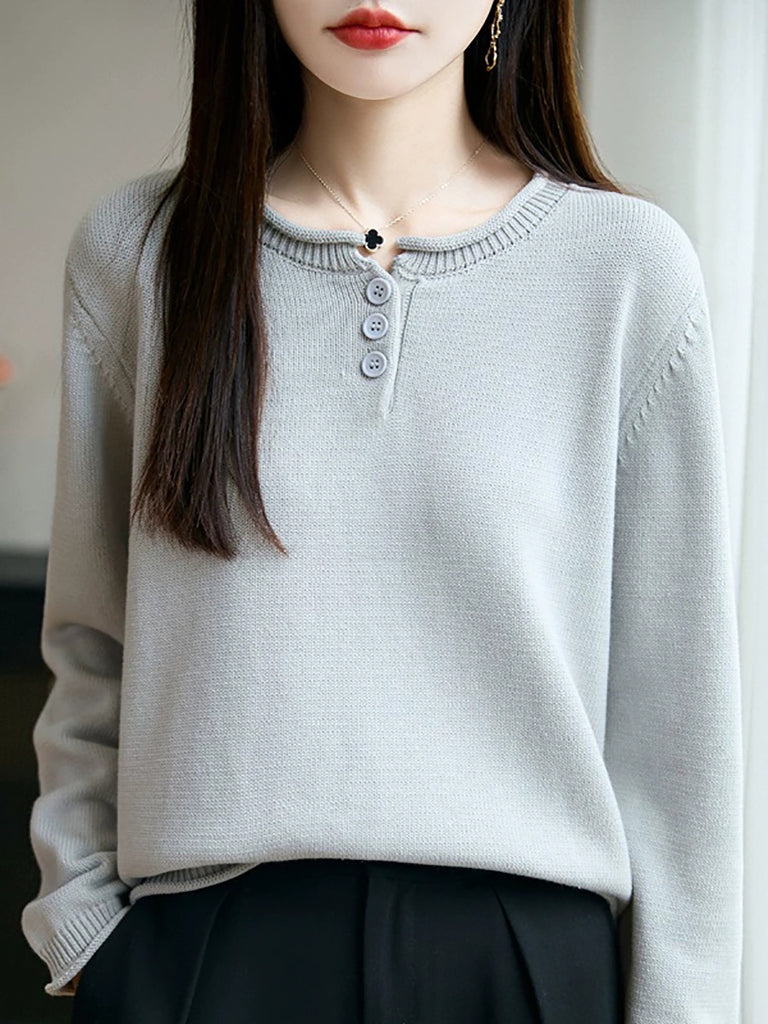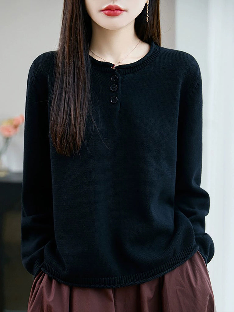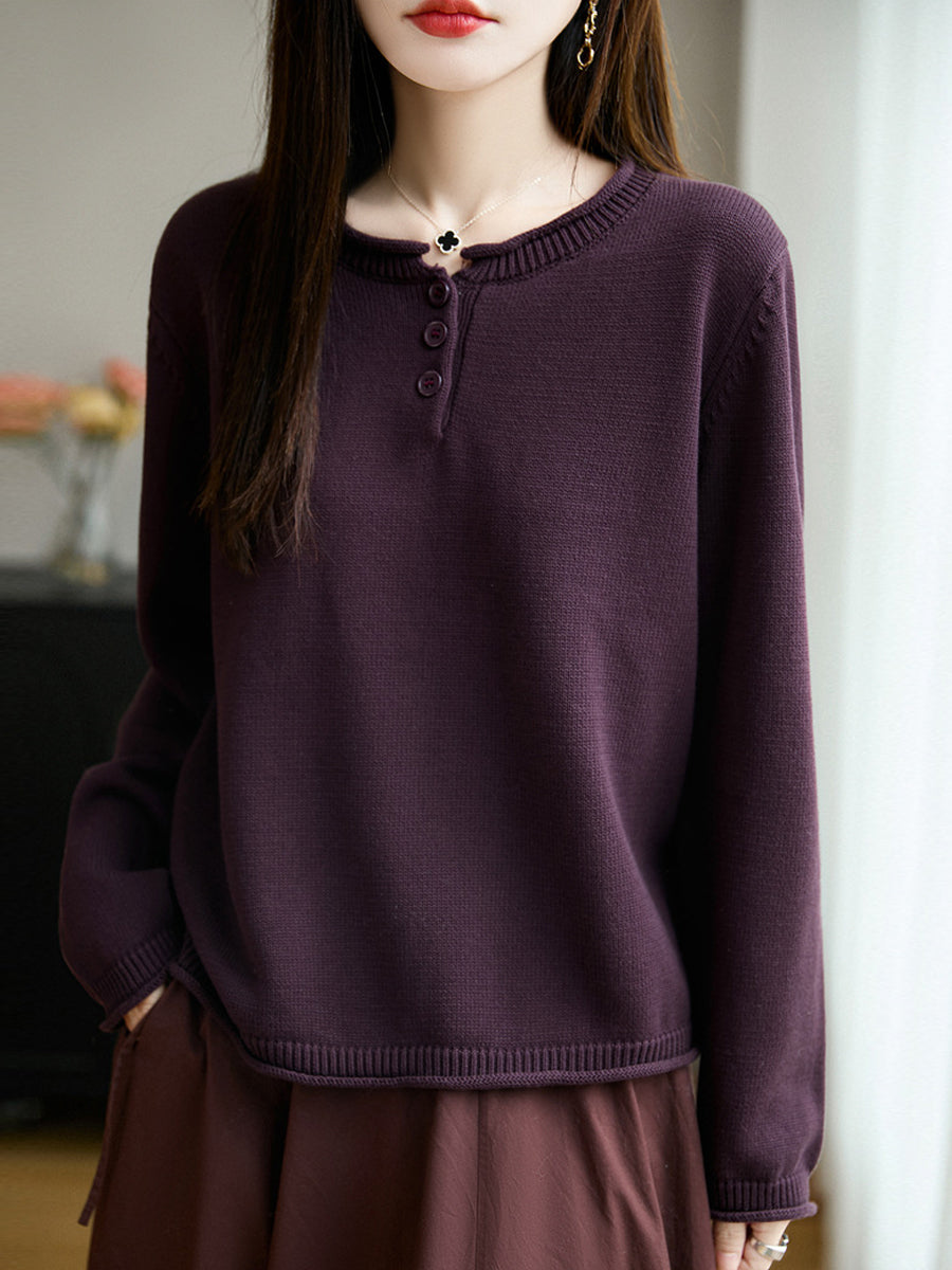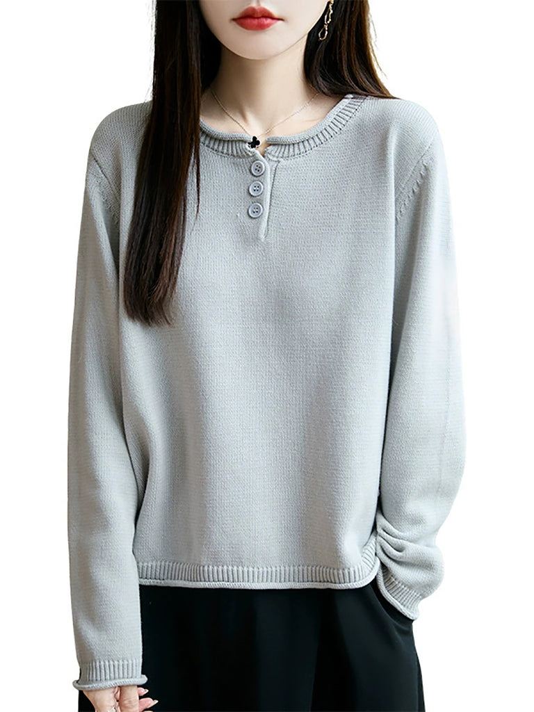 Dámský zimní pletený svetr s výstřihem do O-neck v čistých barvách ze 100% bavlny