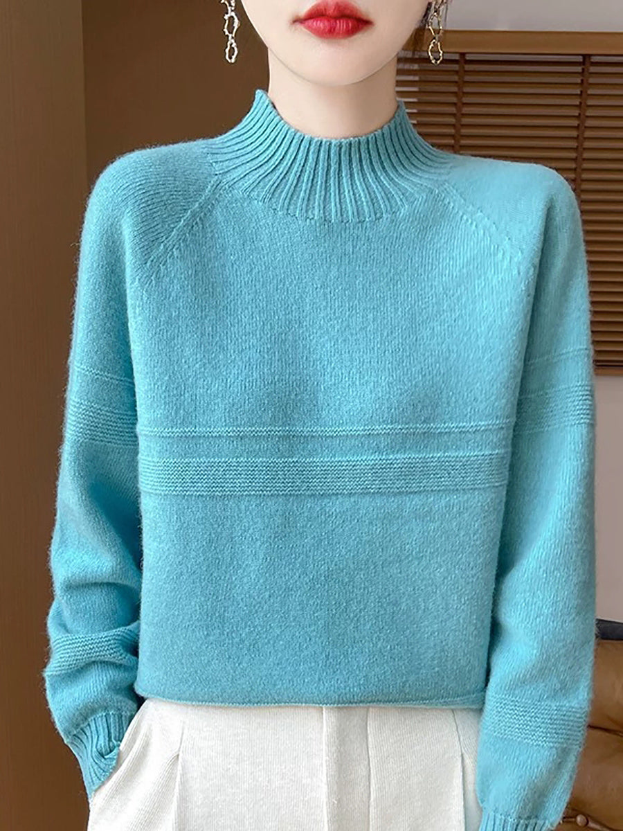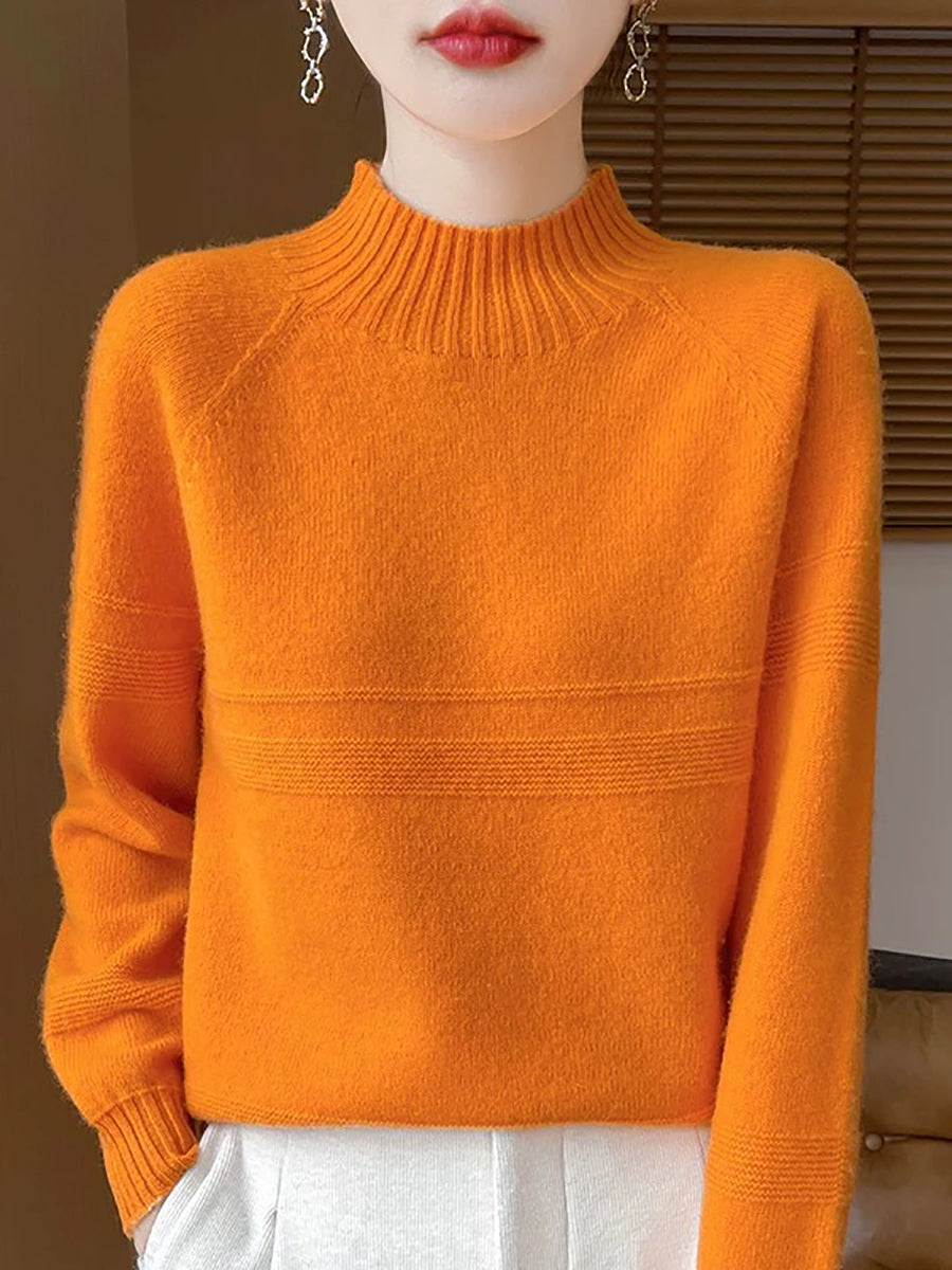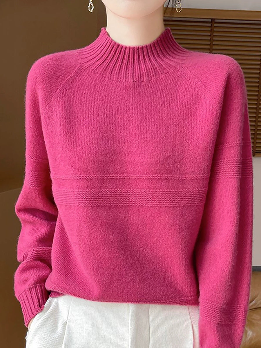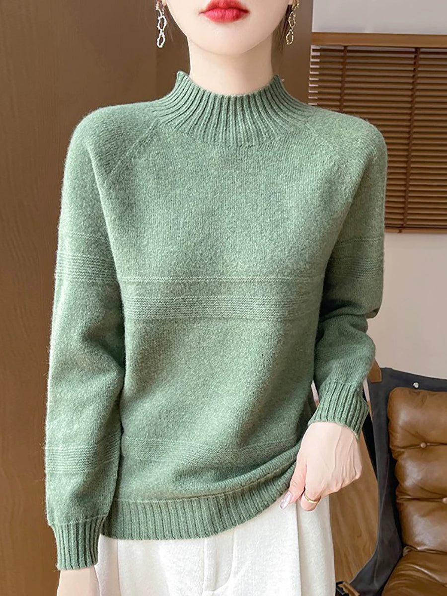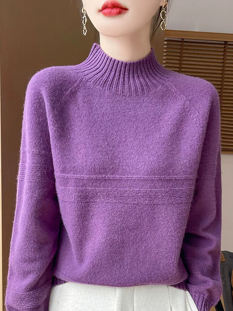 Dámský umělecký zimní vlněný svetr s čistými barvami