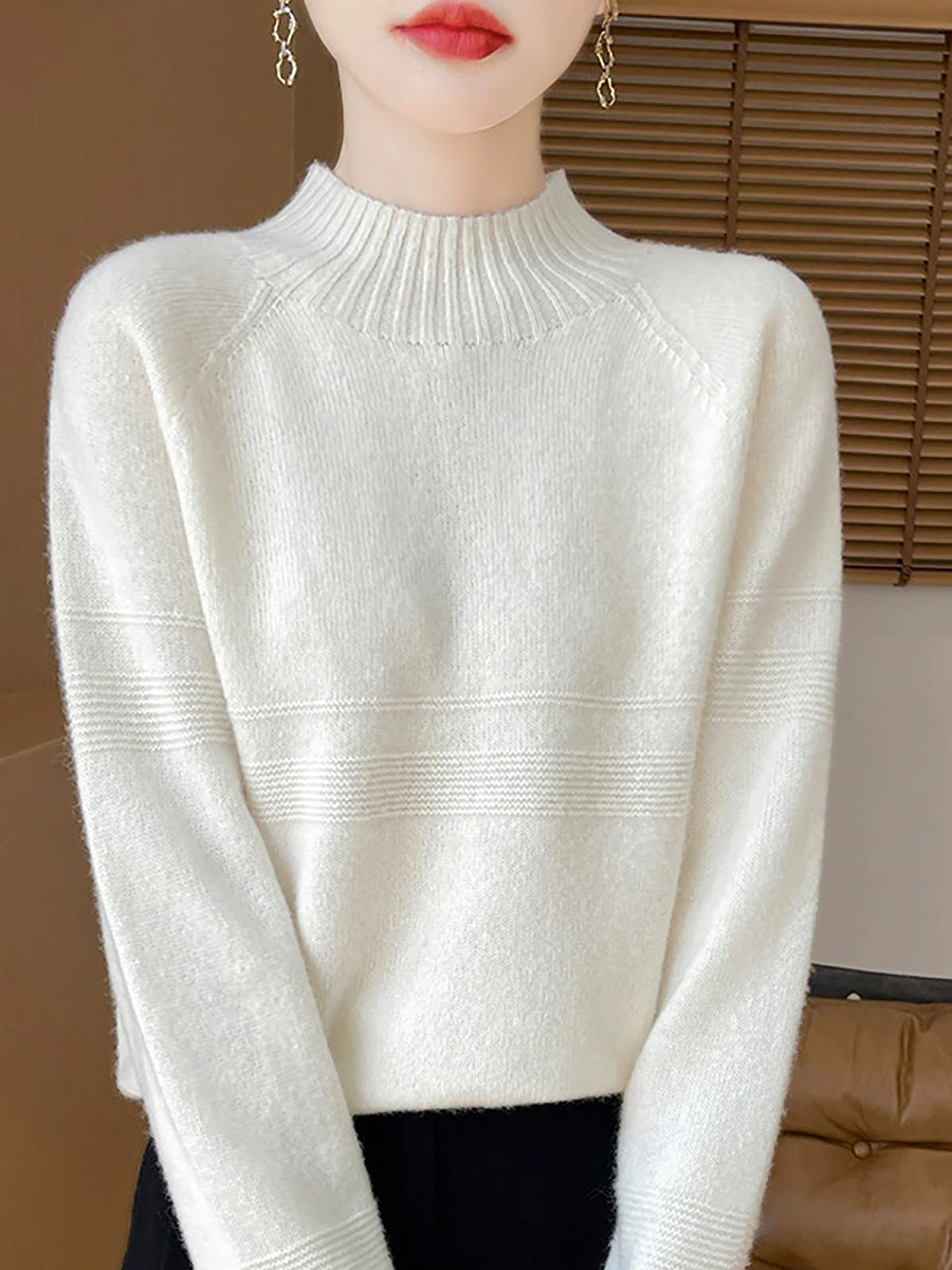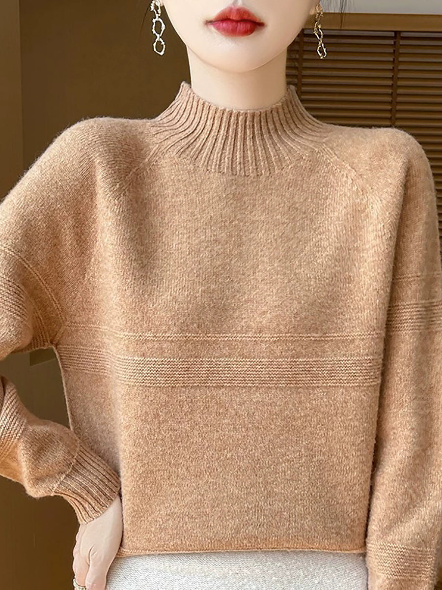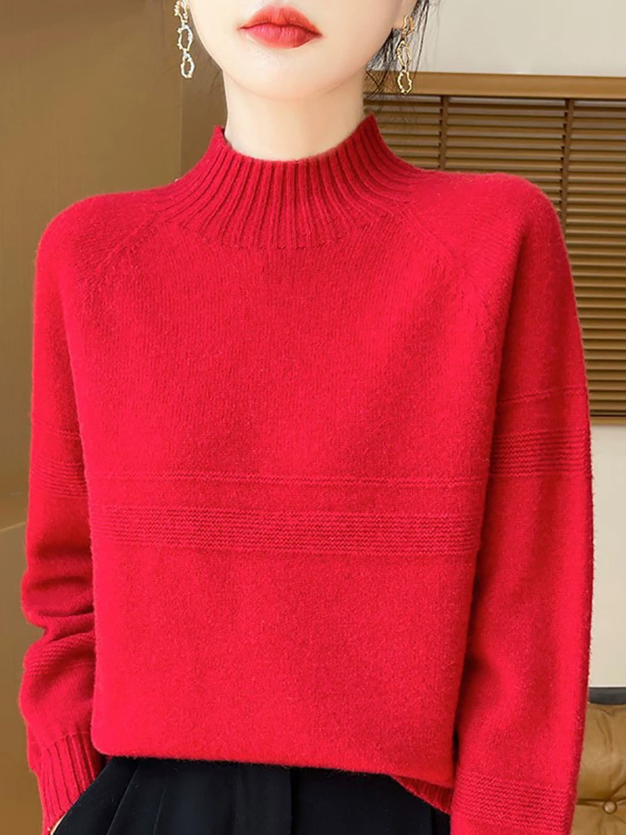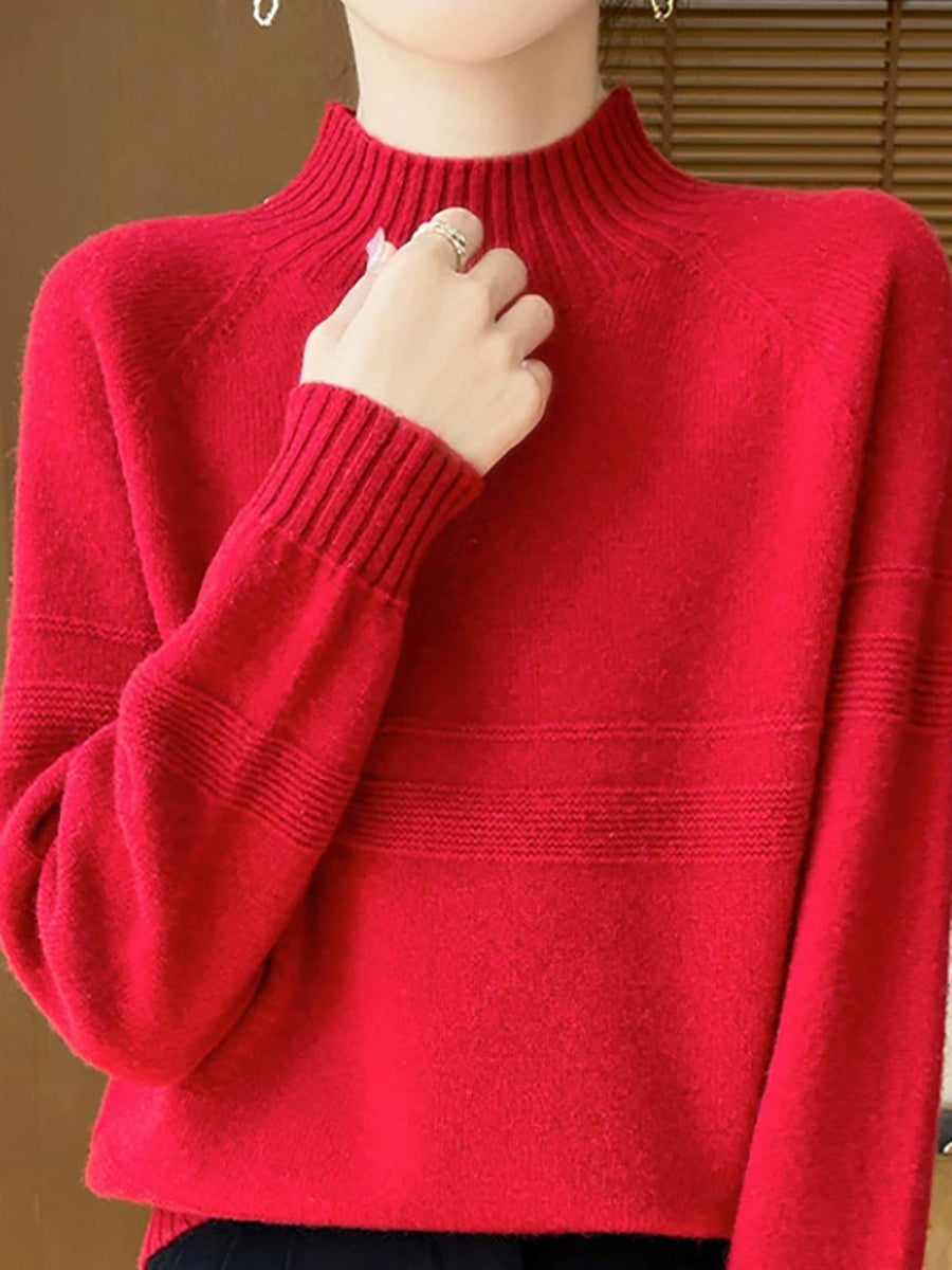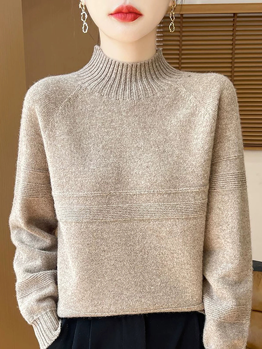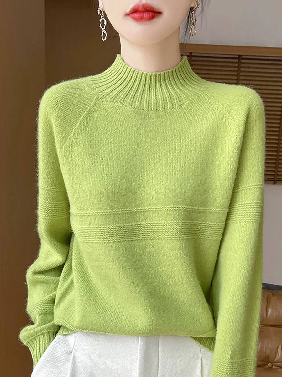 Dámský umělecký zimní vlněný svetr s čistými barvami