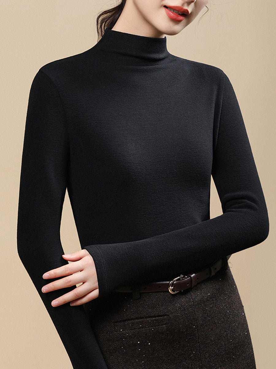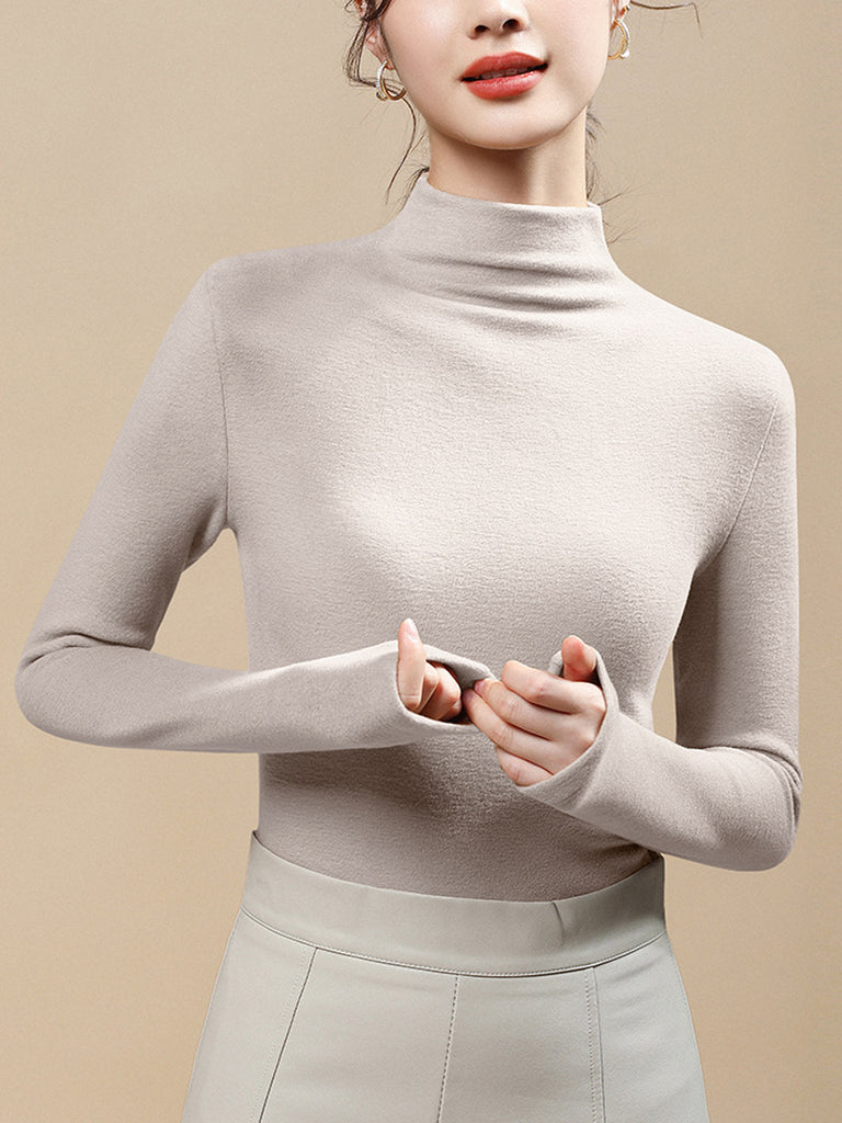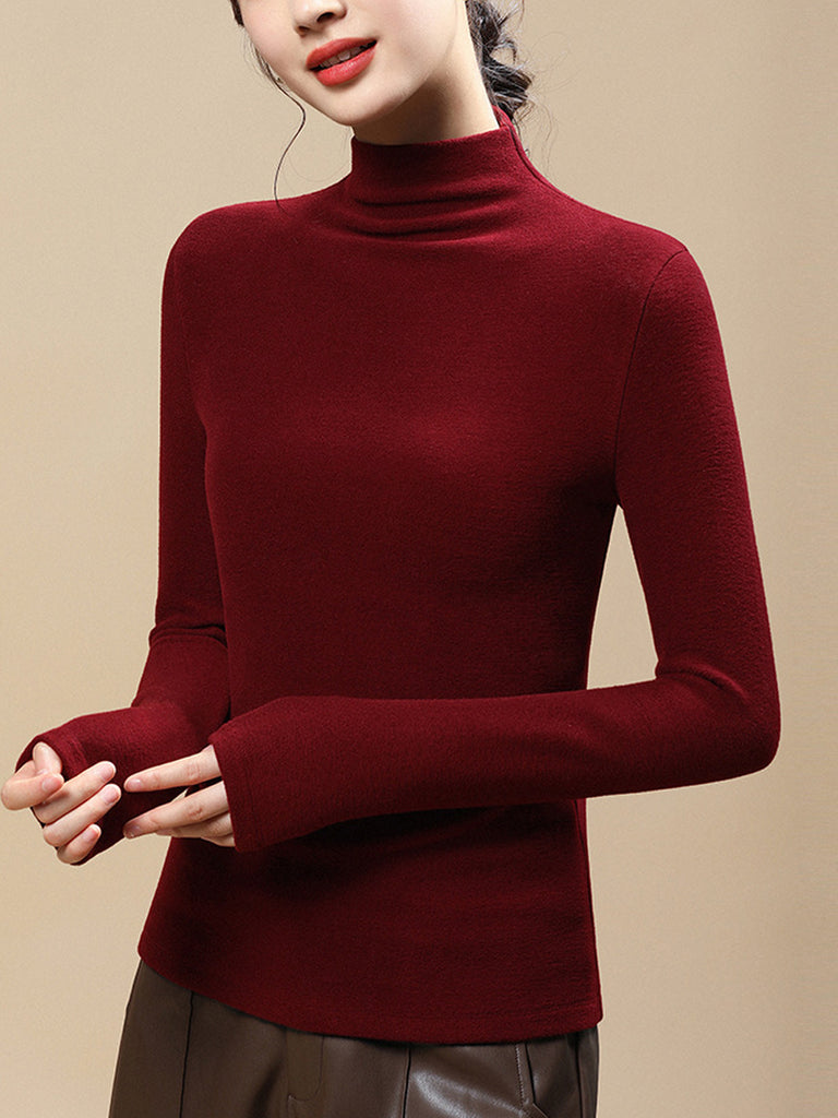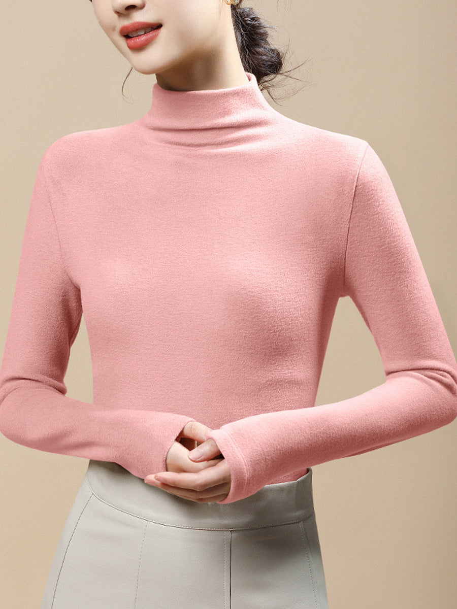 Dámská ležérní podzimní čistě barevná halenka s polovičními roláky