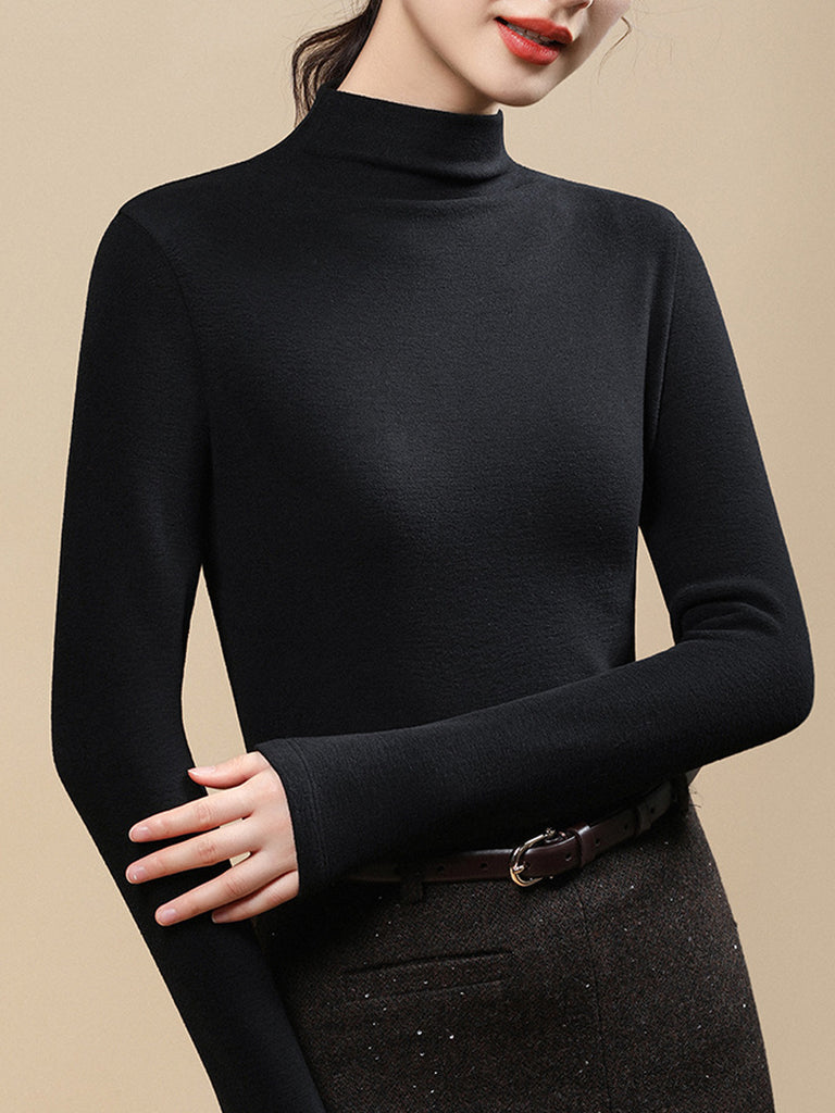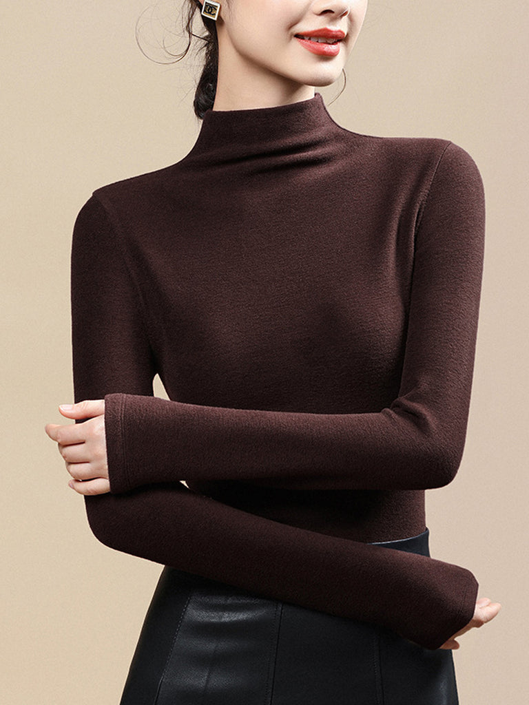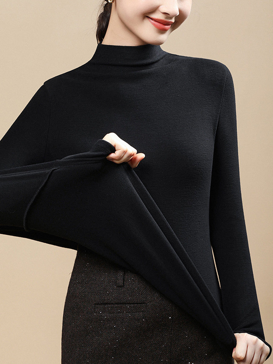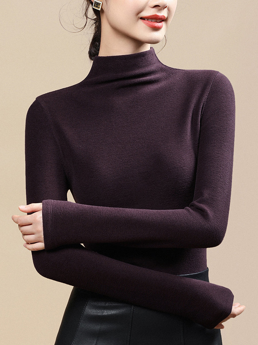 Dámská ležérní podzimní čistě barevná halenka s polovičními roláky