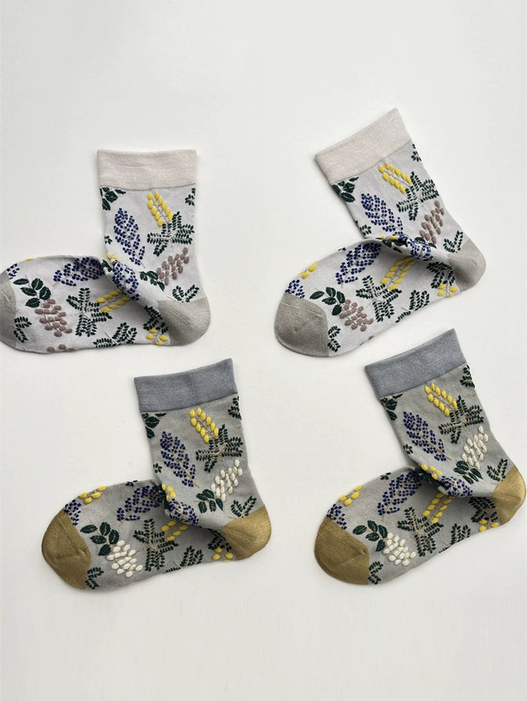 3 páry dámských módních žakárových ponožek s listy