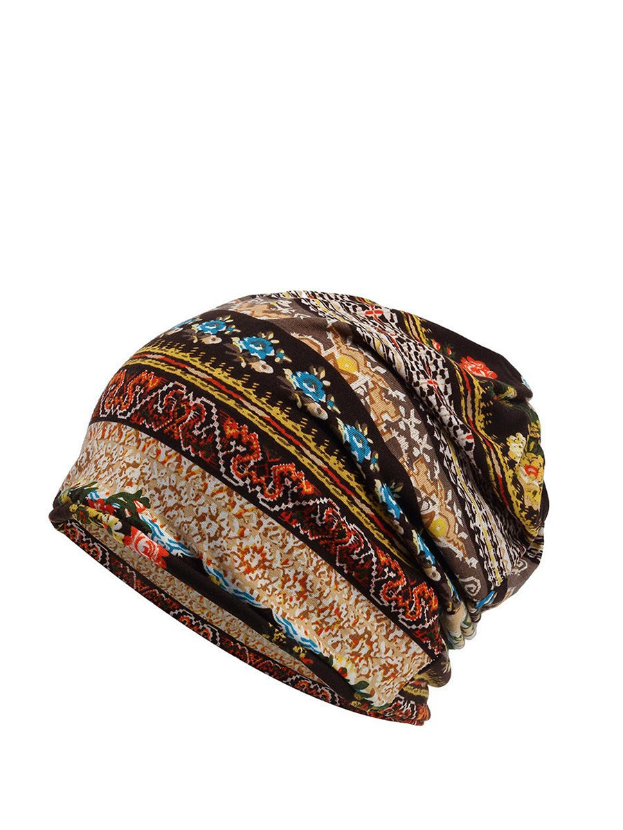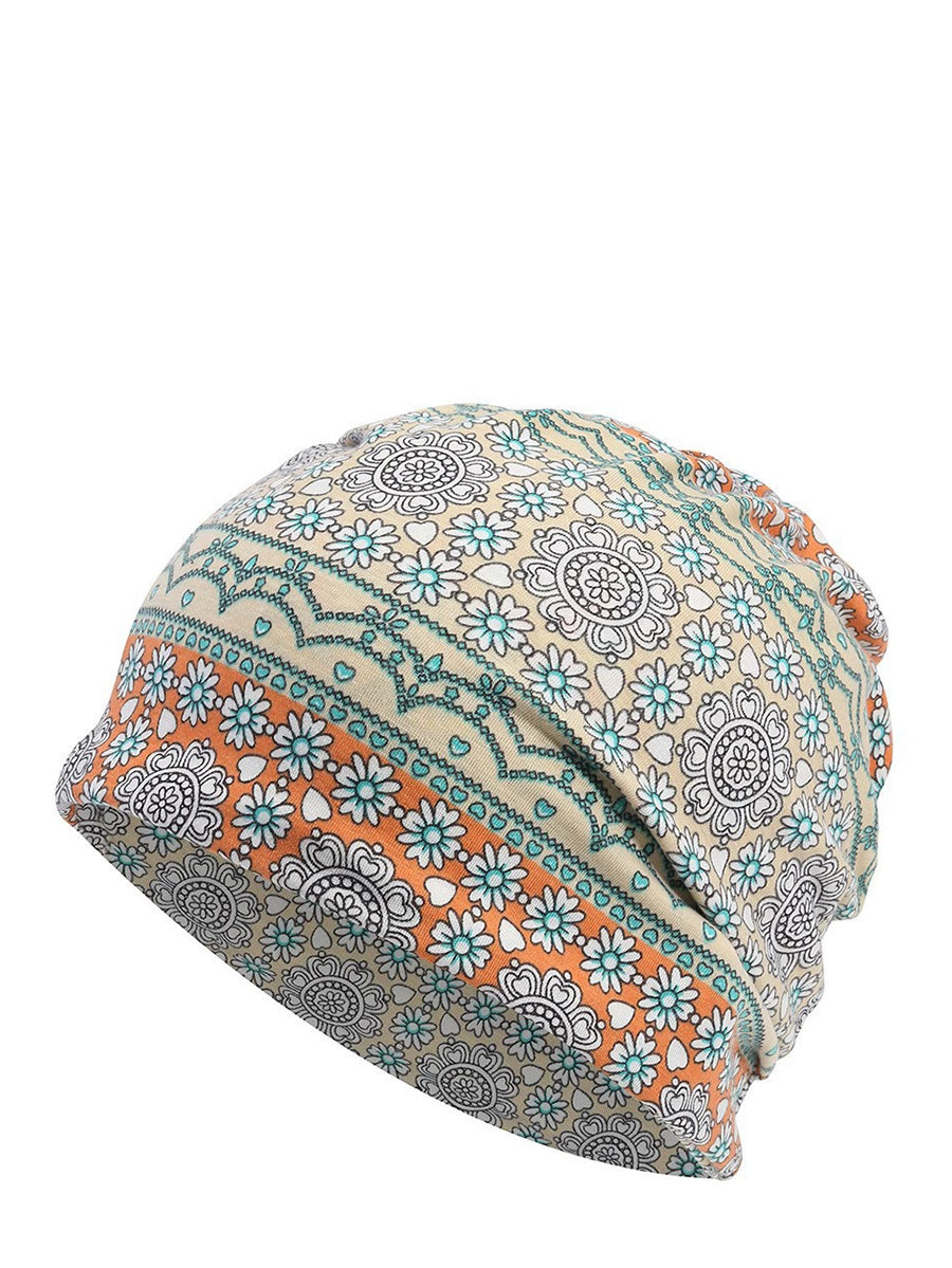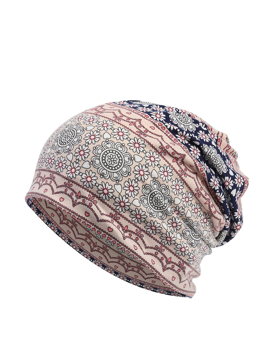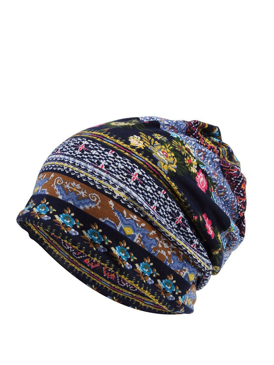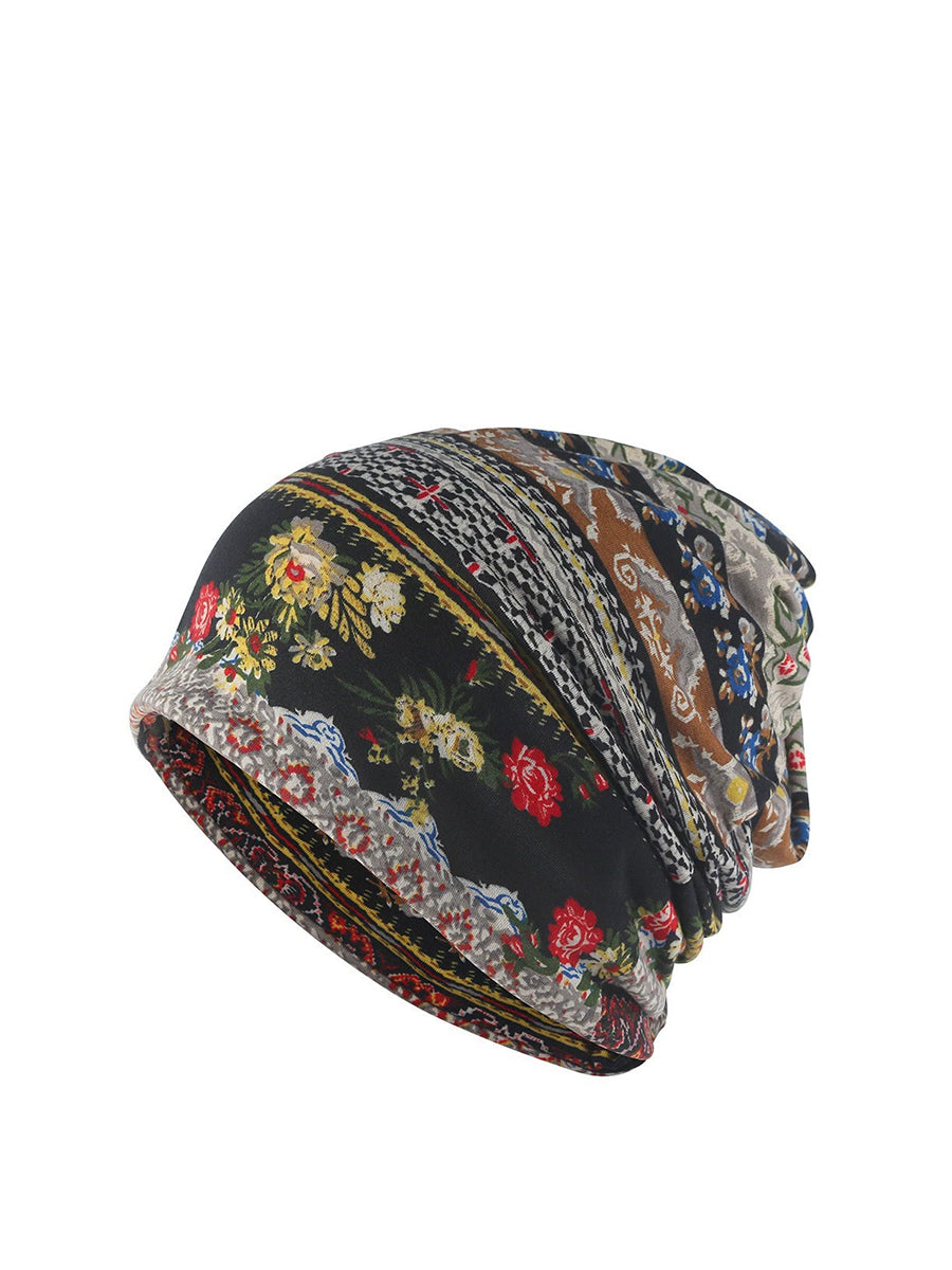Dámská podzimní etnická květinová měkká čepice