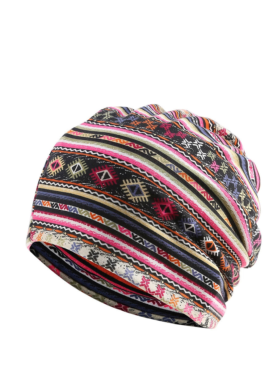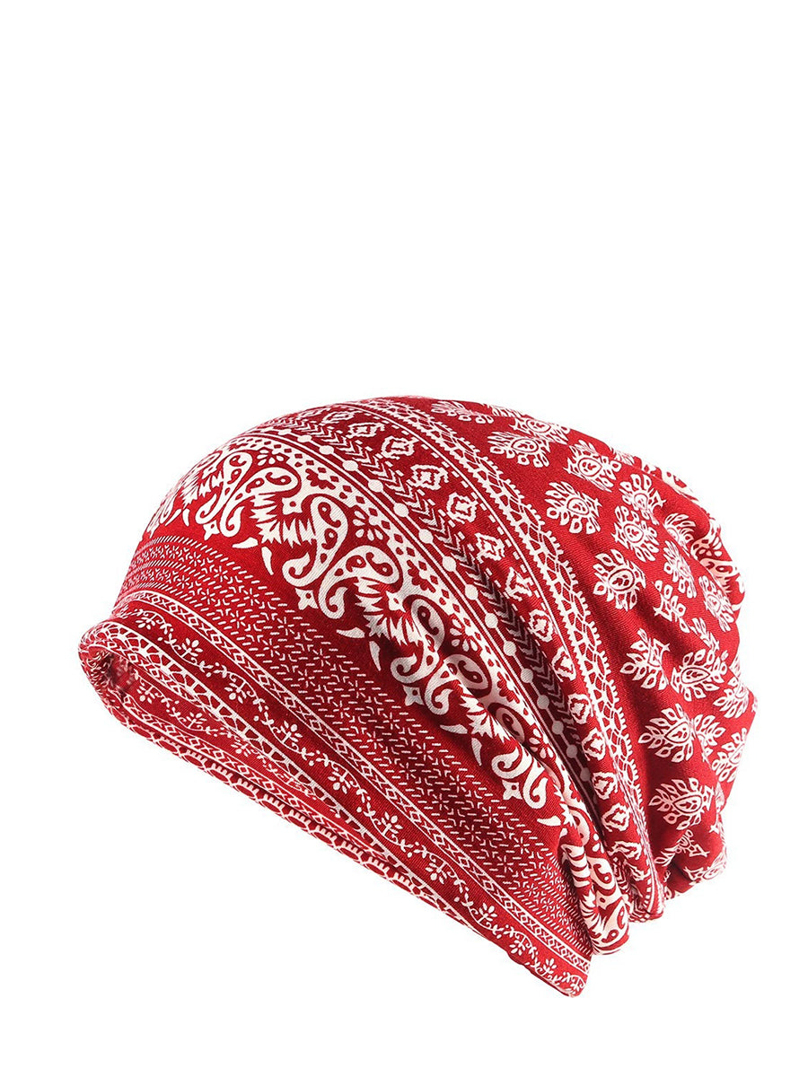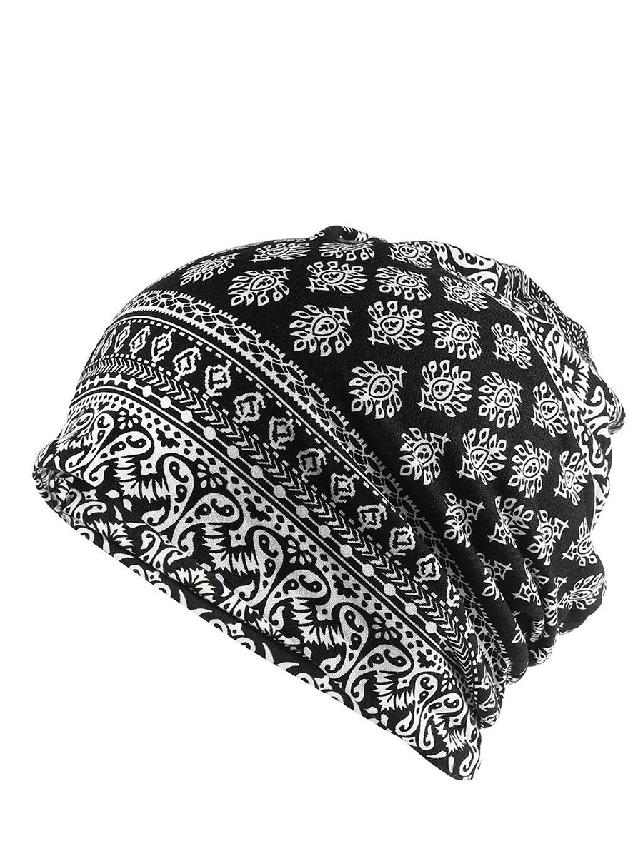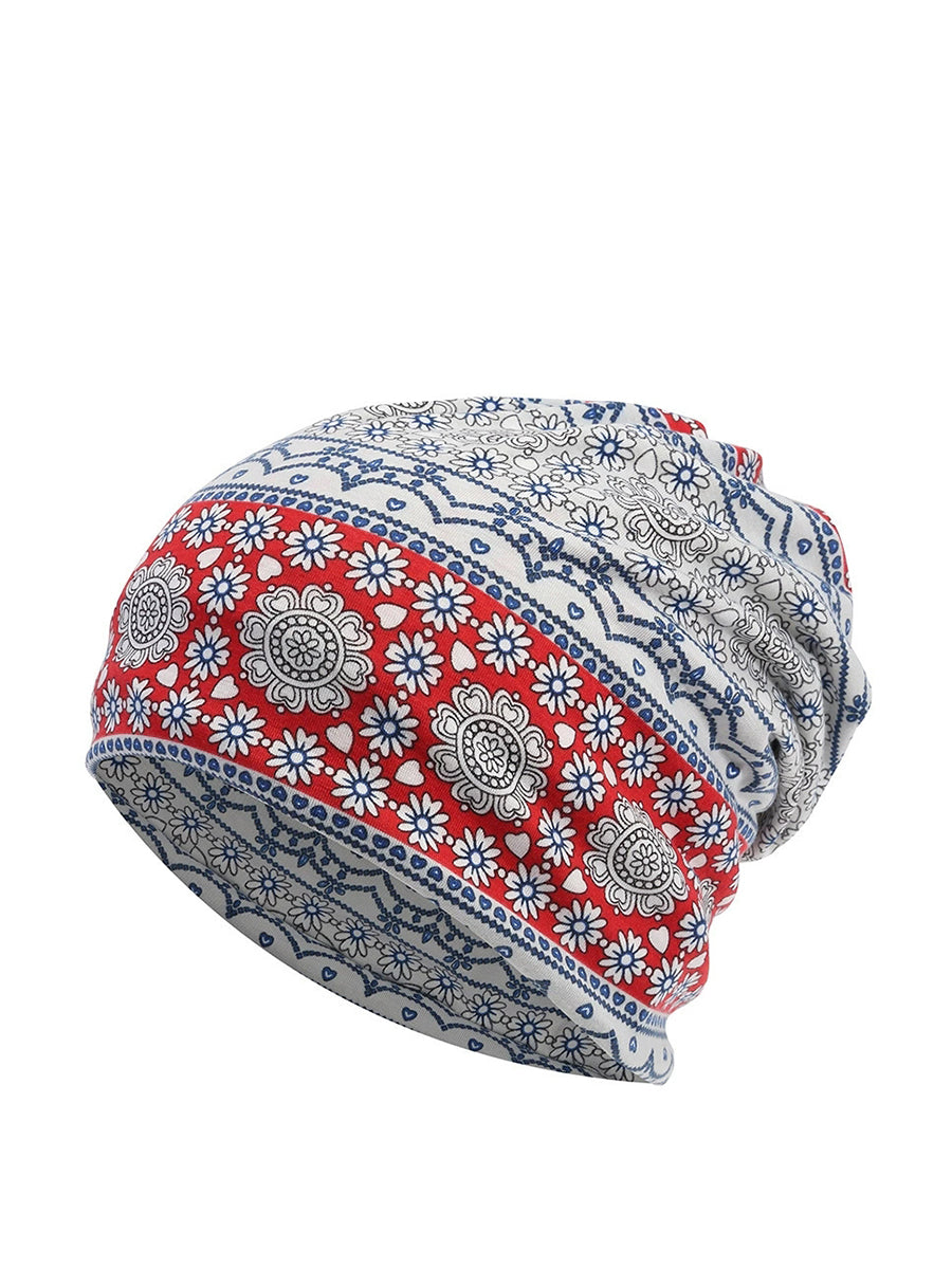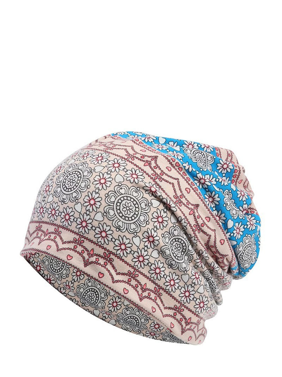 Dámská podzimní etnická květinová měkká čepice