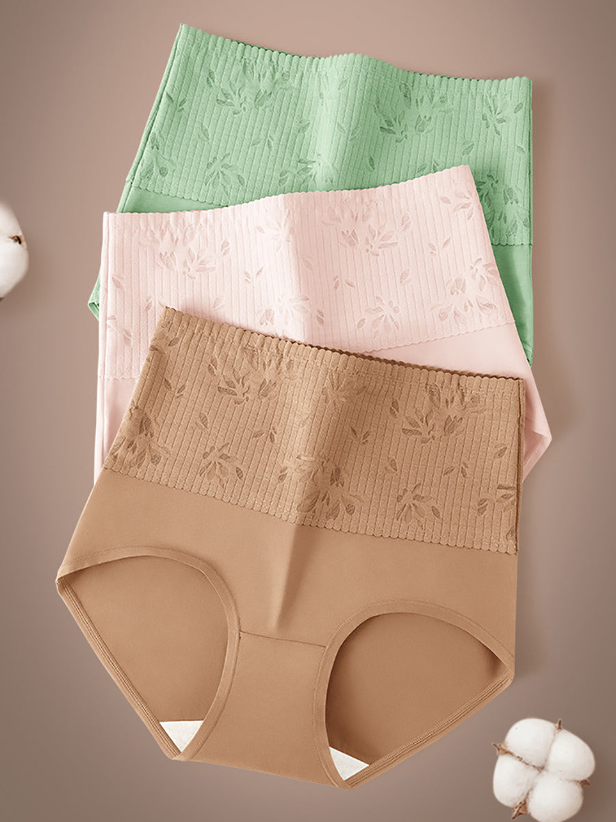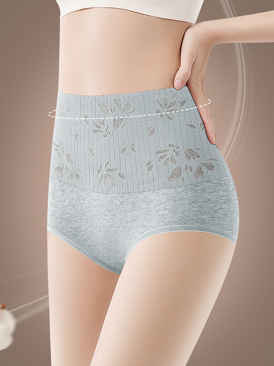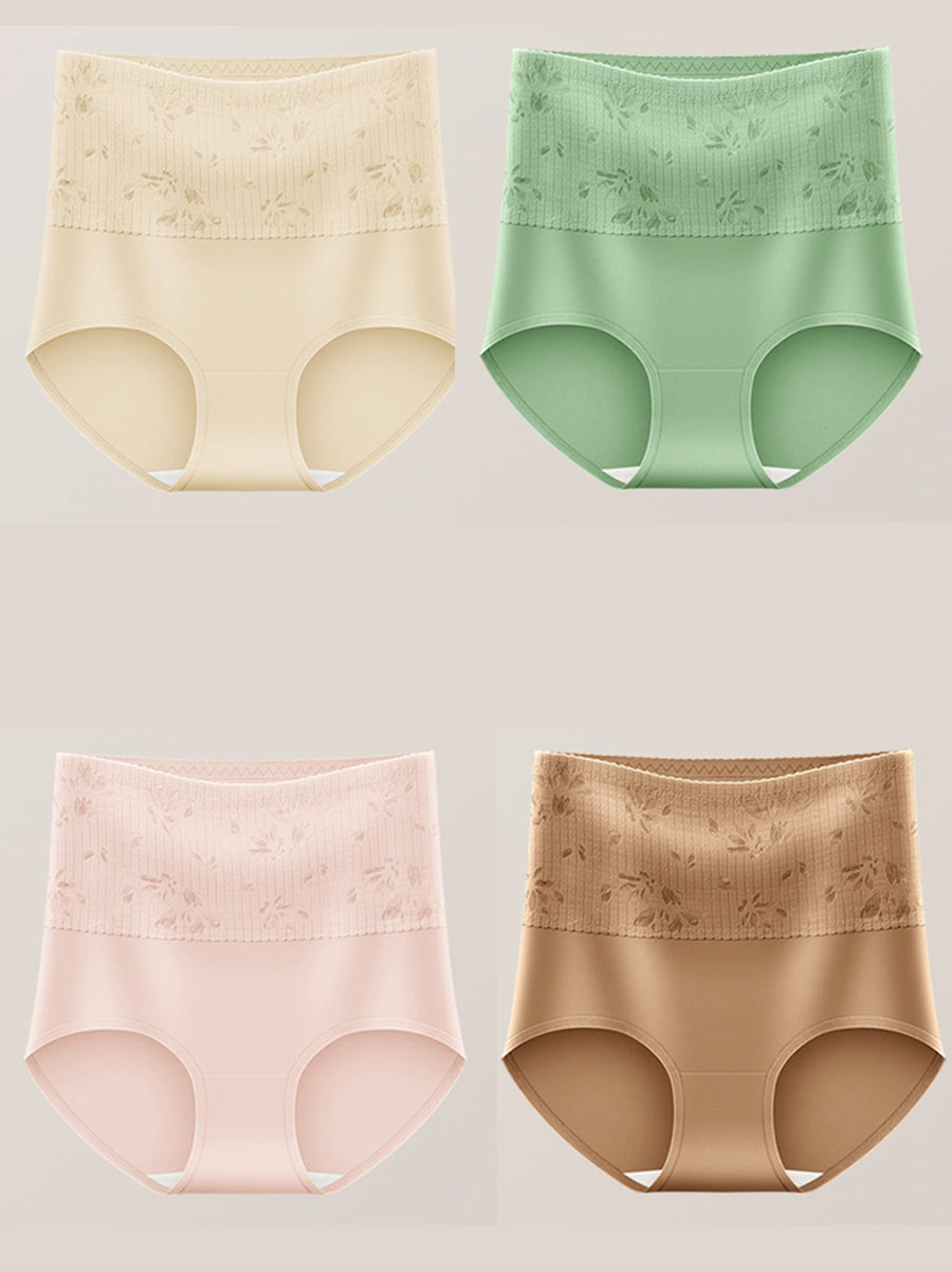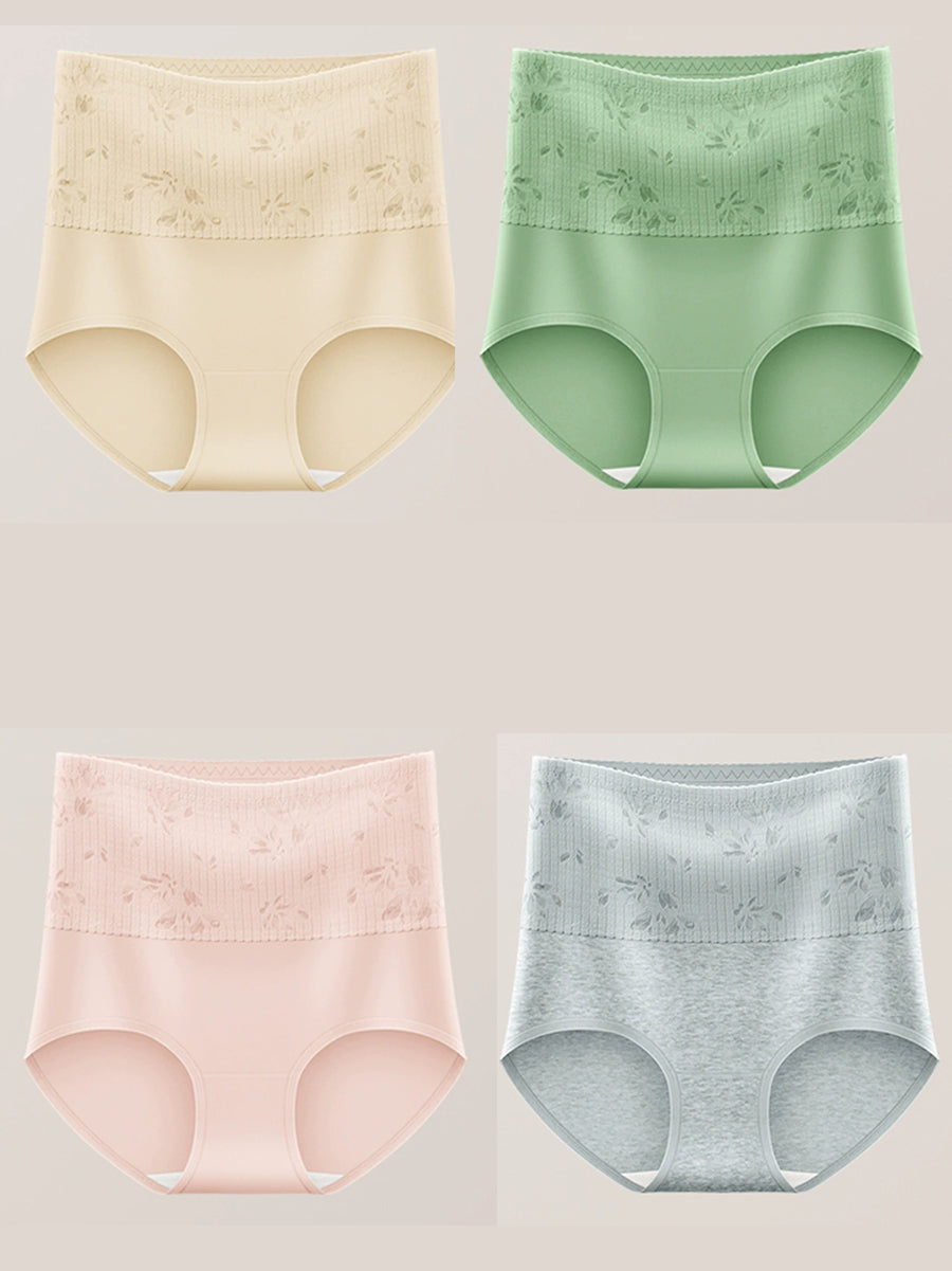 4dílné dámské spodní prádlo s vysokým pasem a uměleckým květinovým vzorem
