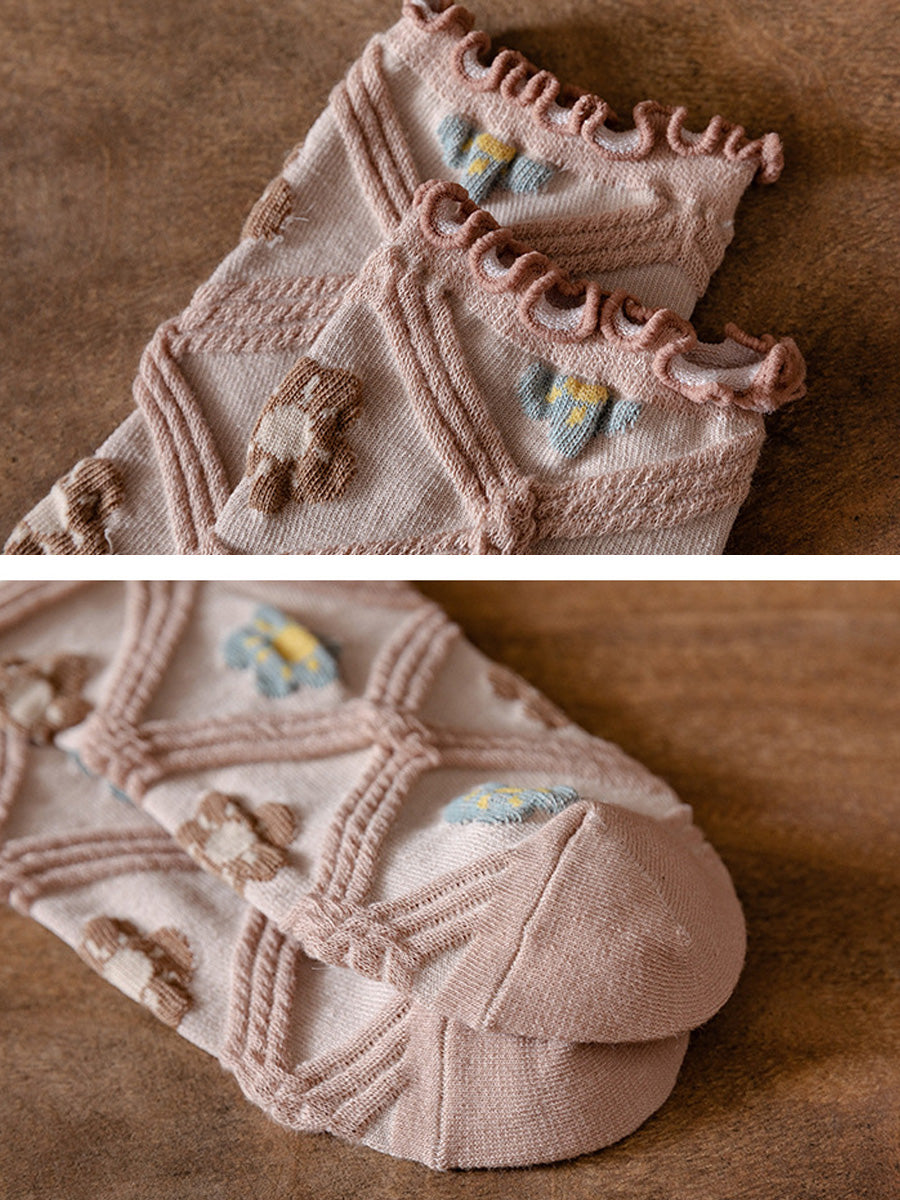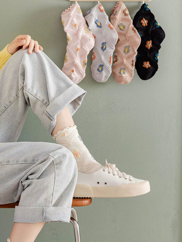 6 párů dámských uměleckých letních květinových kosočtvercových ponožek