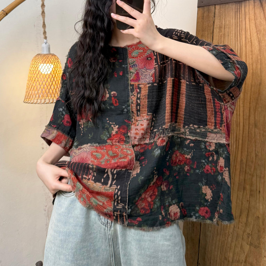 Tato košile má pevný vzor. Má límec s výstřihem do O, raglánové rukávy a tříčtvrteční délku rukávu, takže je ideální pro jarní a letní období. Jeho umělecký design dodává tomuto stylovému kousku punc jedinečnosti.