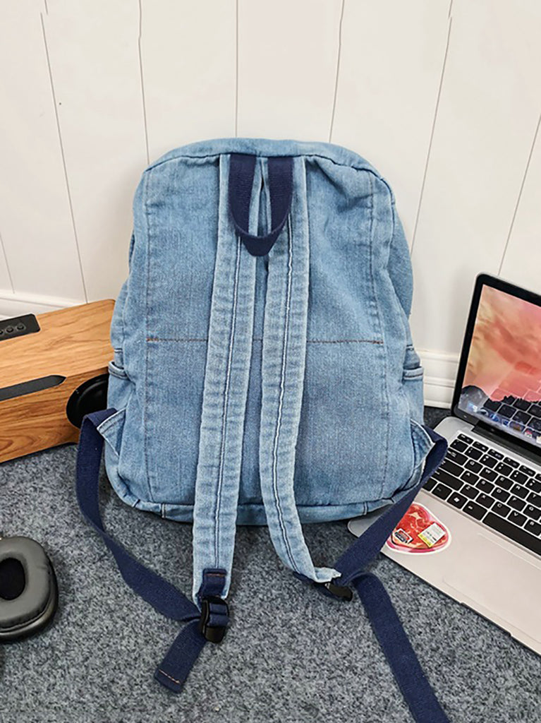 Dámský ležérní pevný velkokapacitní školní džínový batoh