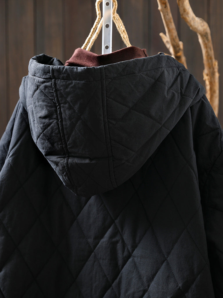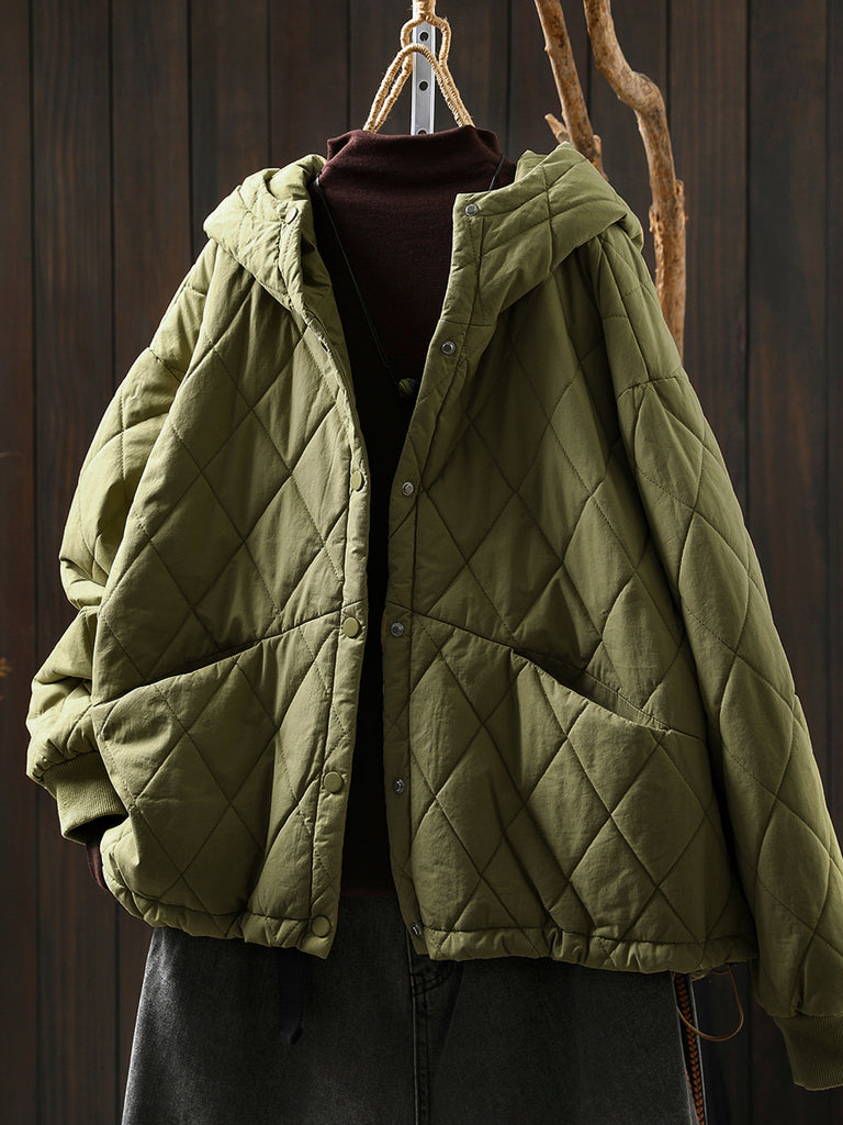 Dámská podzimní ležérní čistě barevná prošívaná bunda s kapucí