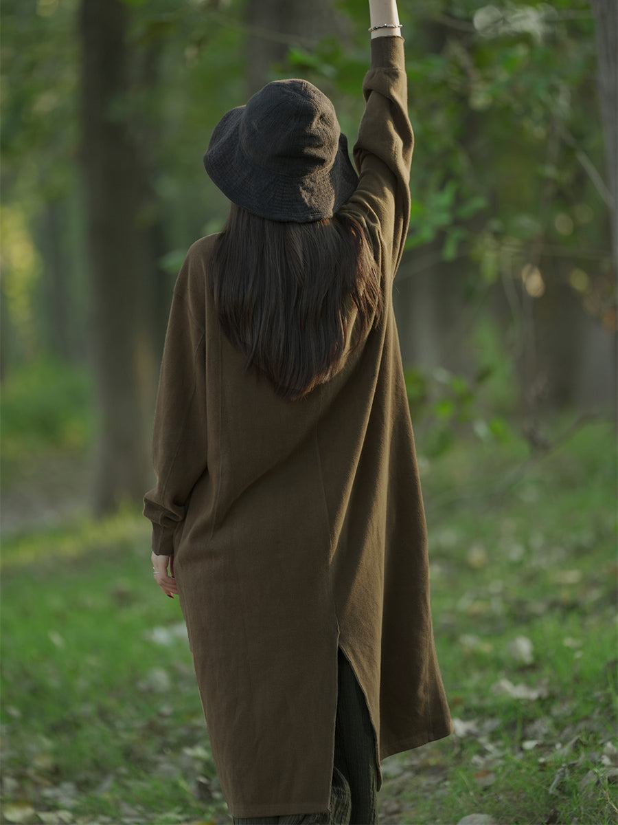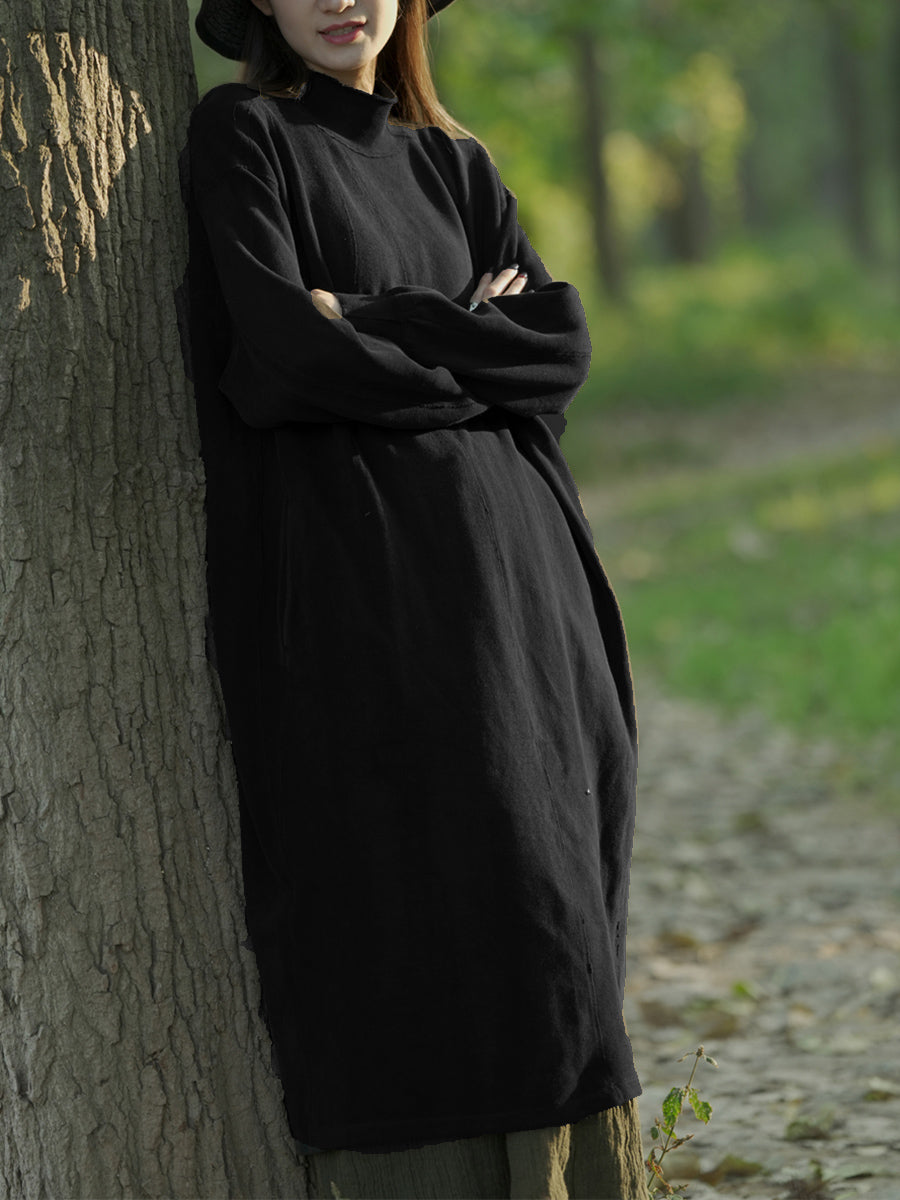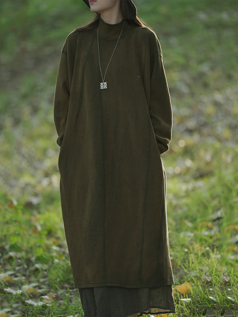 Dámské podzimní ležérní bavlněné šaty s čistě barevným stojáčkem