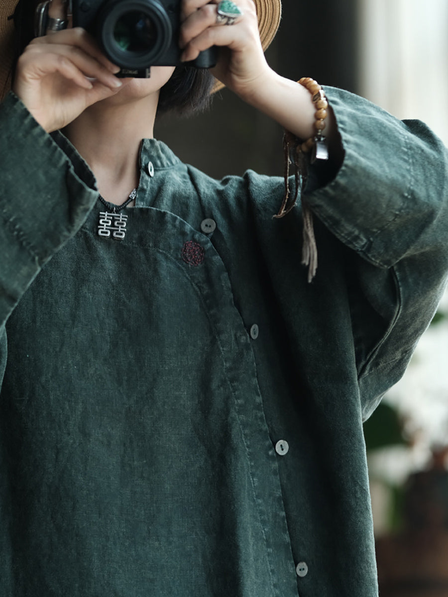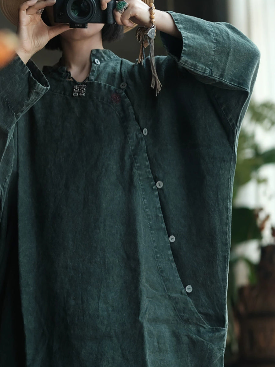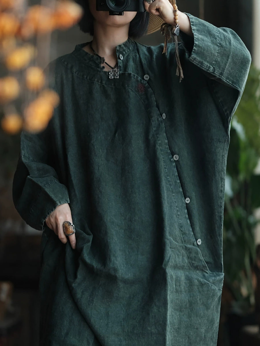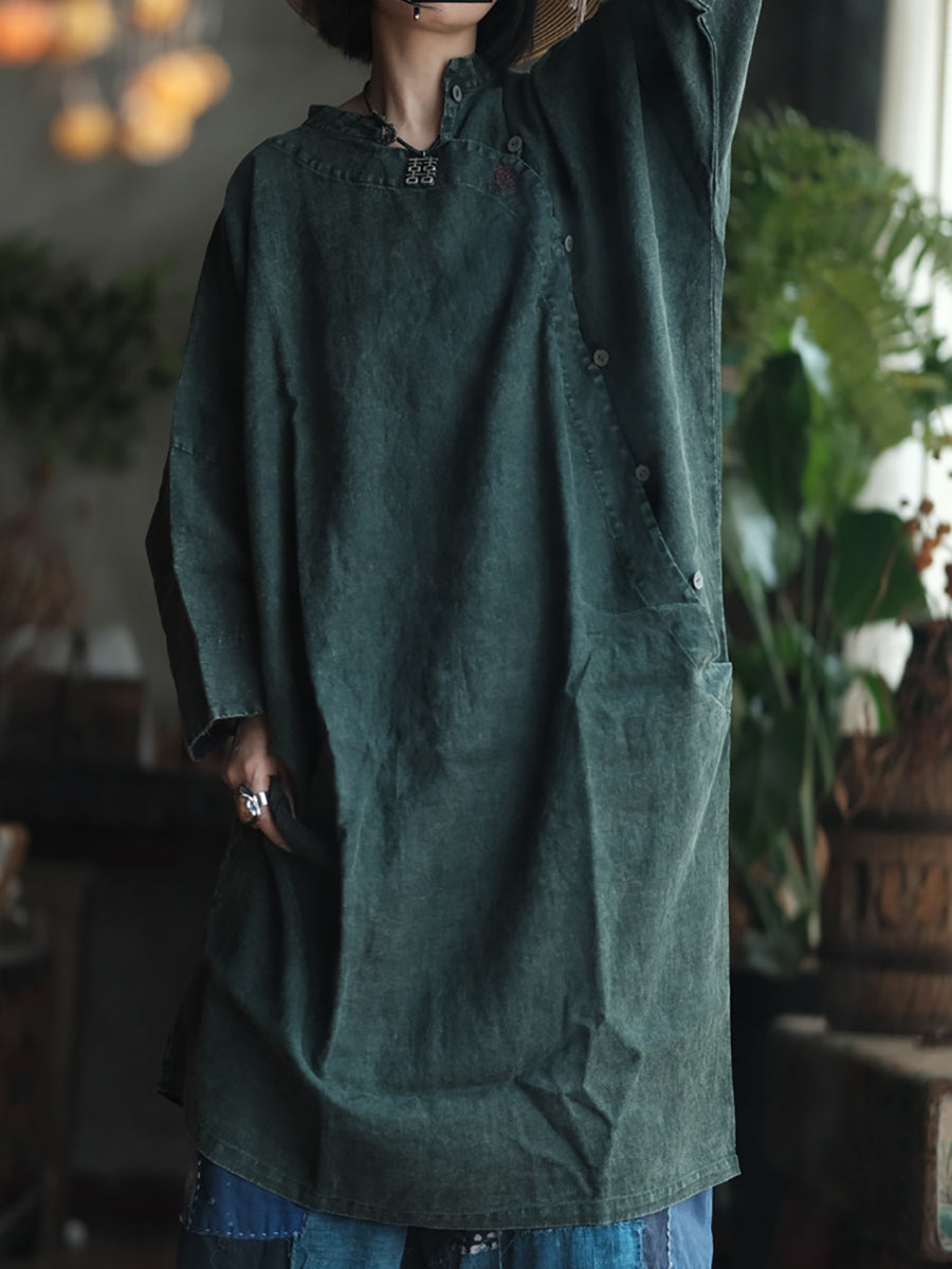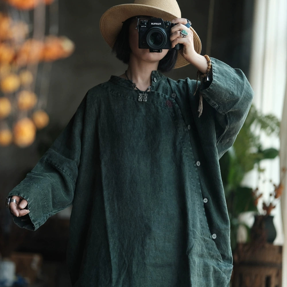 Dámské podzimní etnické čisté barvy lněné volné šaty
