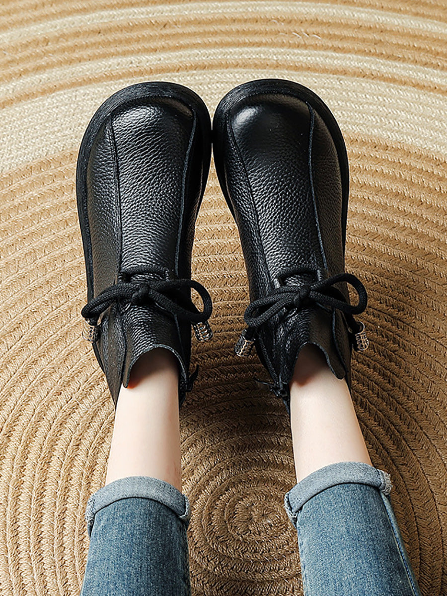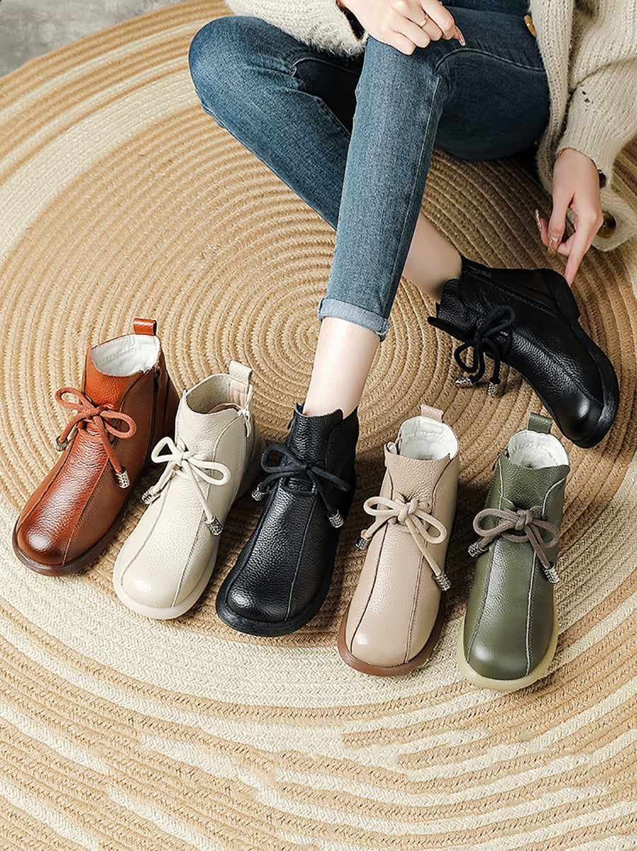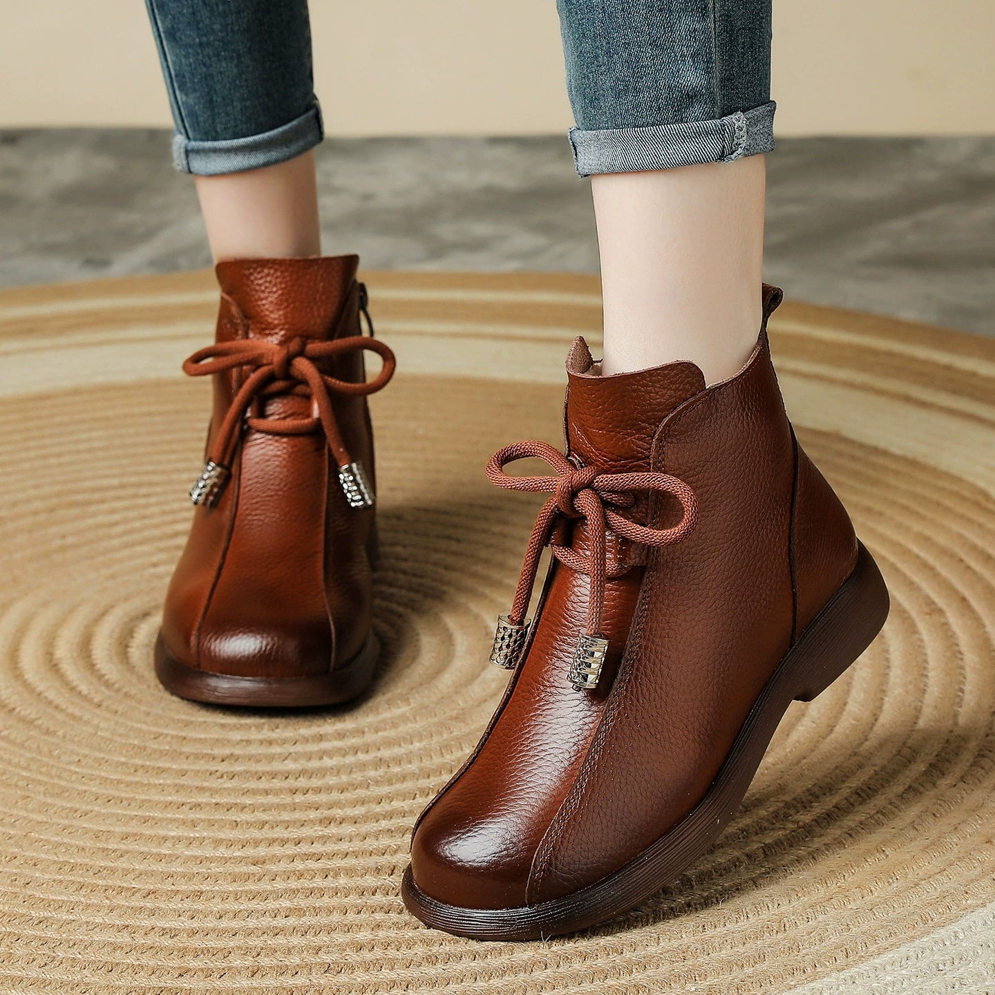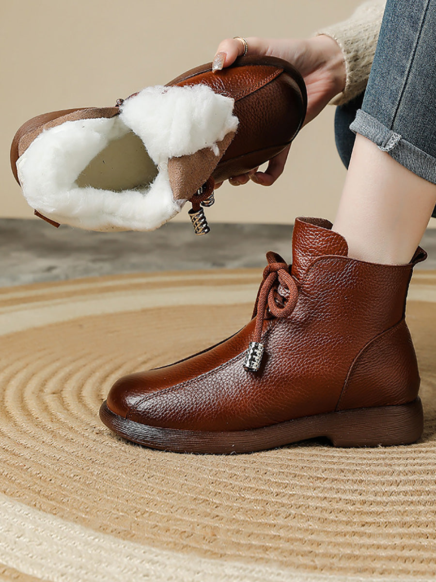 Dámské retro zimní kotníkové boty z pravé kůže na nízkém podpatku
