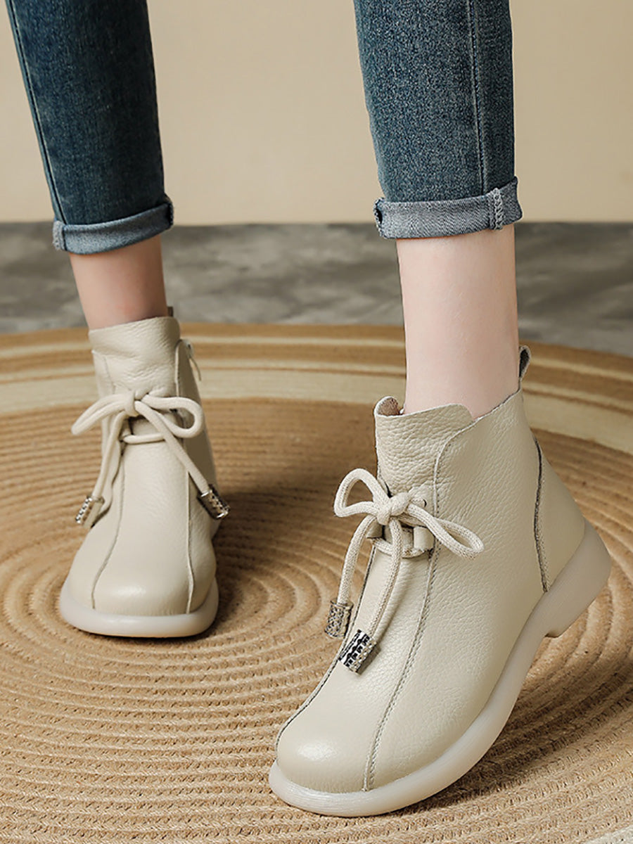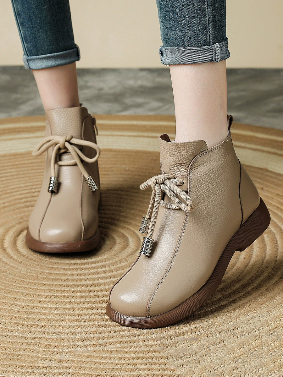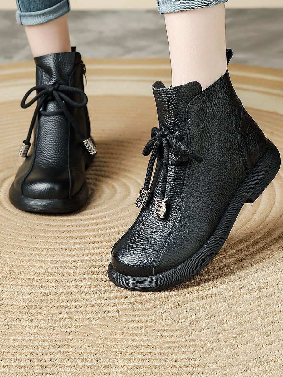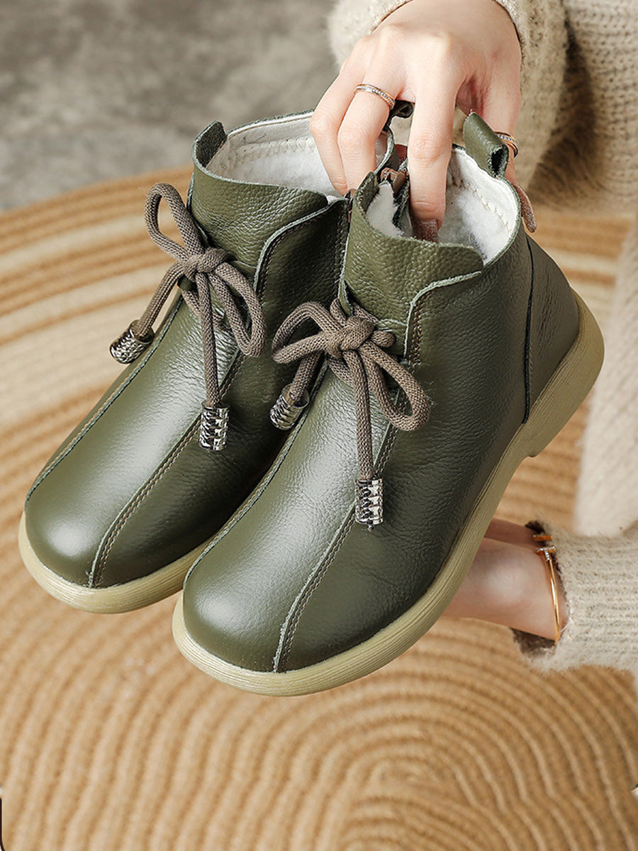 Dámské retro zimní kotníkové boty z pravé kůže na nízkém podpatku