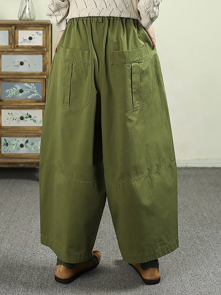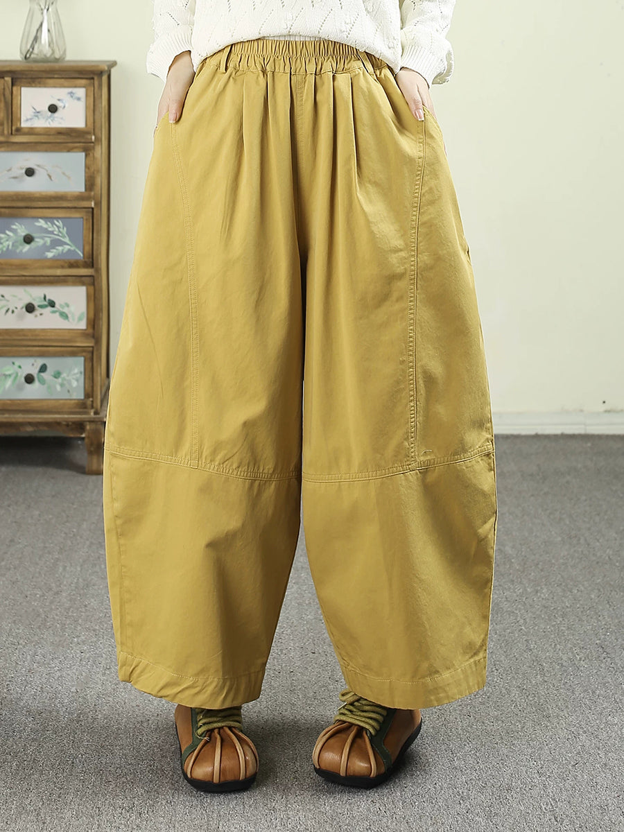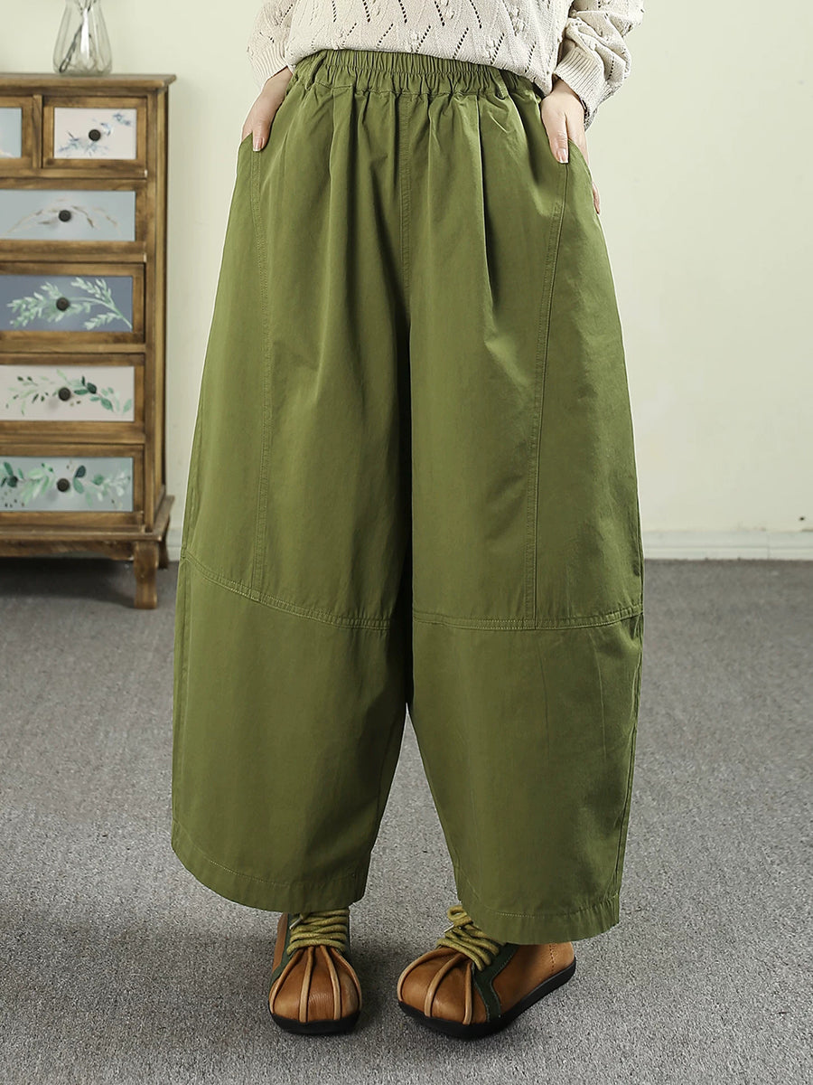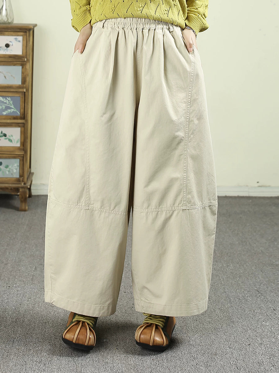 Dámské jarní ležérní bavlněné kalhoty s širokými nohavicemi v čisté barvě