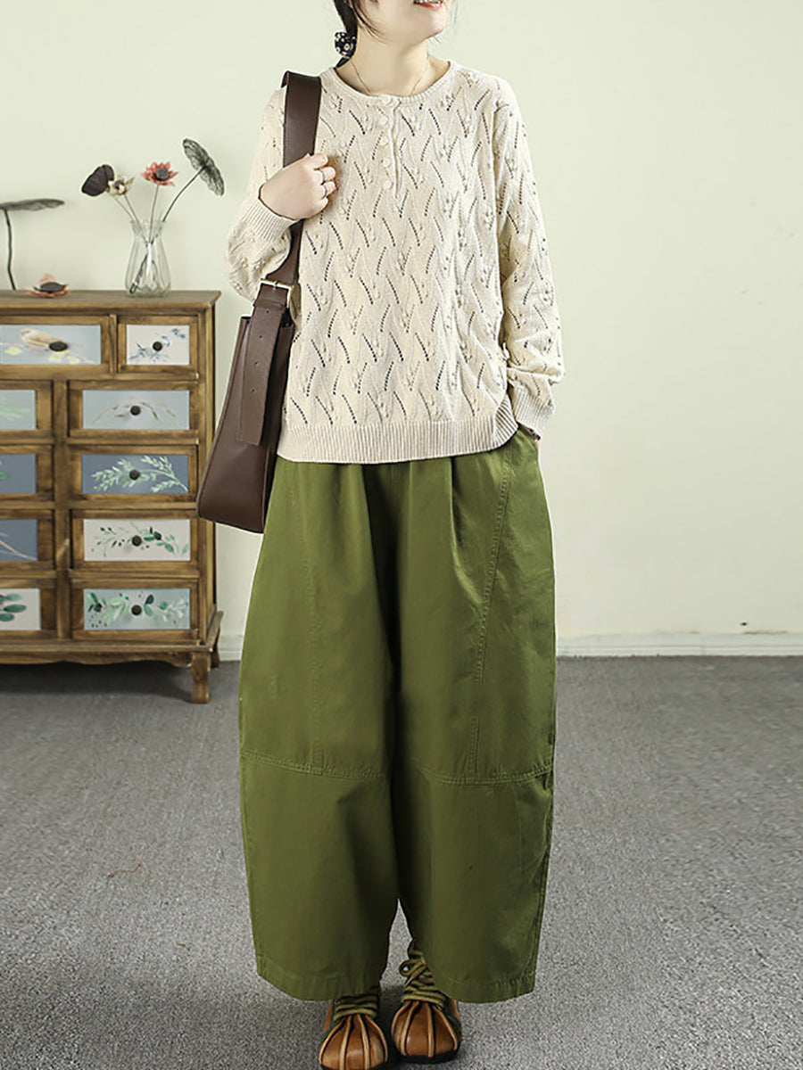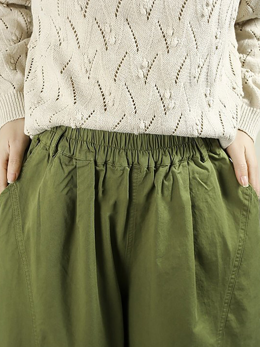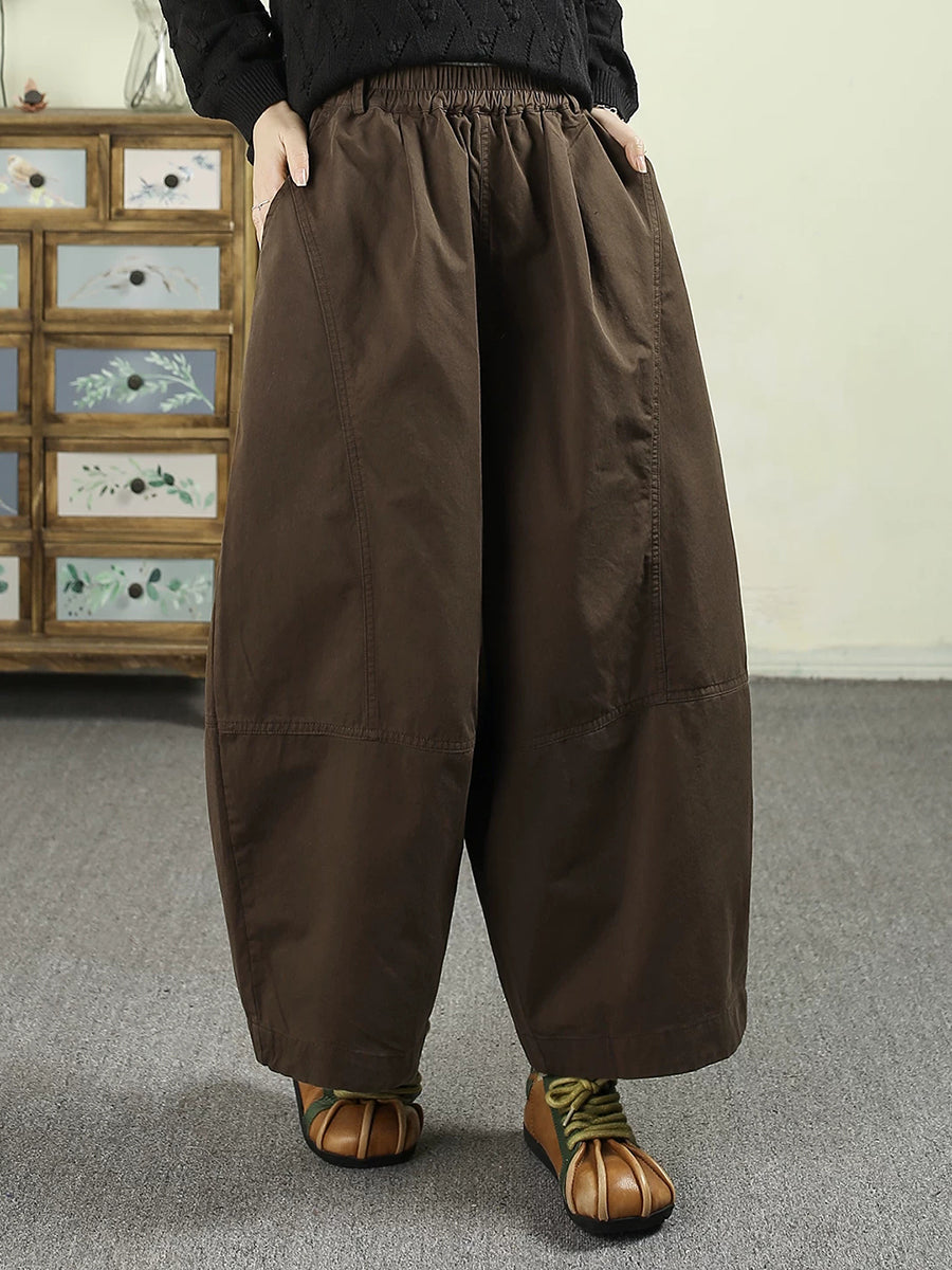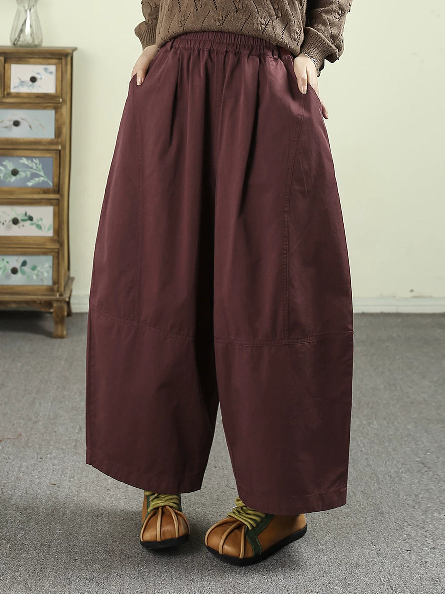 Dámské jarní ležérní bavlněné kalhoty s širokými nohavicemi v čisté barvě