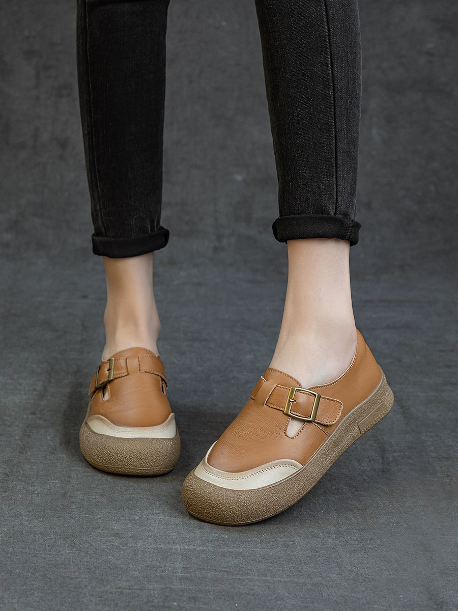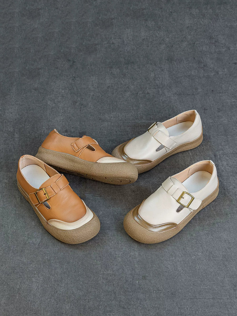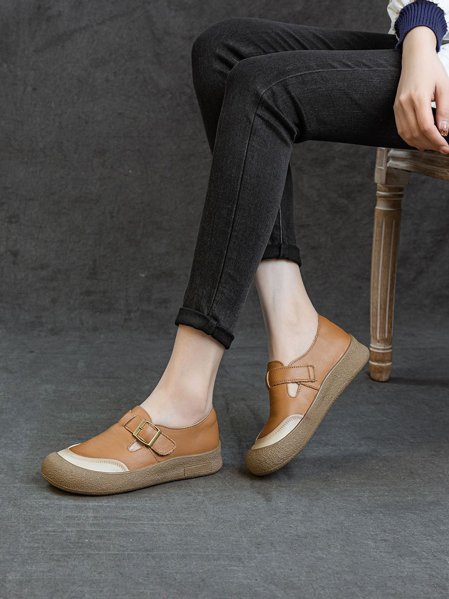 Dámské jarní barevné bloky z pravé kůže na ploché boty