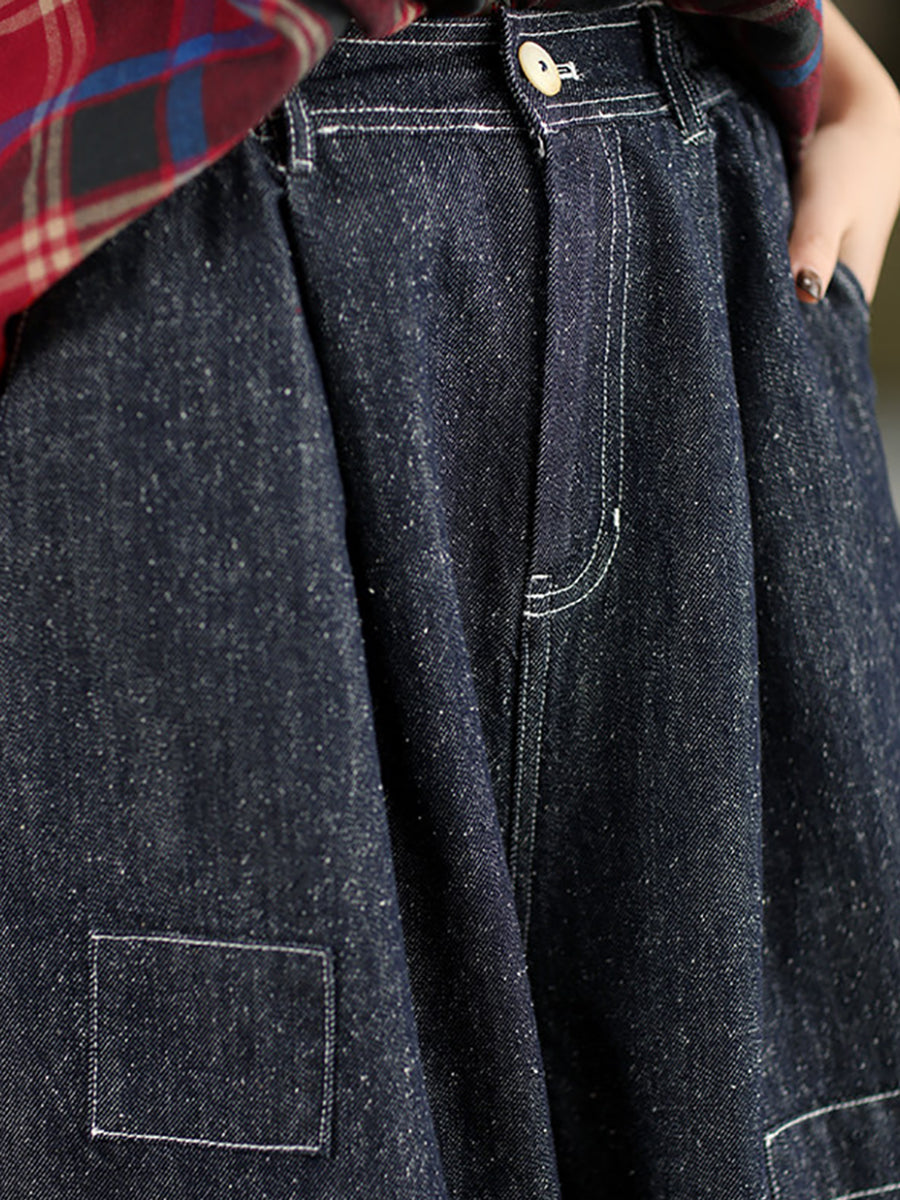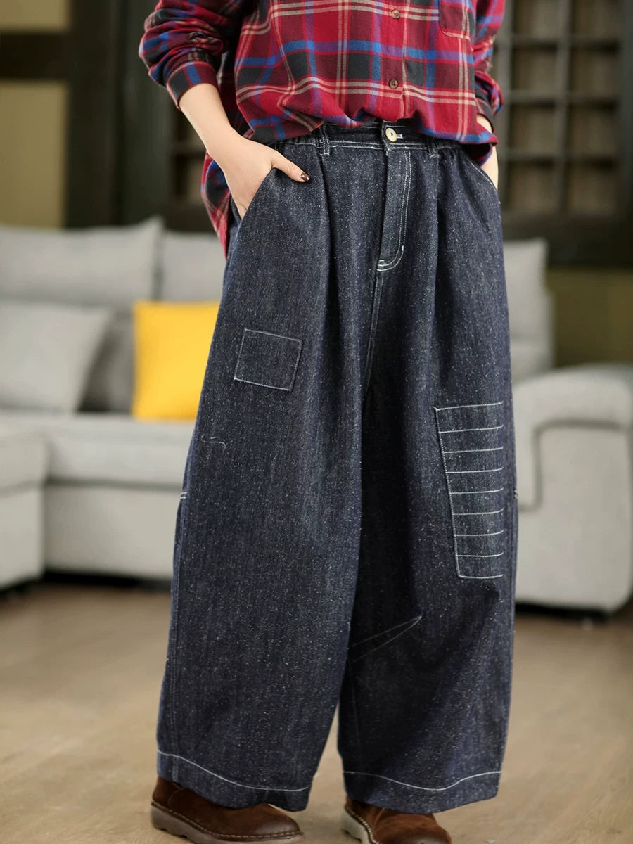 Dámské jarní vintage džínové kalhoty s širokými nohavicemi
