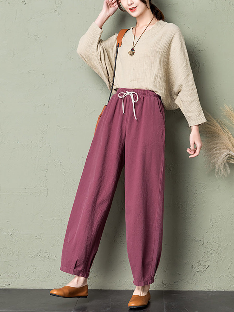Dámské letní ležérní lněné kalhotky v čistých barvách