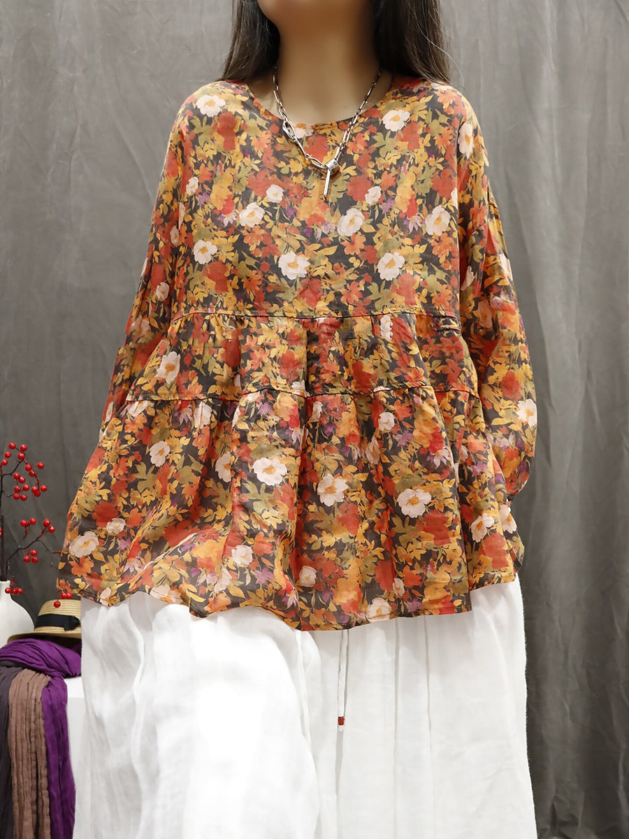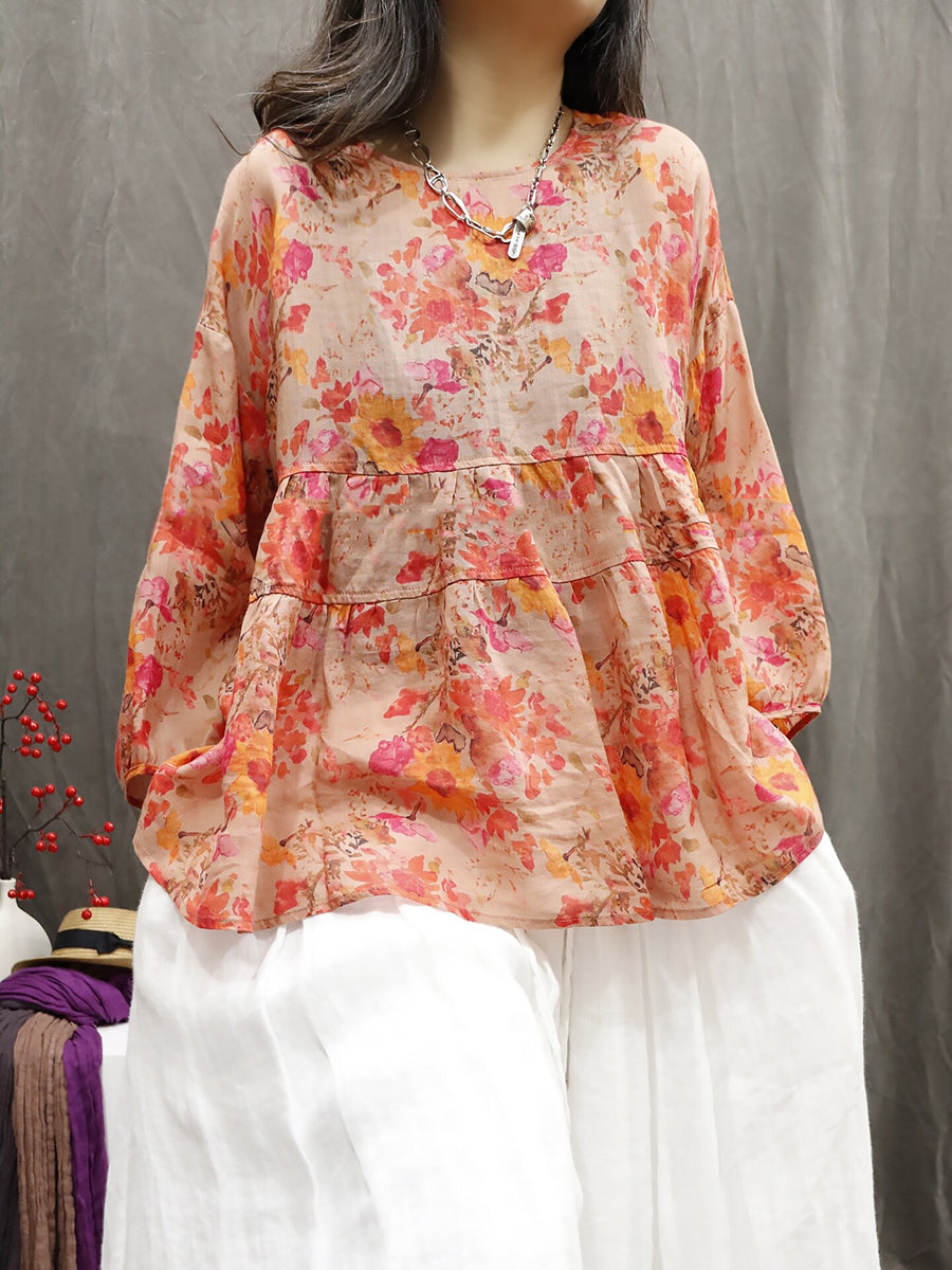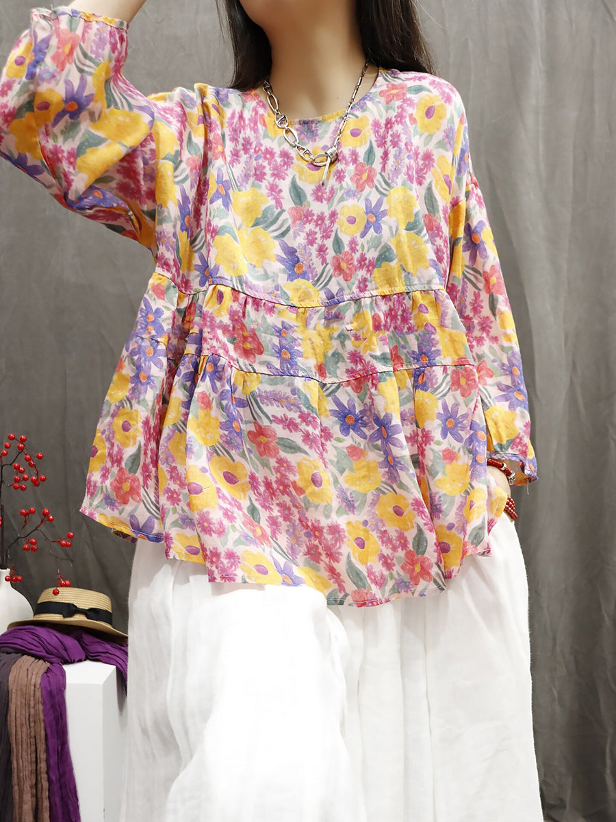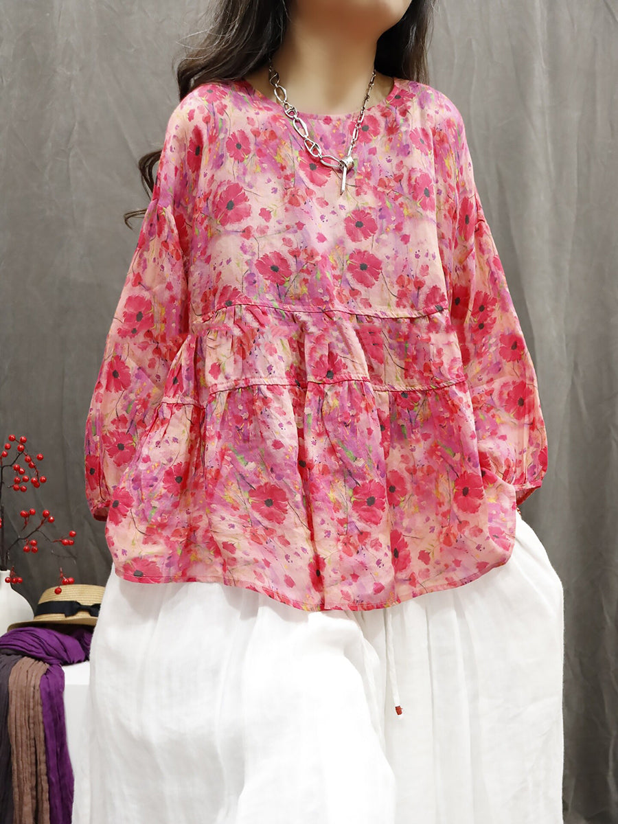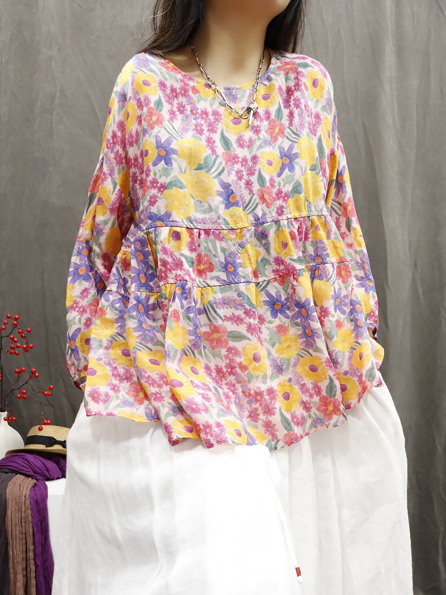 Dámská letní etnická květinová halenka ze 100% ramie