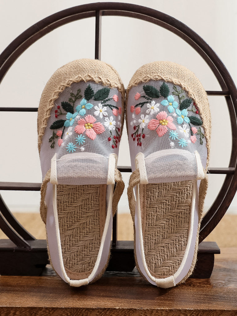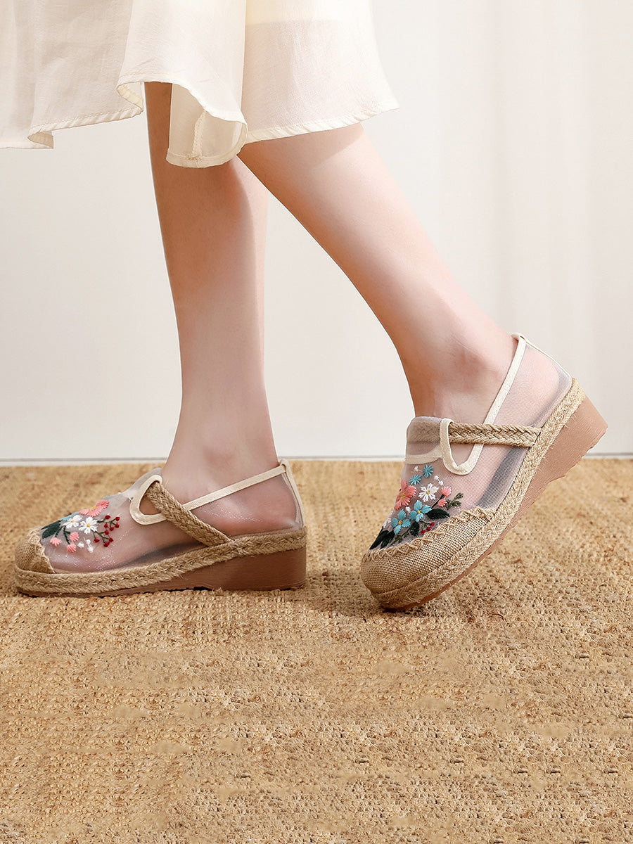 Dámské letní boty na platformě etnické květinové výšivky