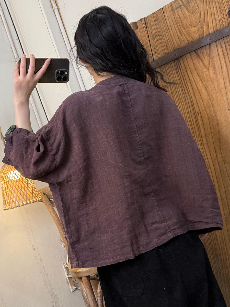 Dámské letní retro lněné košile s barevným knoflíkem do O-neck