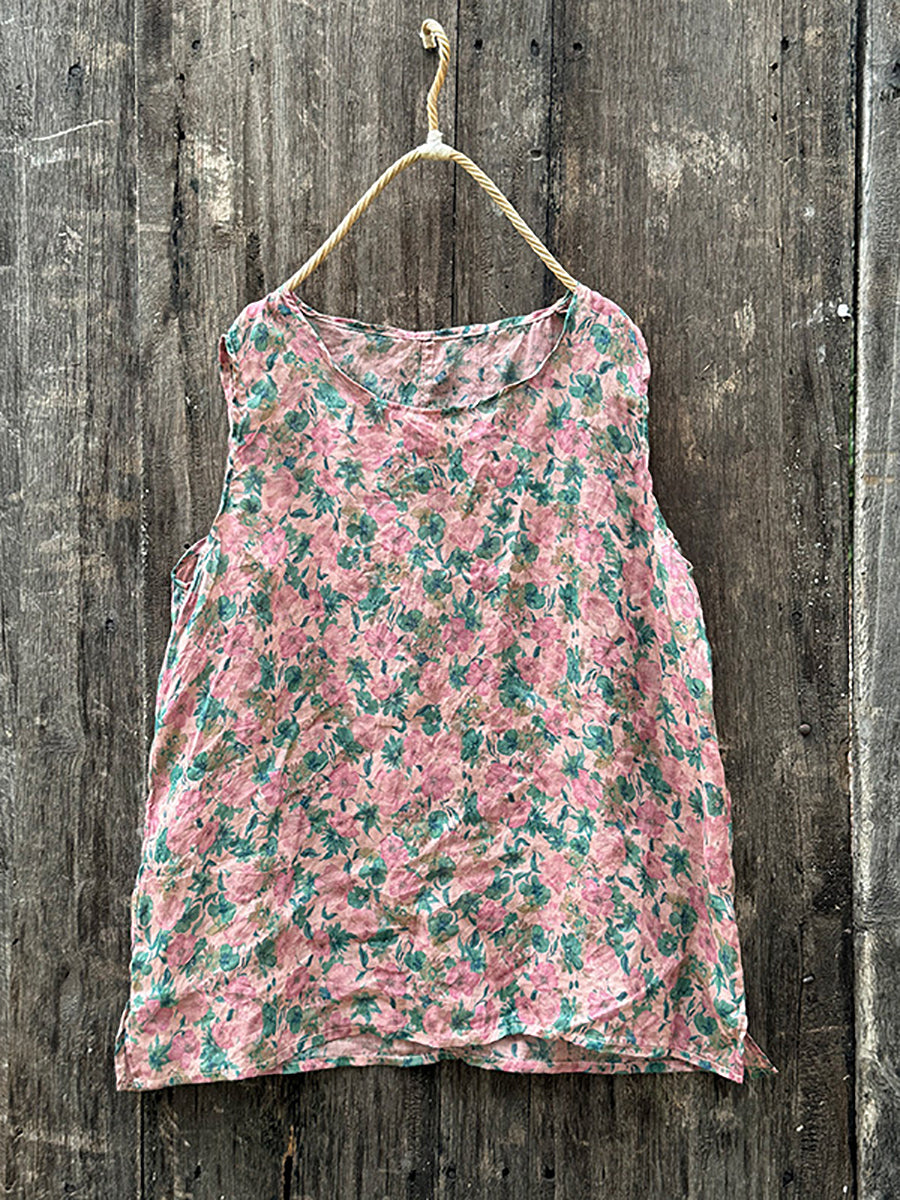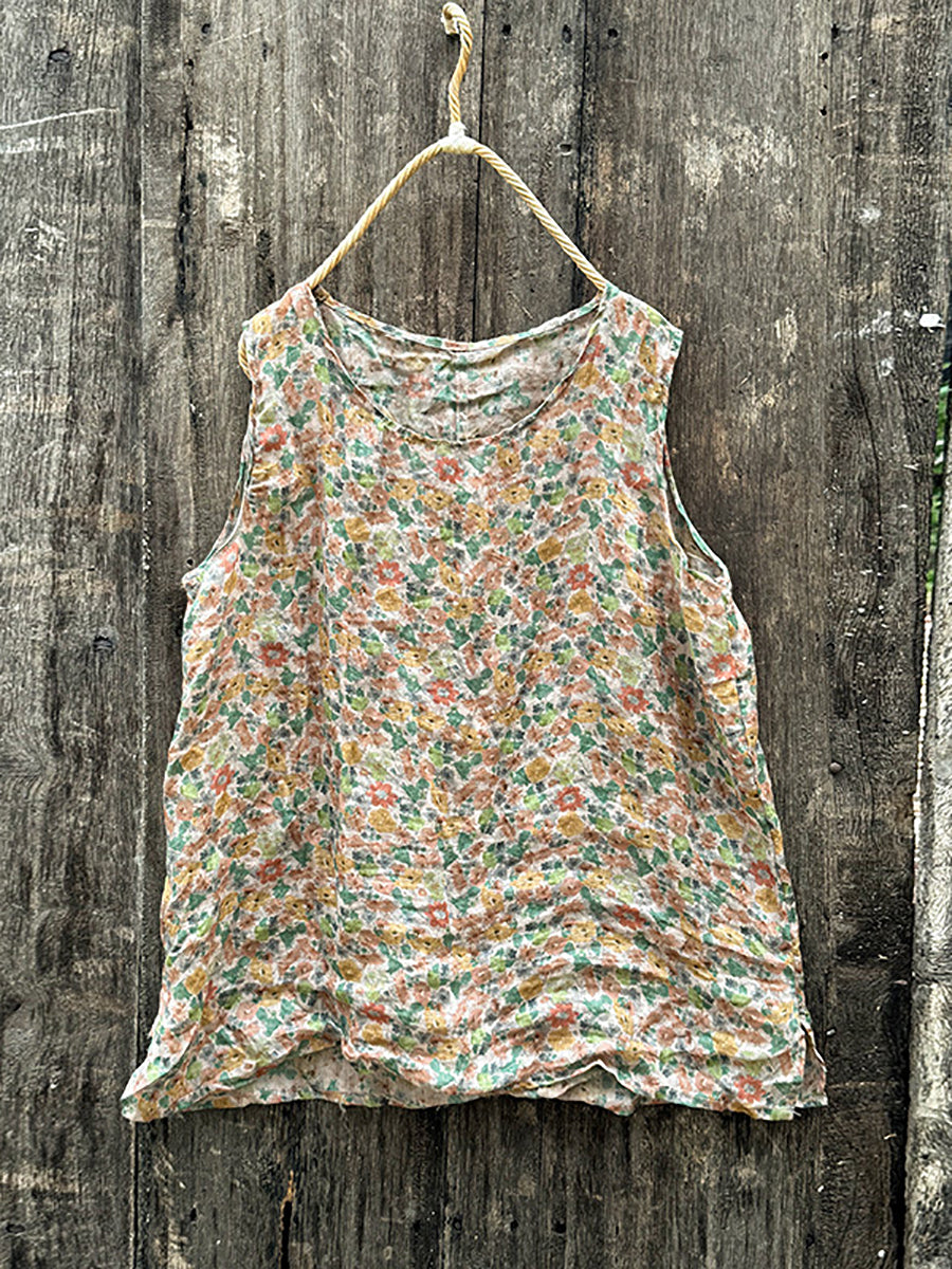 Dámská letní vintage květinová vesta s výstřihem do O-neck z ramie