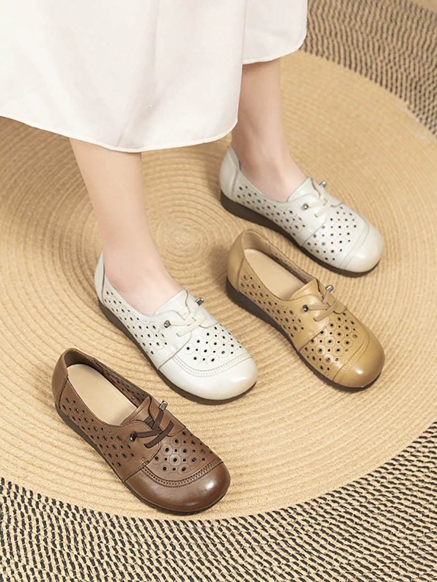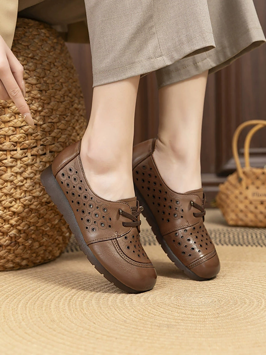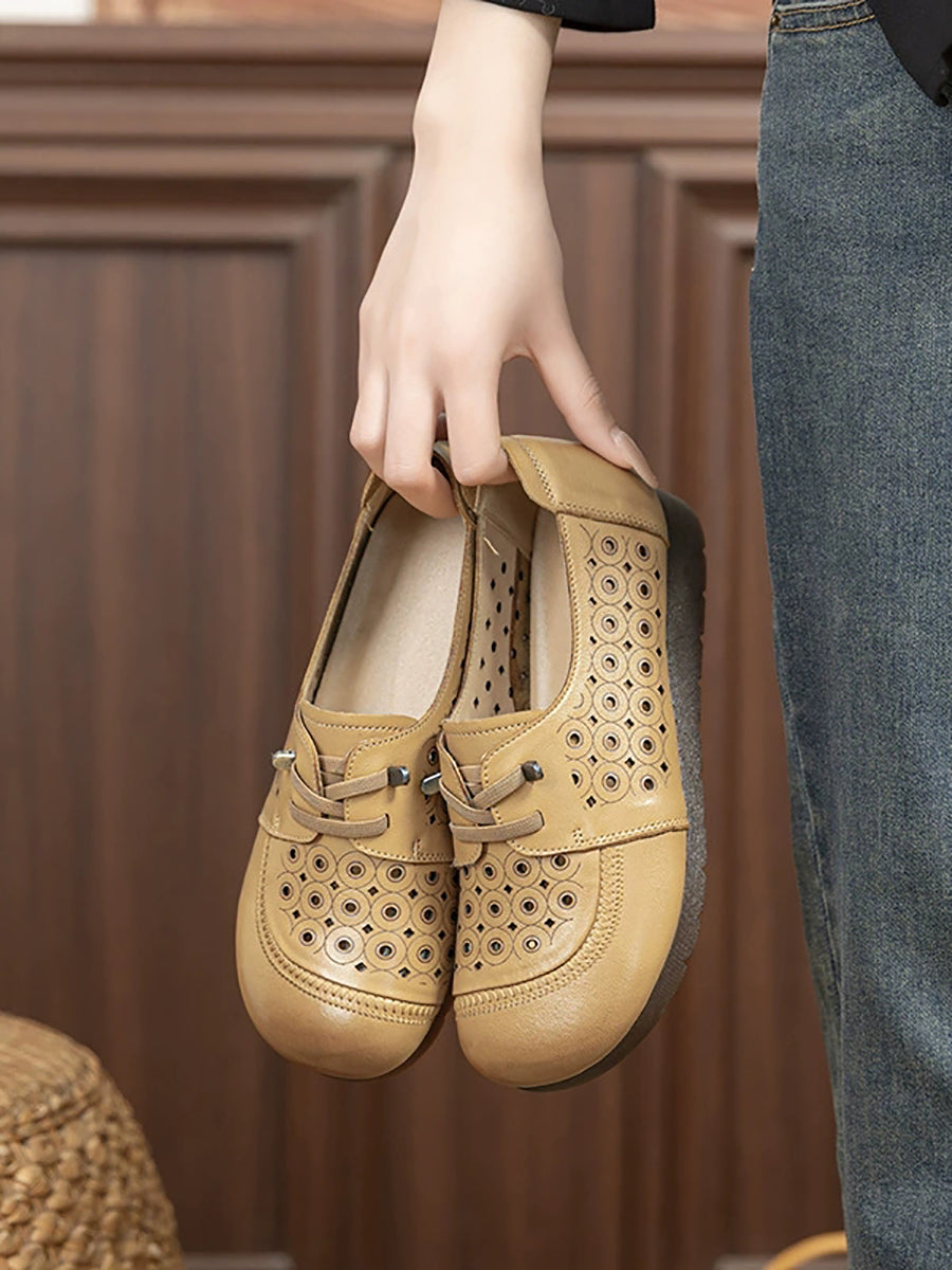 Dámské letní vintage boty z pravé kůže s otvorem
