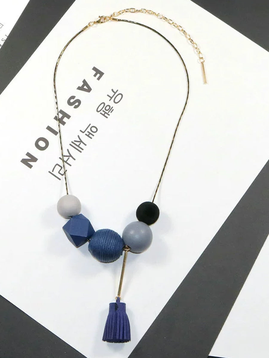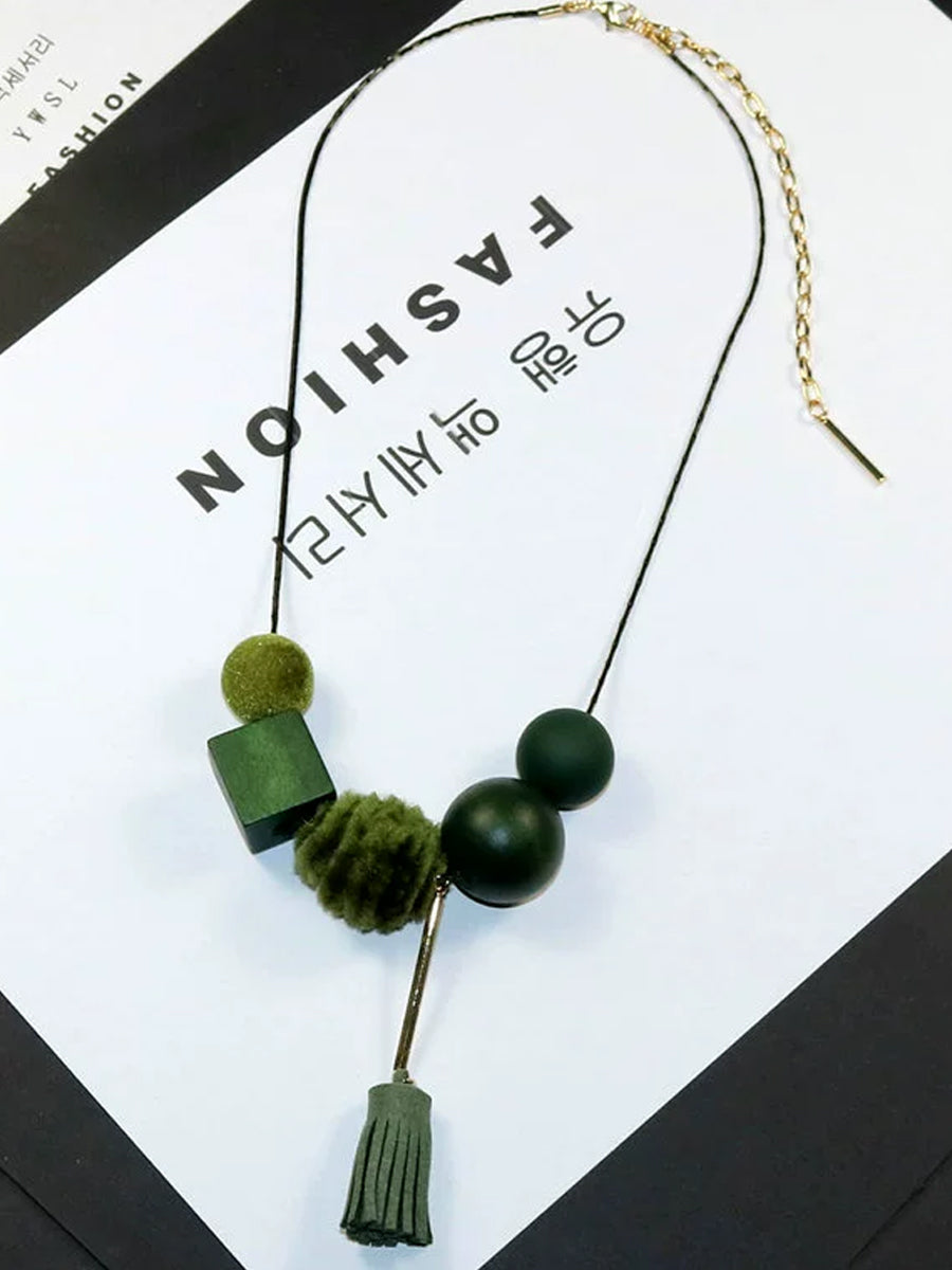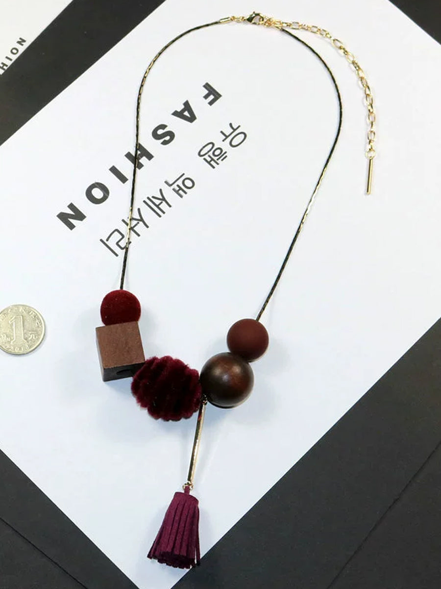 Dámský vintage náhrdelník z dřevěných kuliček se slitinou