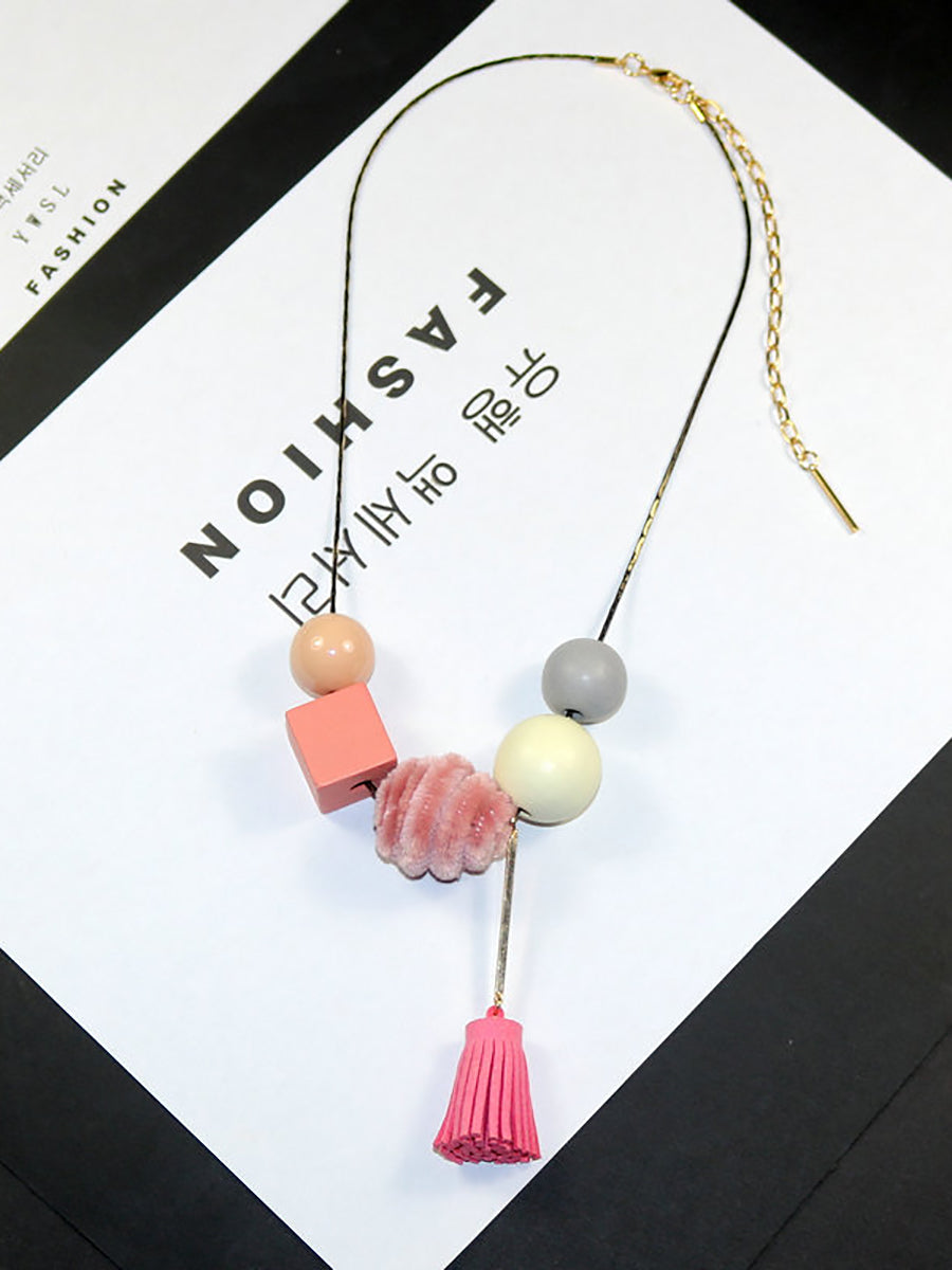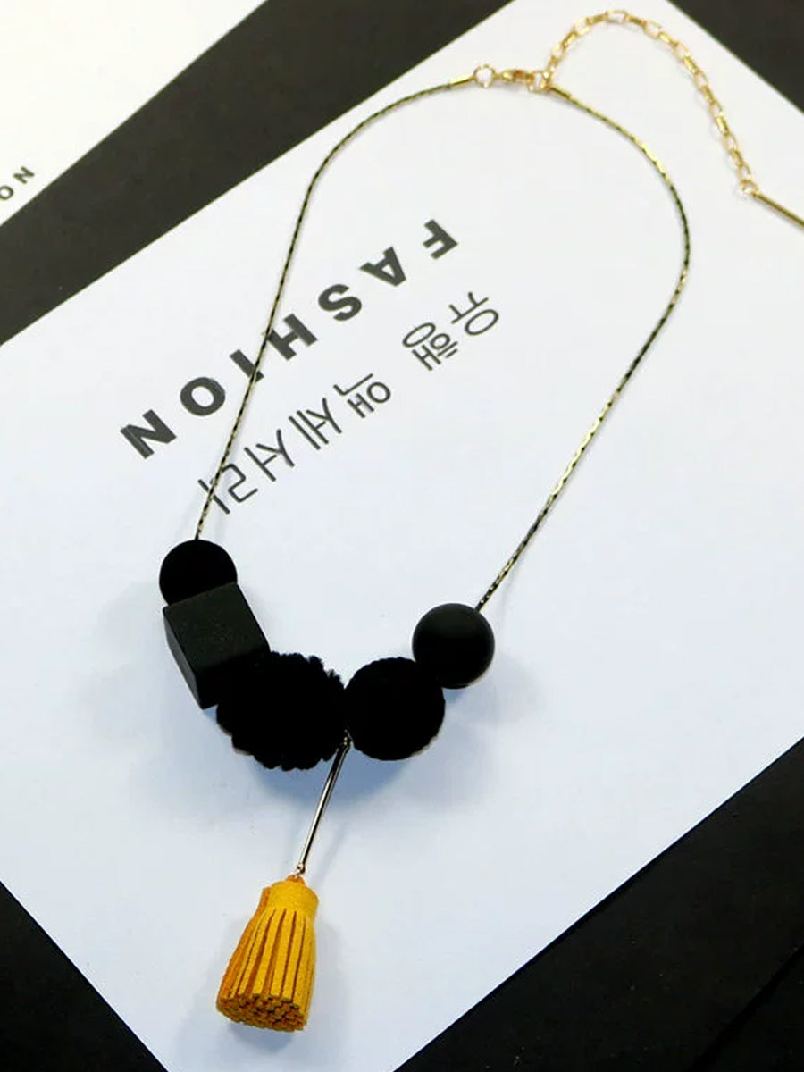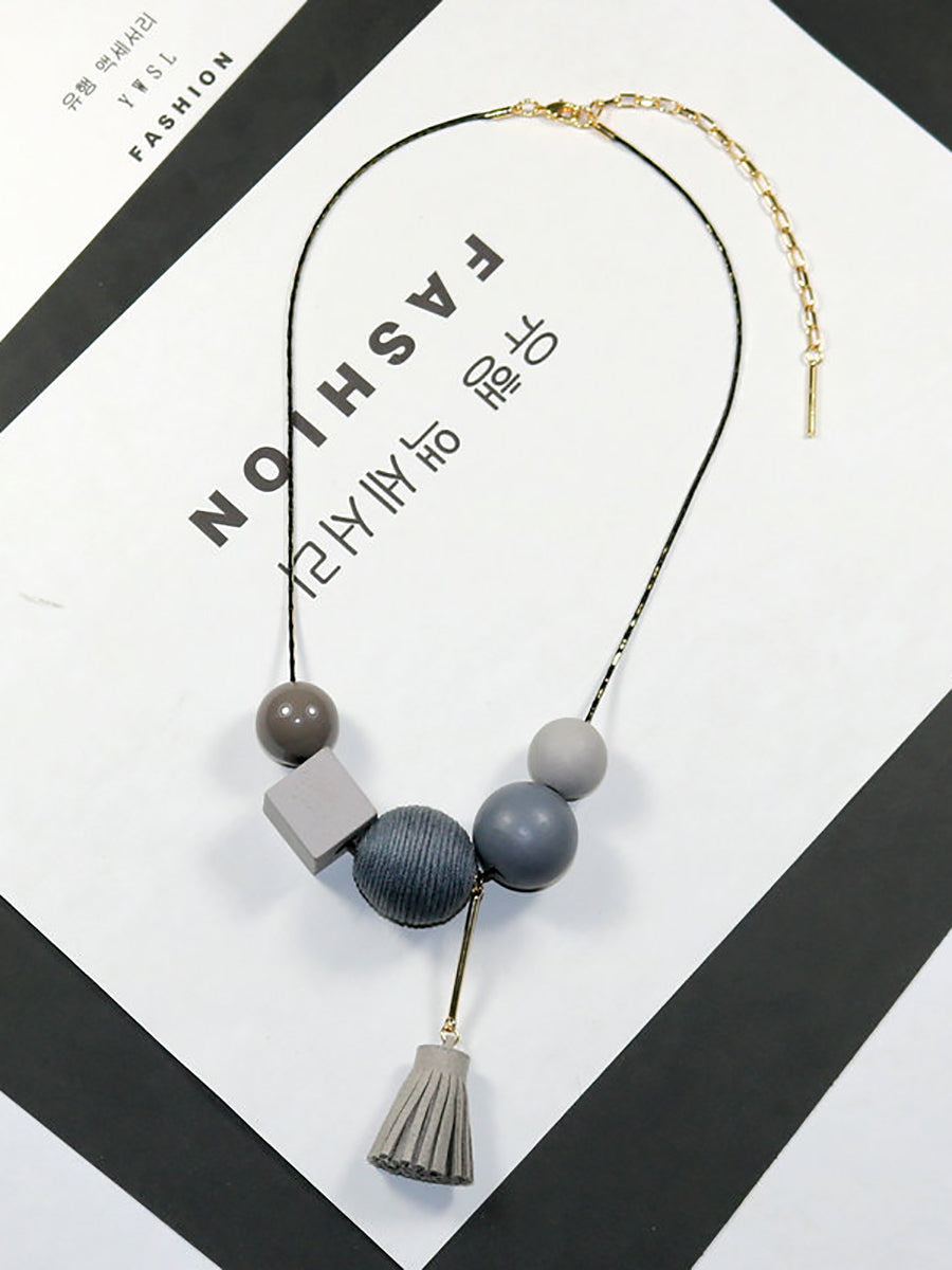 Dámský vintage náhrdelník z dřevěných kuliček se slitinou