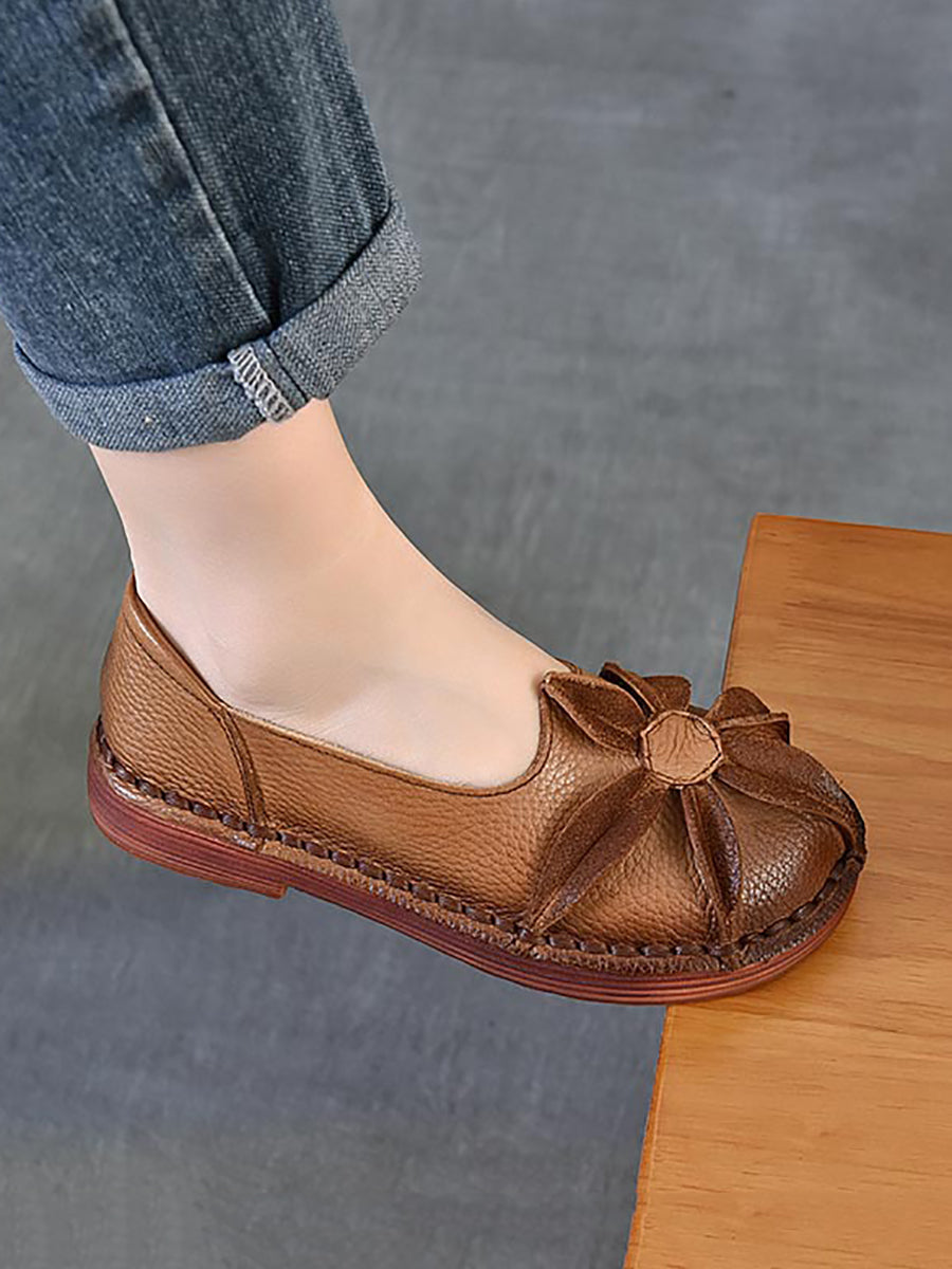 Dámské vintage boty z pravé kůže s květinovým vzorem na nízkém podpatku