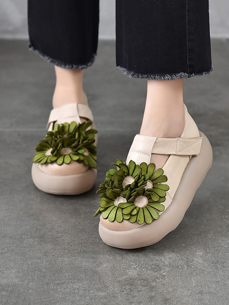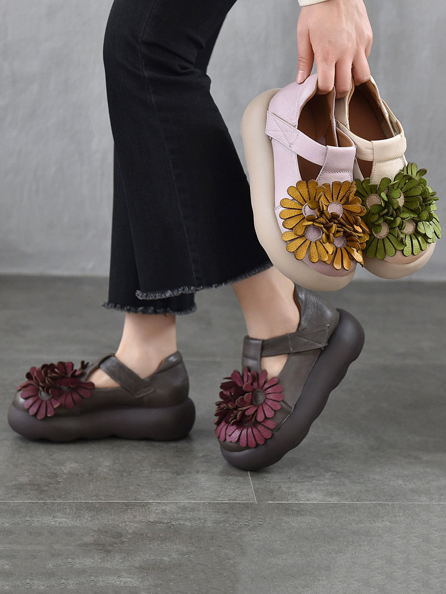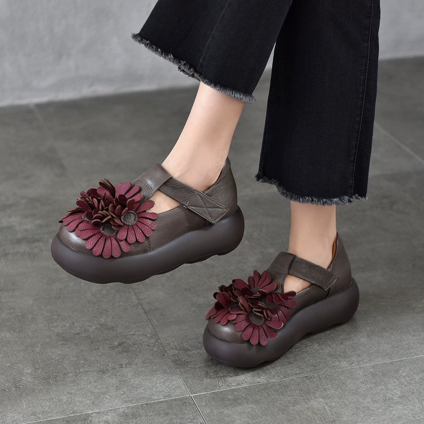 Dámské vintage boty na platformě z pravé kůže s květinovým vzorem