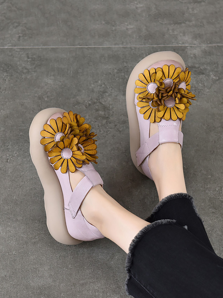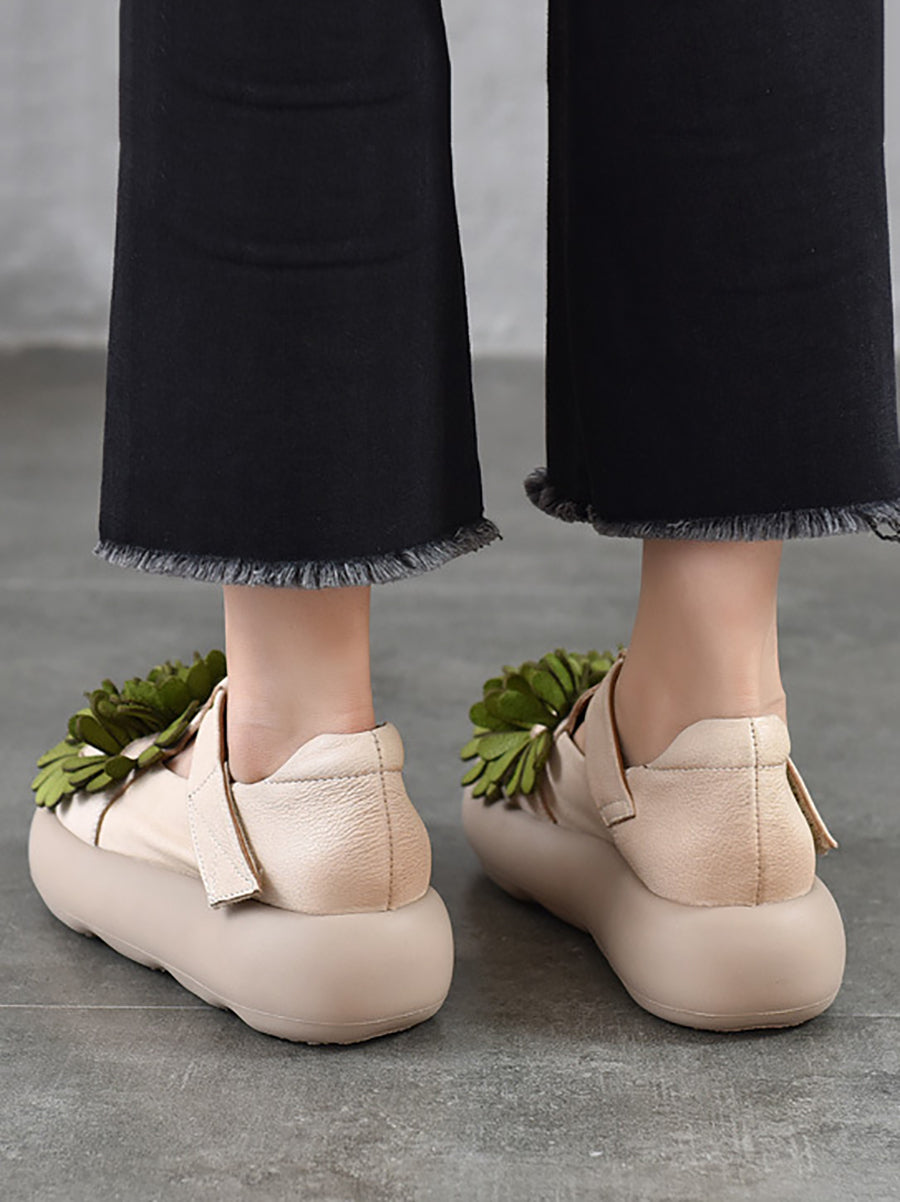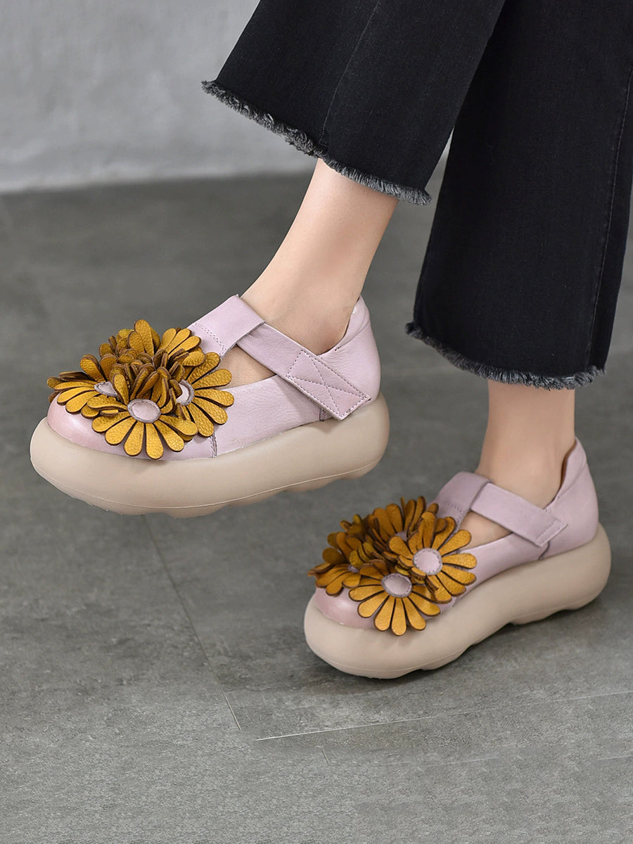 Dámské vintage boty na platformě z pravé kůže s květinovým vzorem