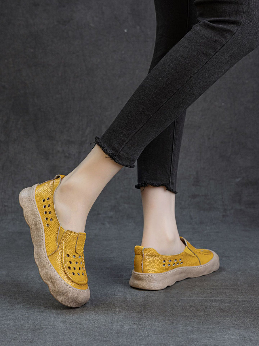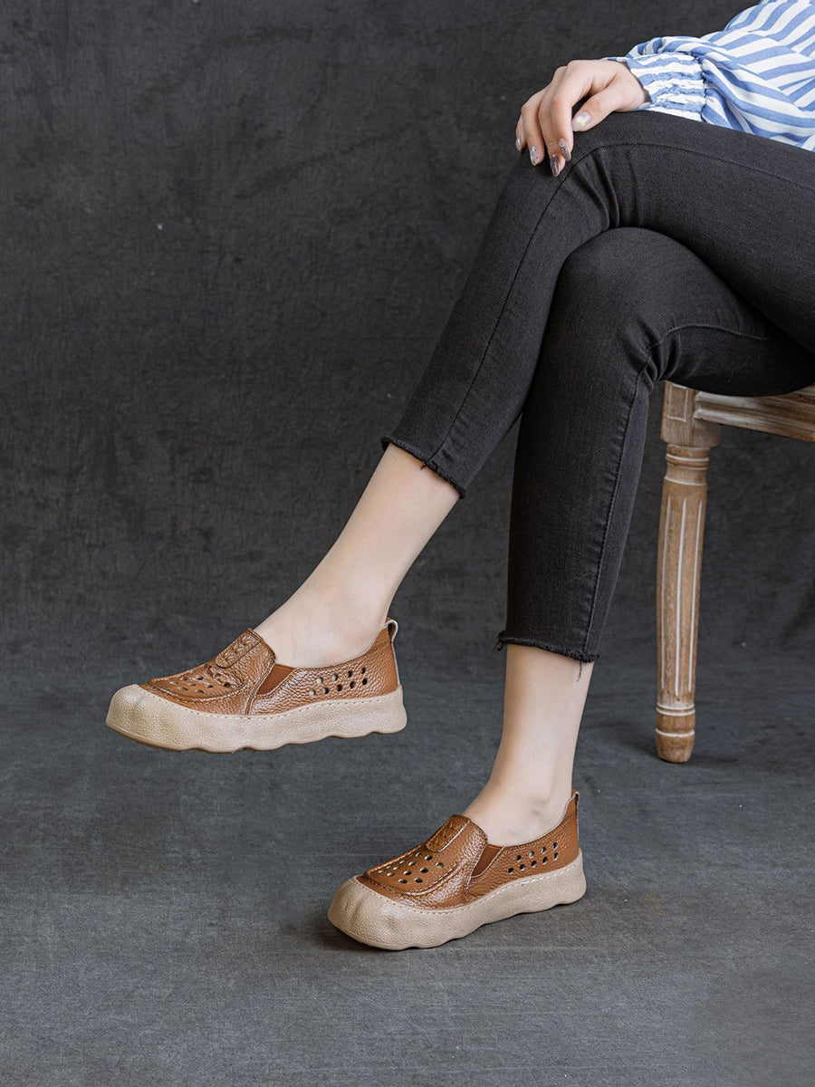 Dámské vintage kožené sandály s otvorem na ploché podrážce