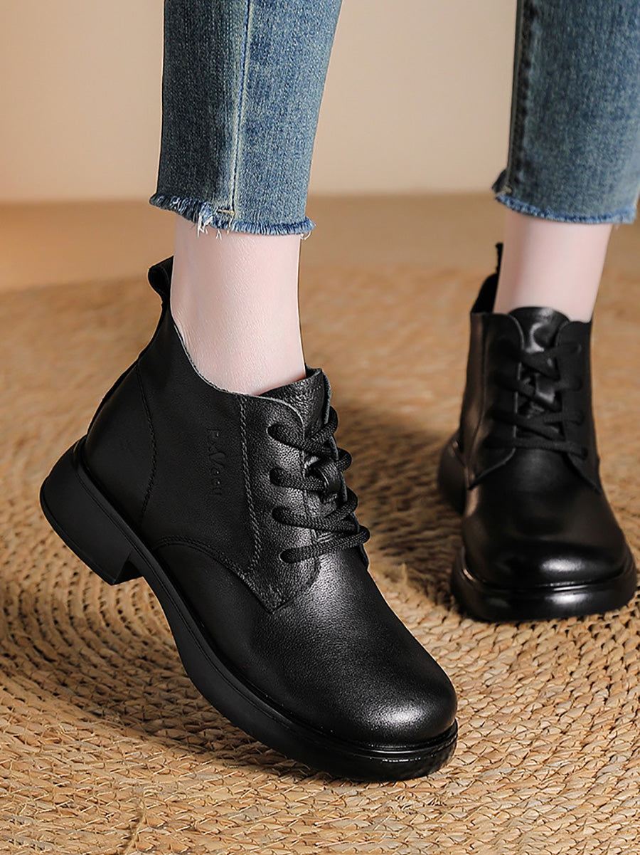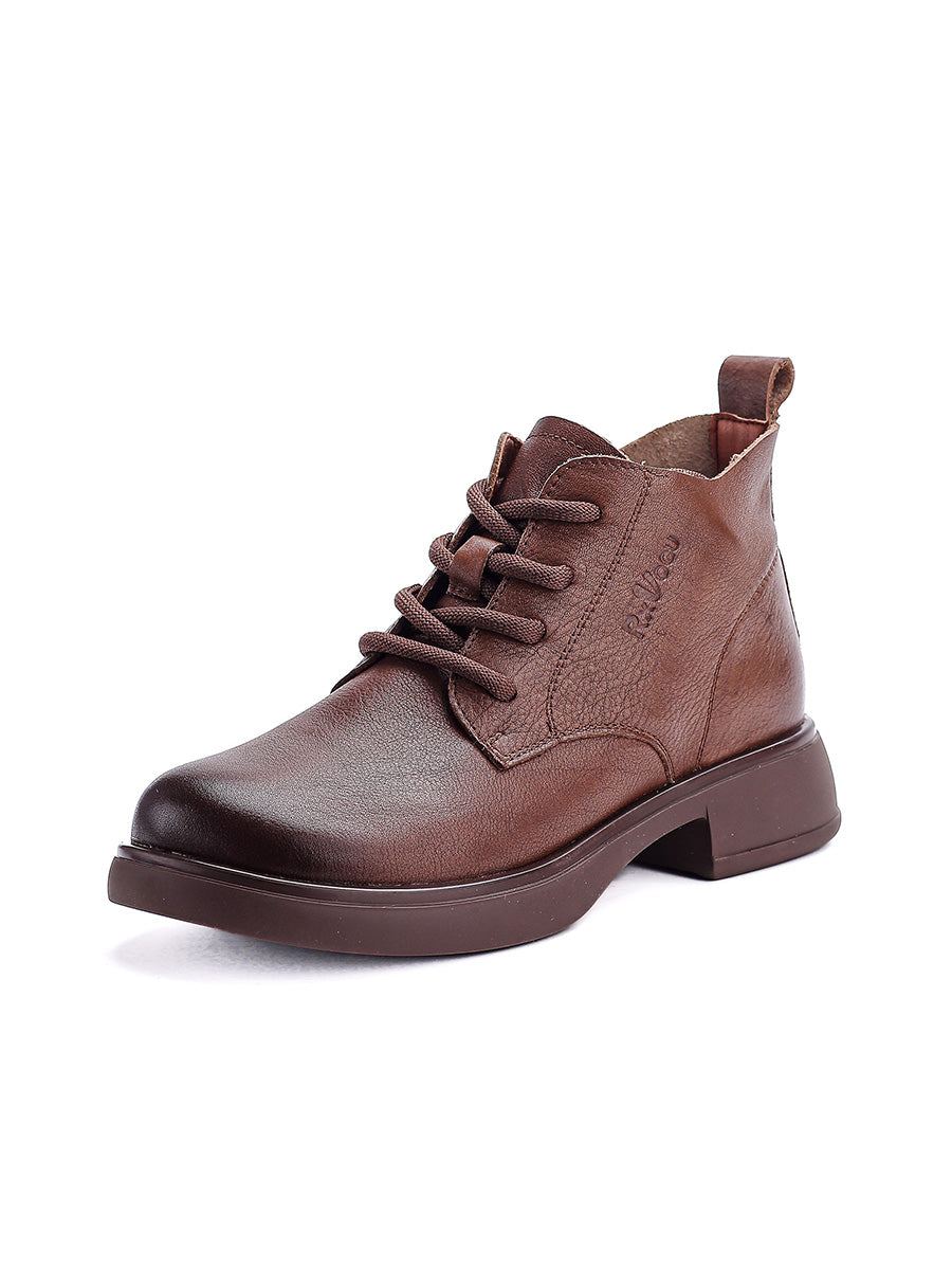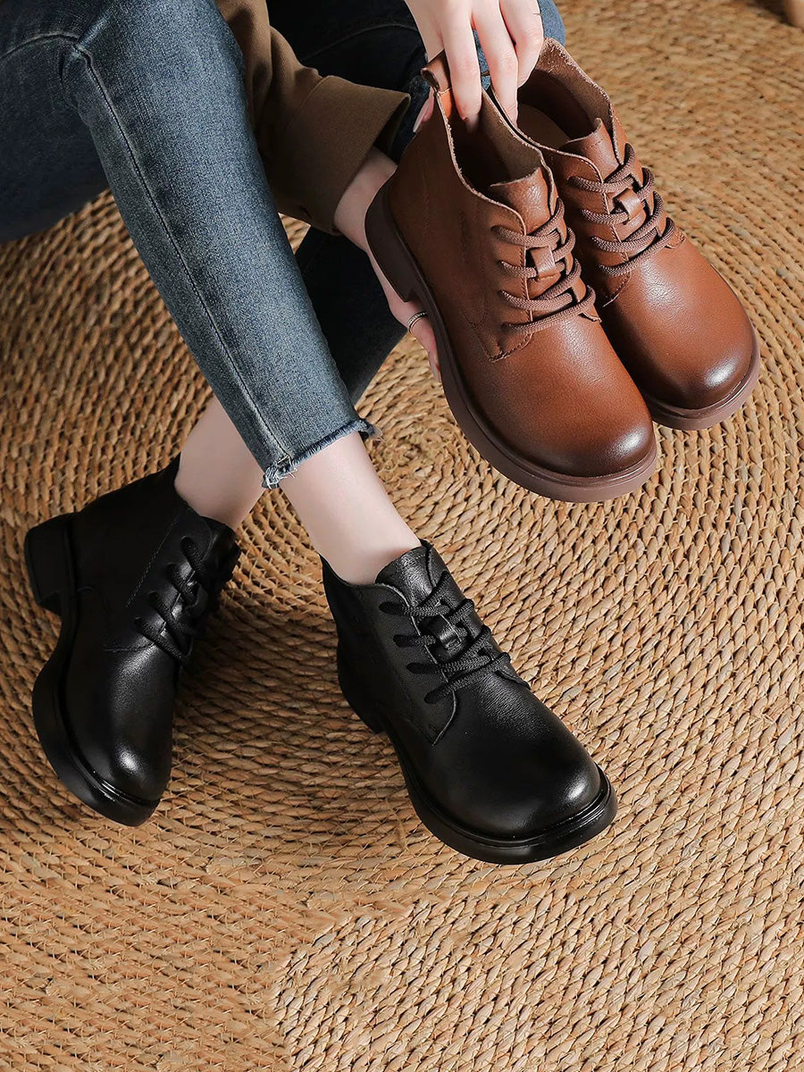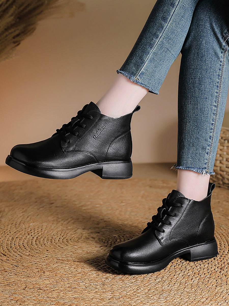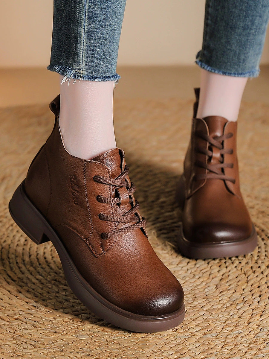 Dámské vintage kotníkové boty z pravé kůže na nízkém podpatku