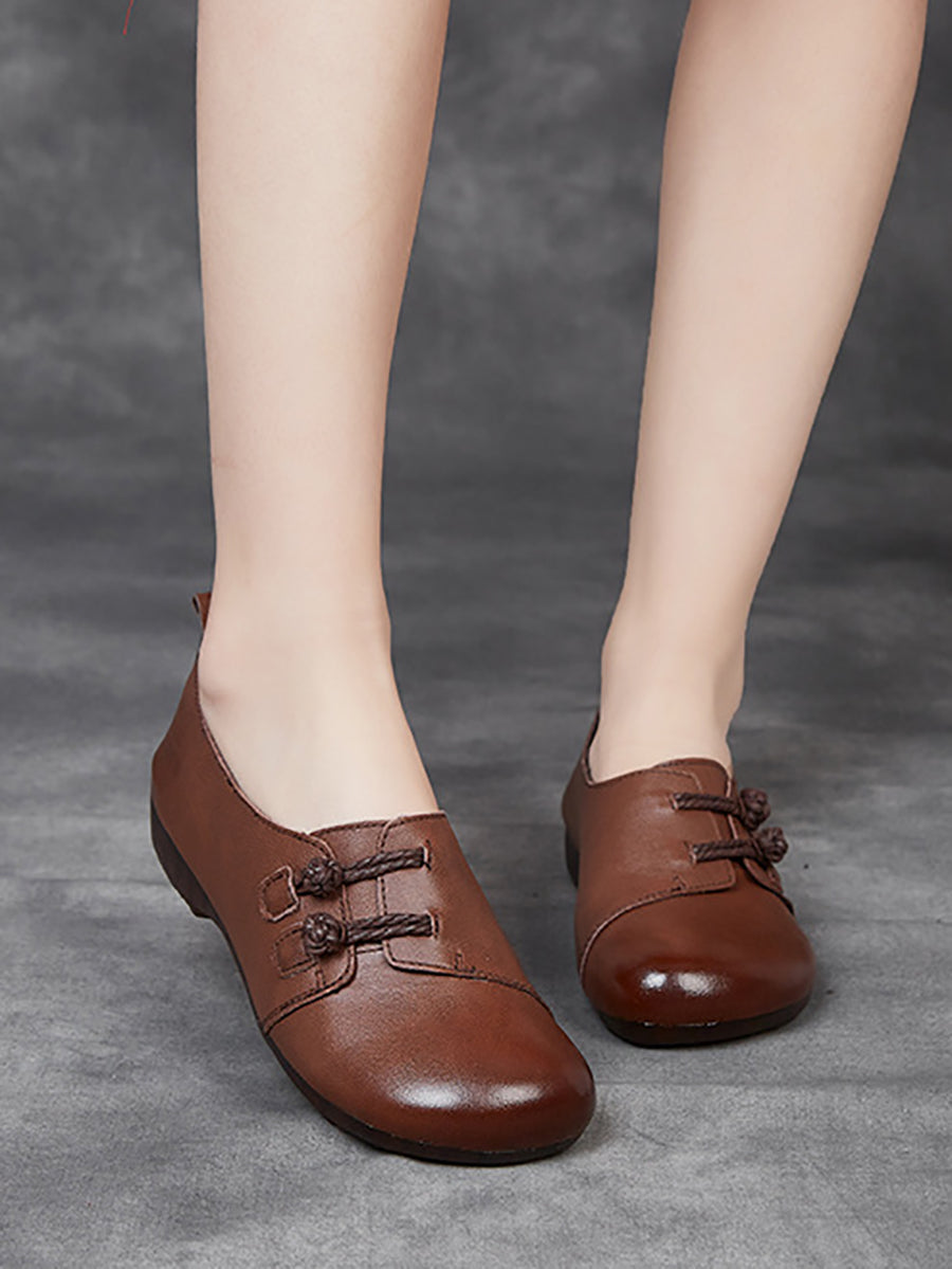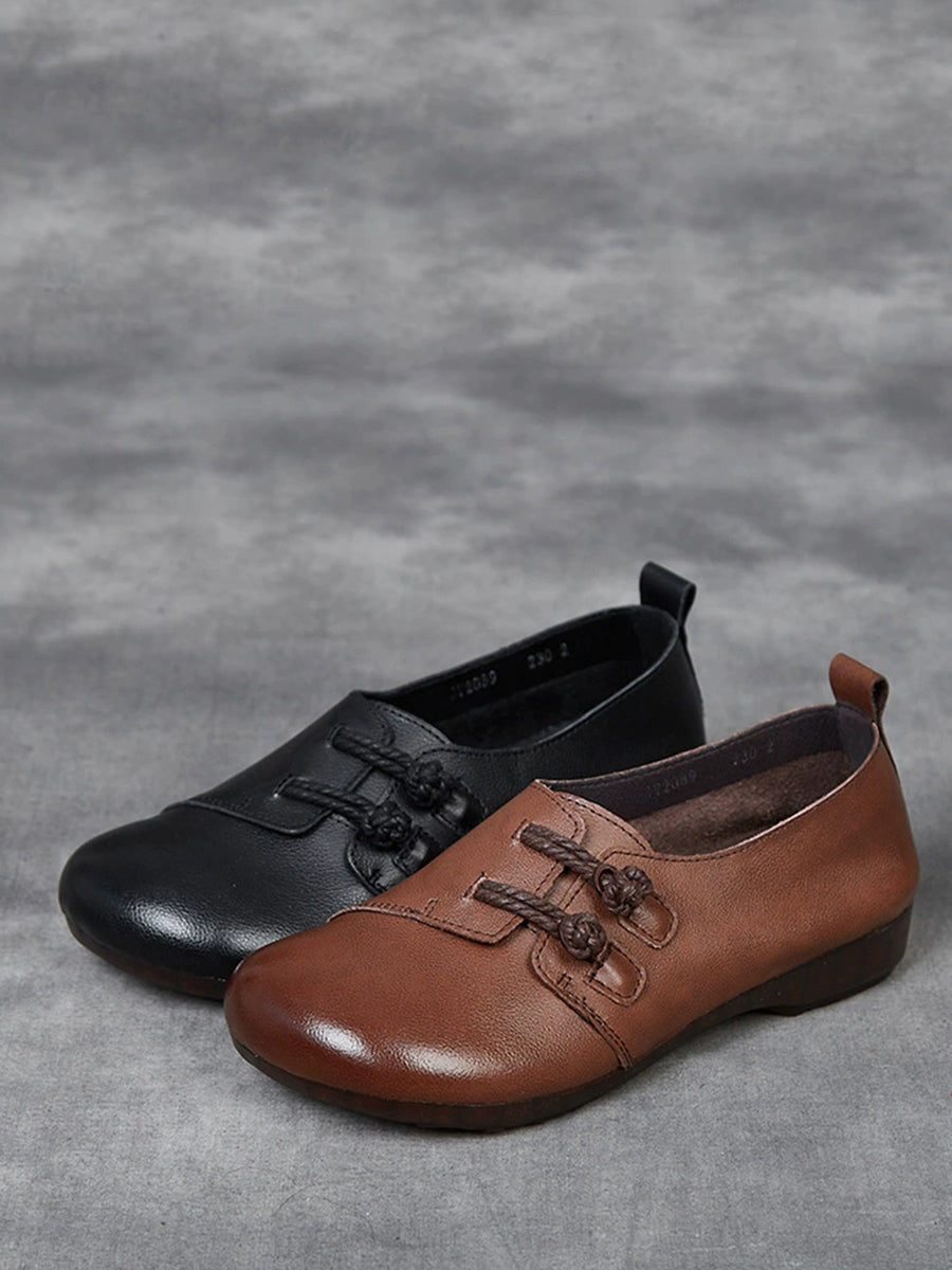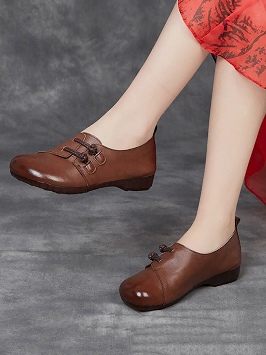 Dámské vintage boty z pravé kůže na nízkém podpatku