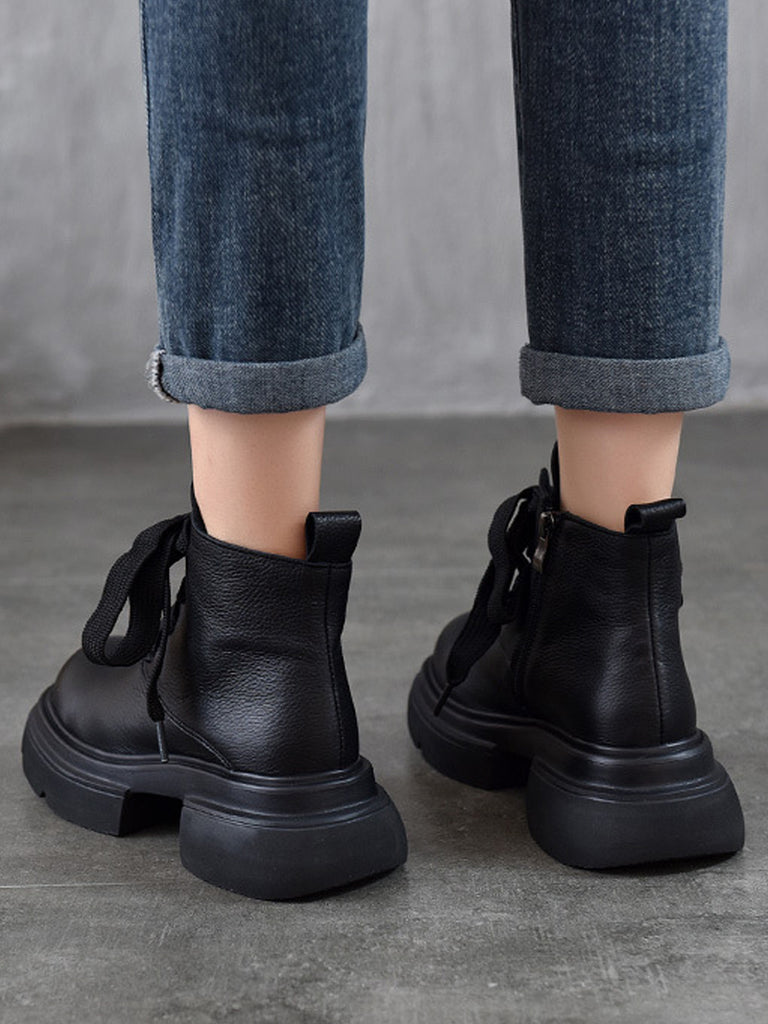 Dámské vintage kožené boty na platformě s páskem