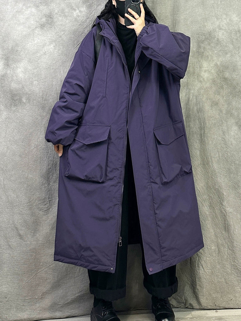 Dámský zimní ležérní čistě barevný prošívaný kabát s kapucí