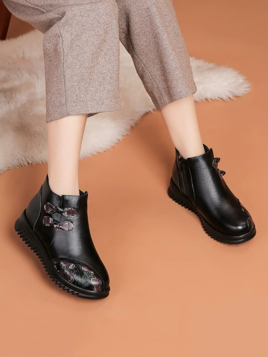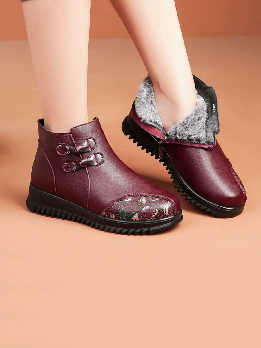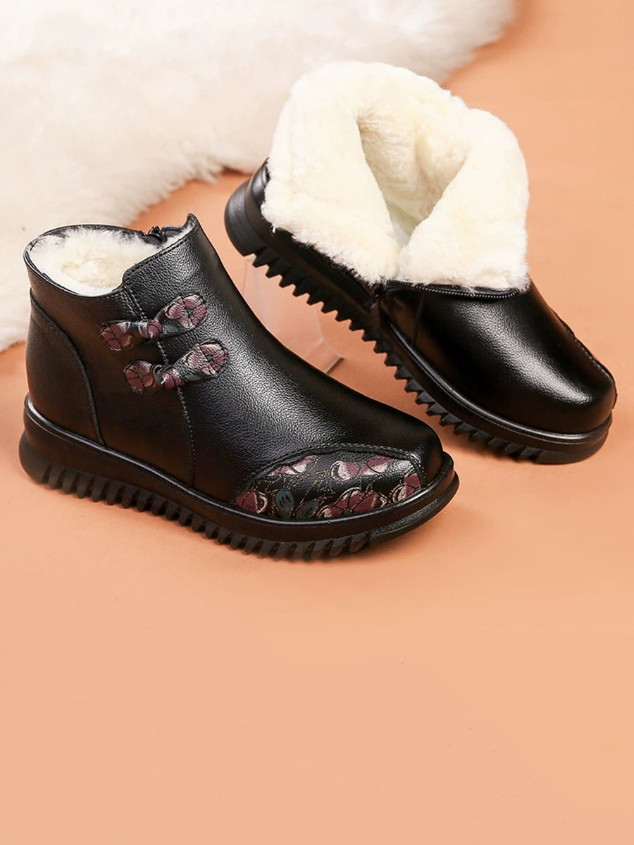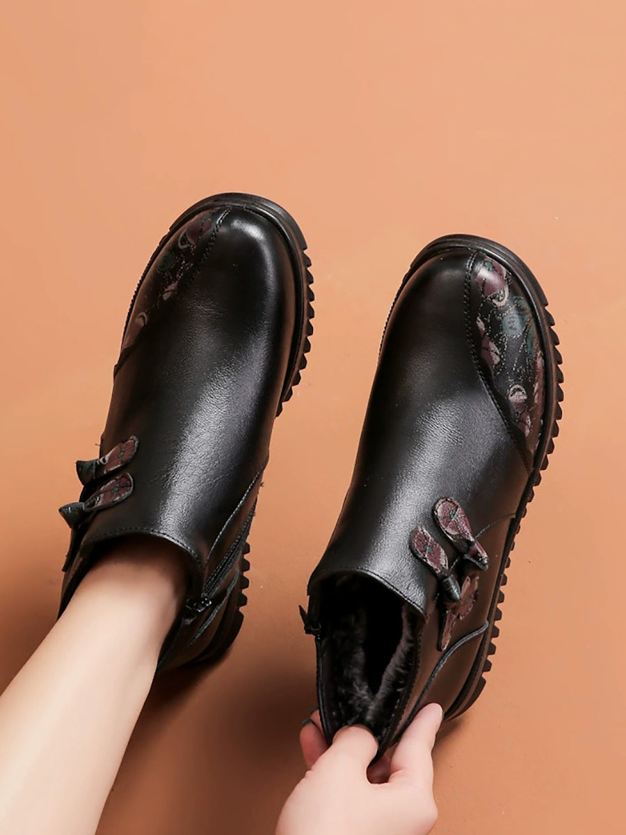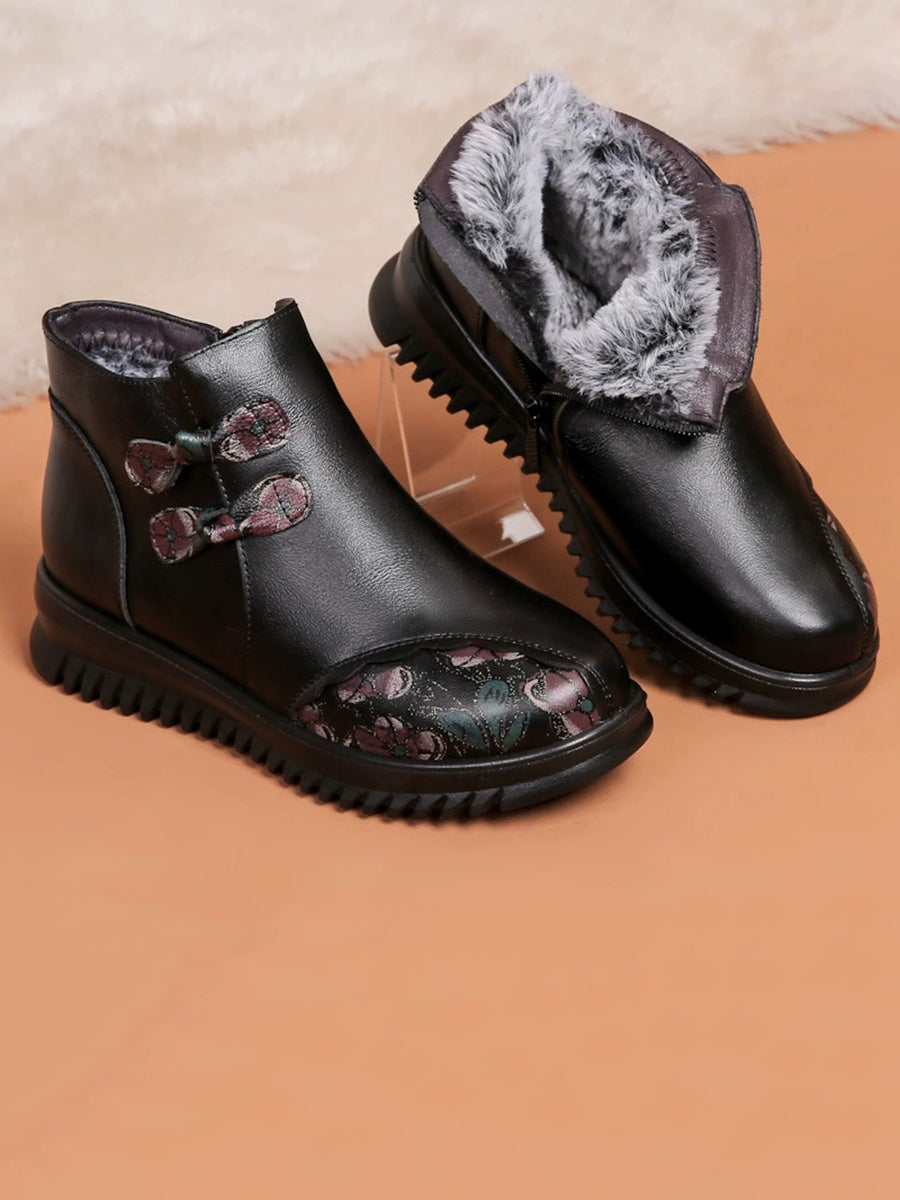Dámské zimní etnické kožené boty s flísovou podšívkou
