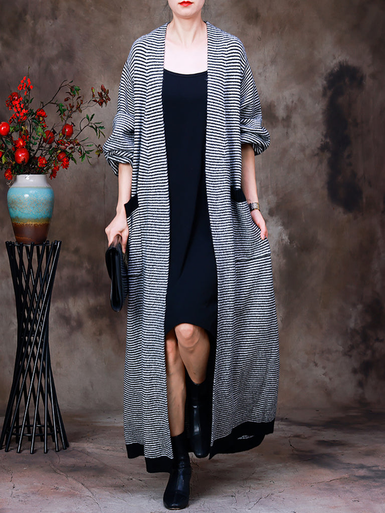Ženy podzimní ležérní pruhovaný kabát