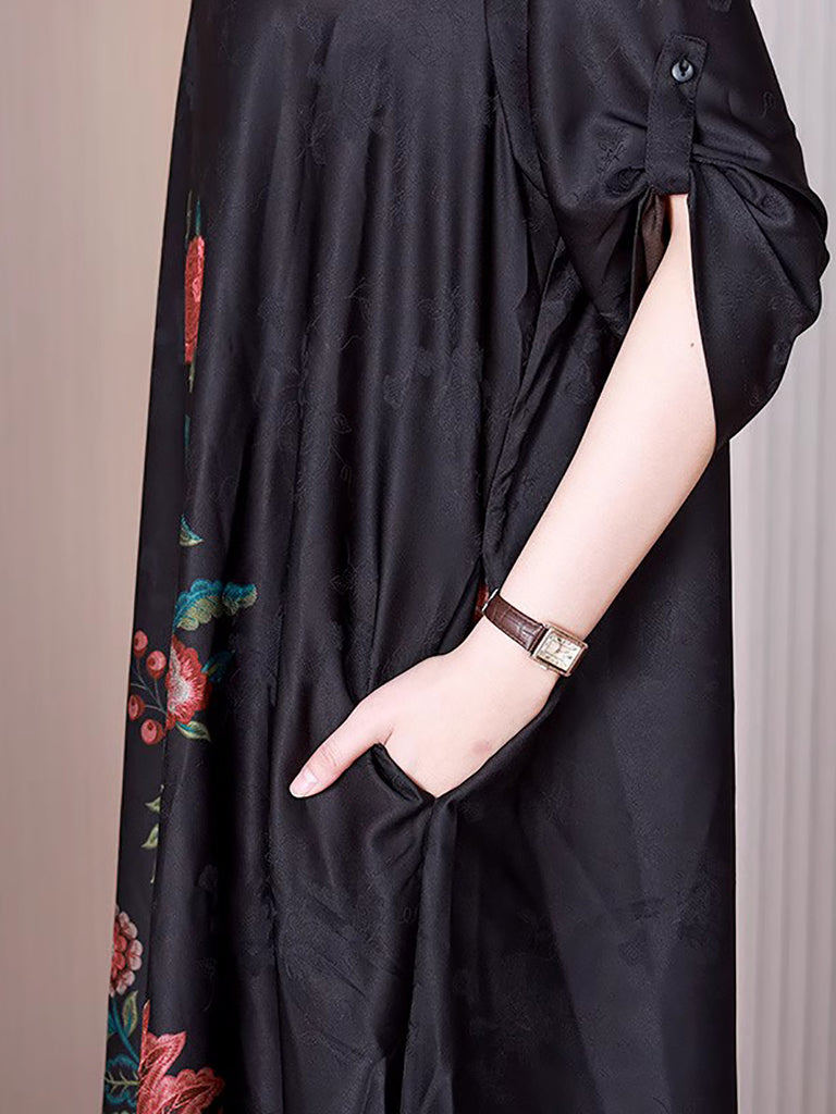 Ženy větší velikosti Etnické volné šaty ve tvaru A s květinami