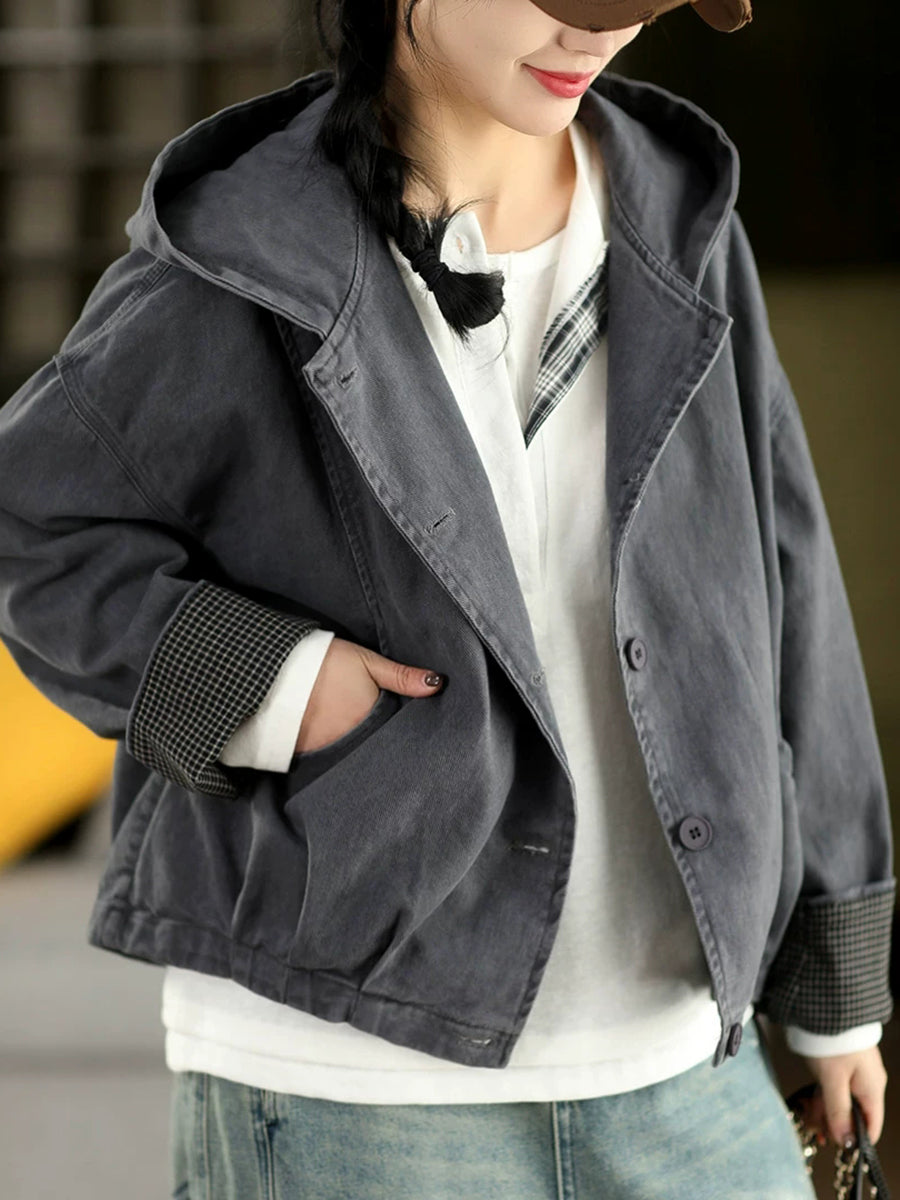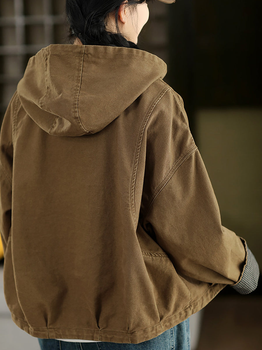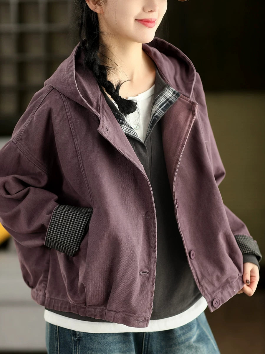 Kvinder Forårs Casual Ren Farve 100% Bomuld Hættetrøje