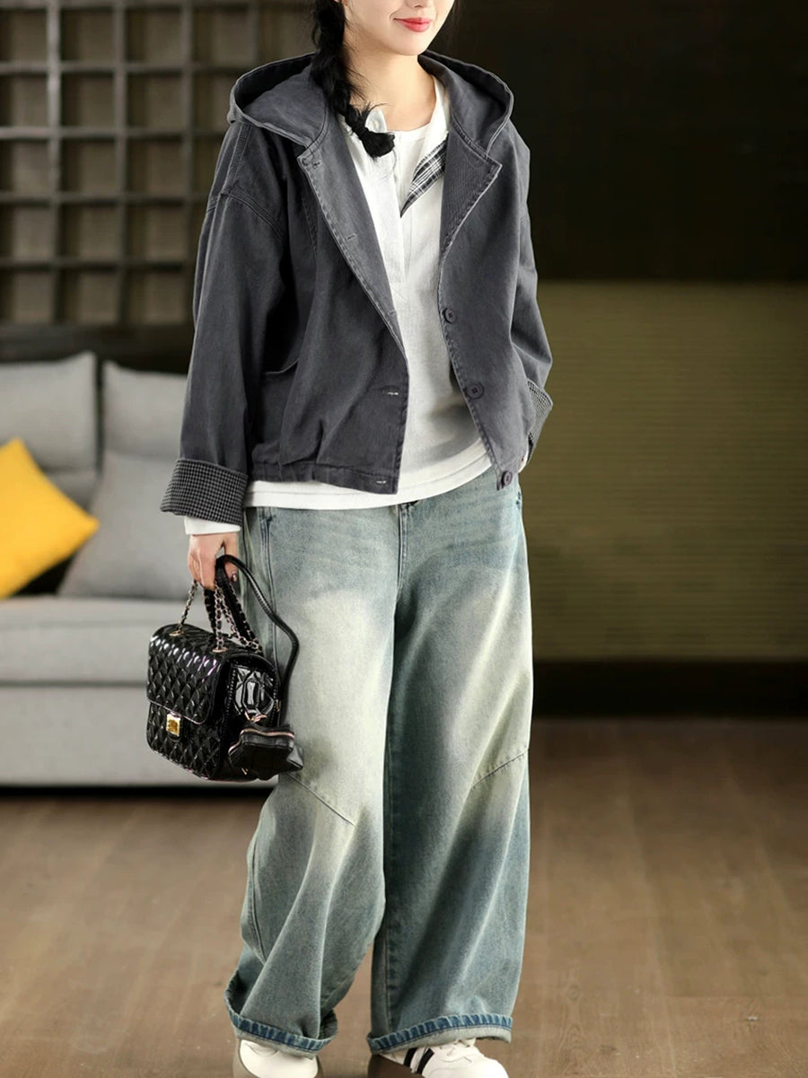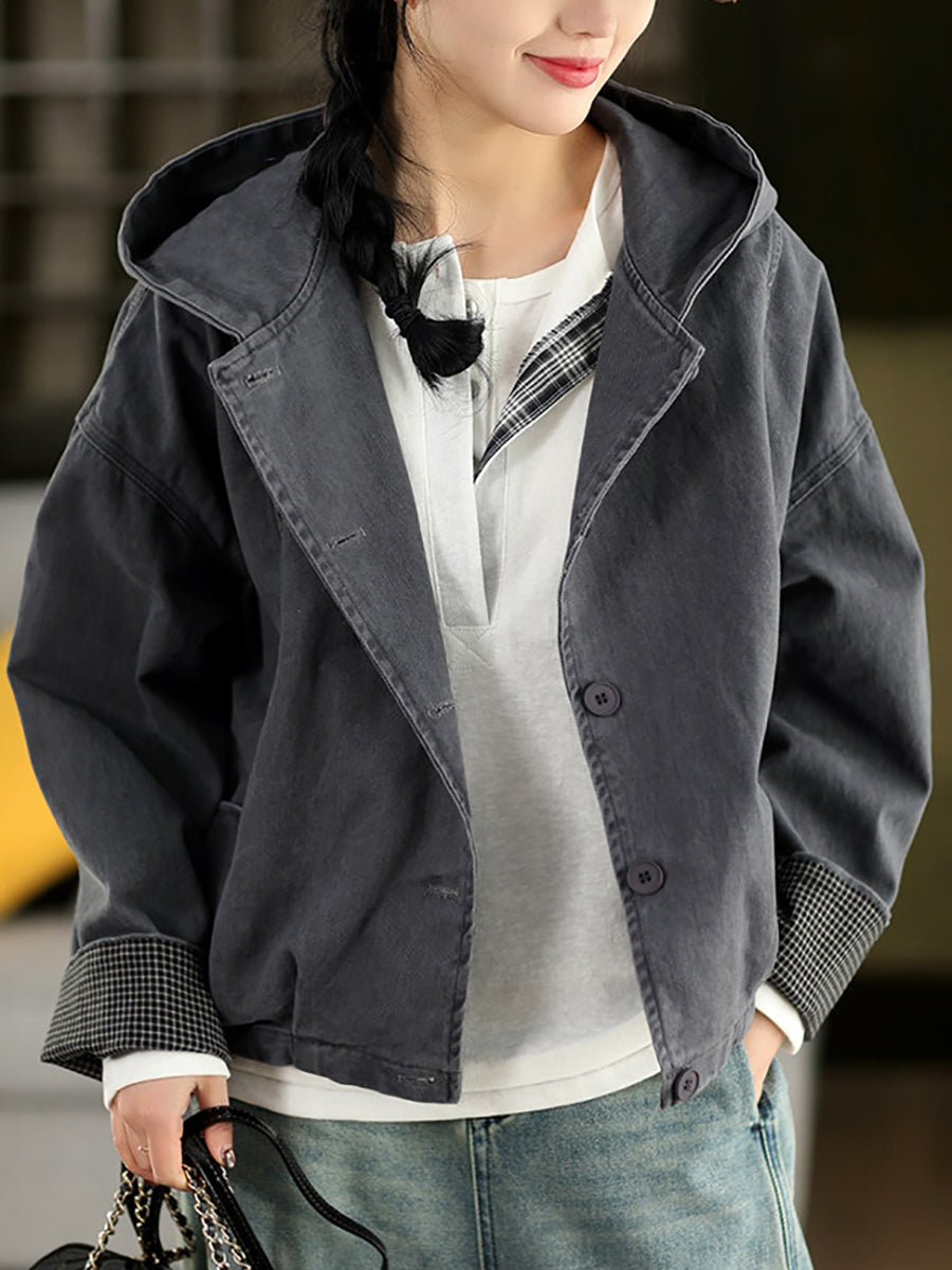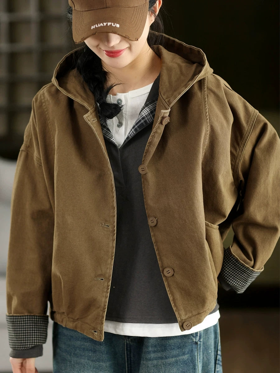 Kvinder Forårs Casual Ren Farve 100% Bomuld Hættetrøje